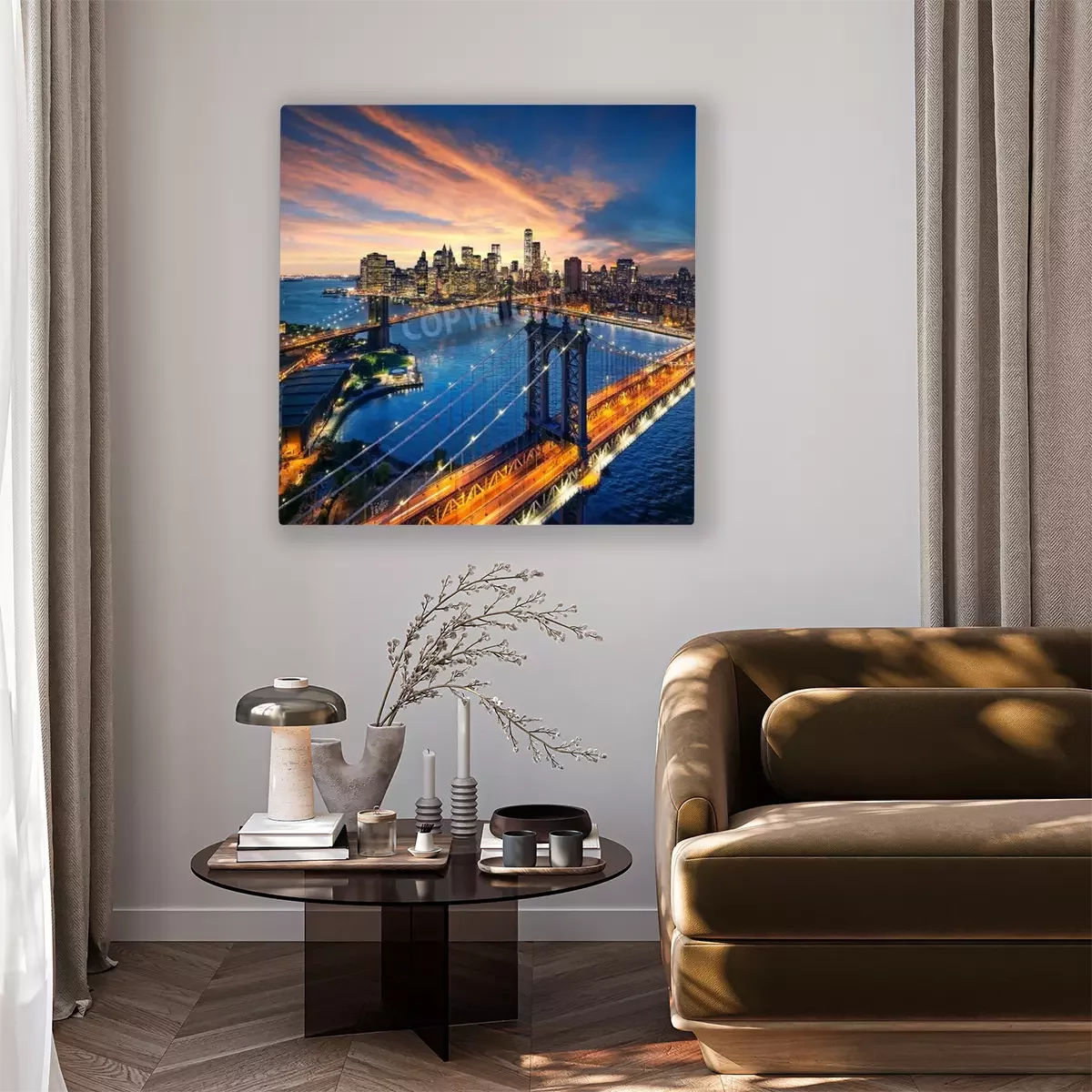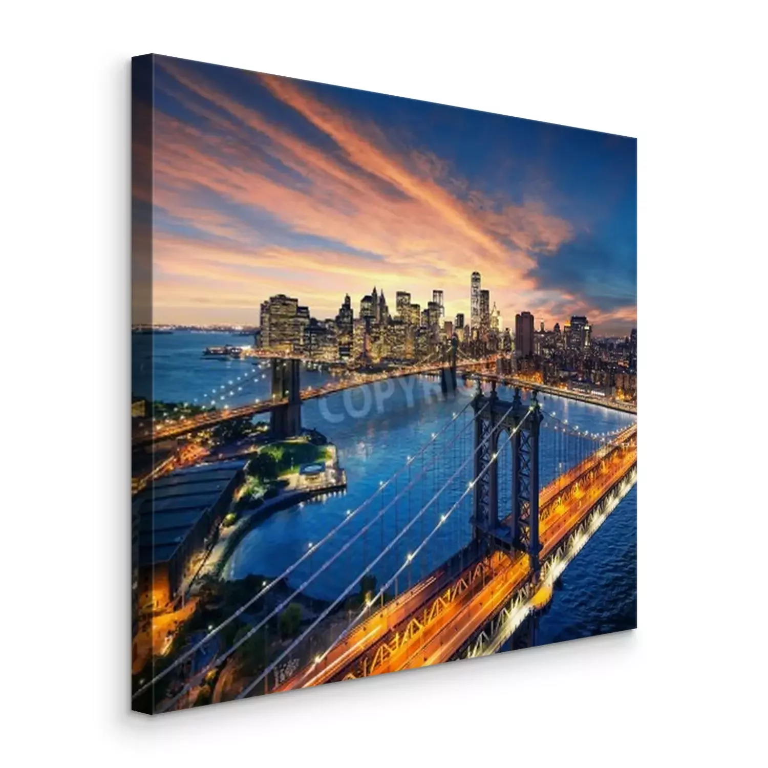 Tableau : New York City - Magnifique coucher de soleil sur Manhattan avec Manhattan et Brooklyn Bridge