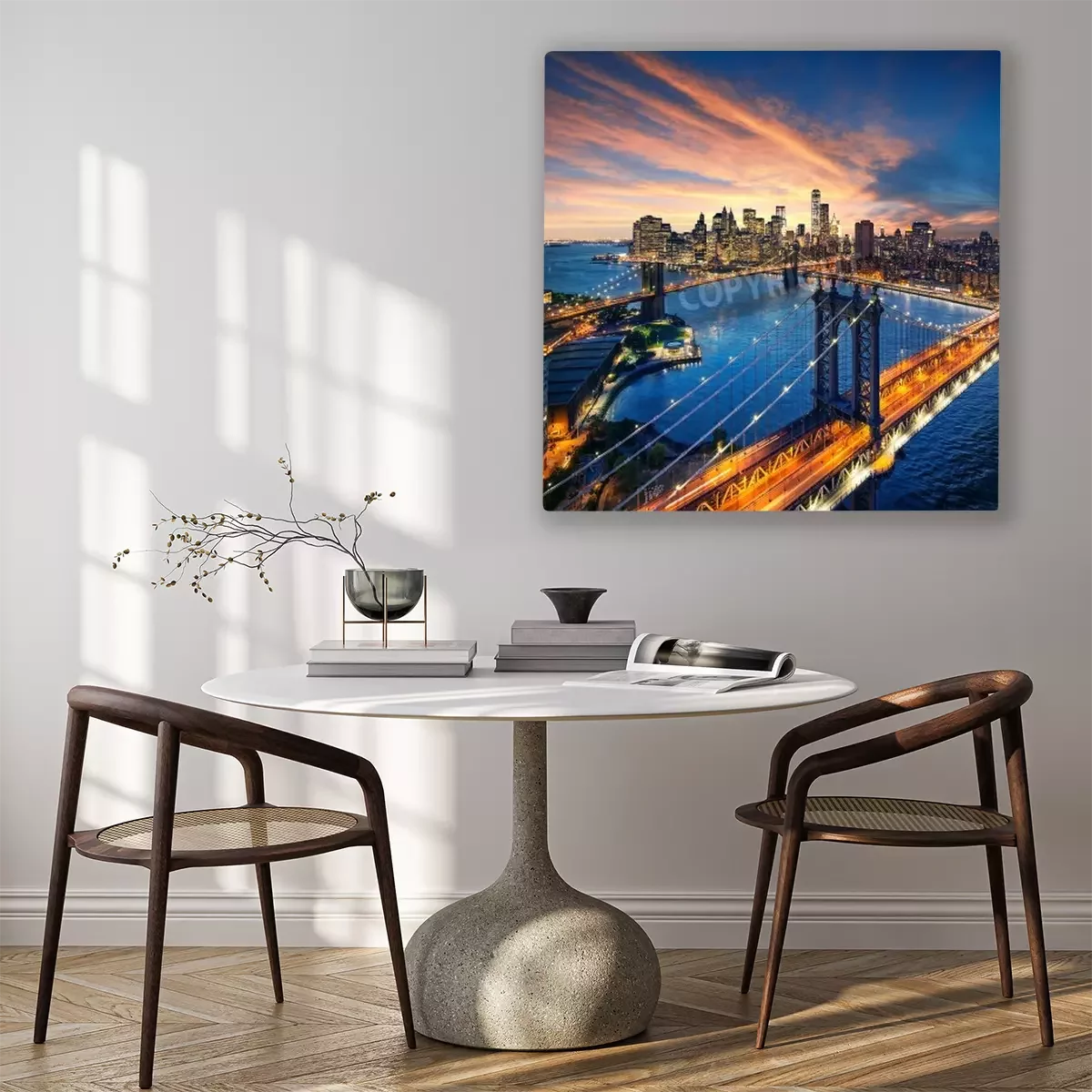 Tableau  New York City - Magnifique coucher de soleil sur Manhattan avec Manhattan et Brooklyn Bridge