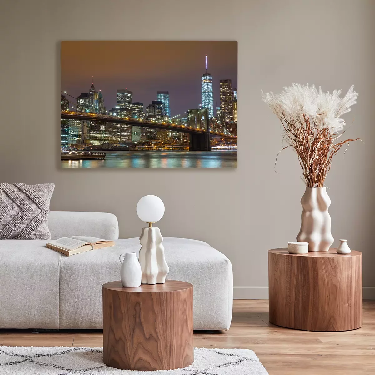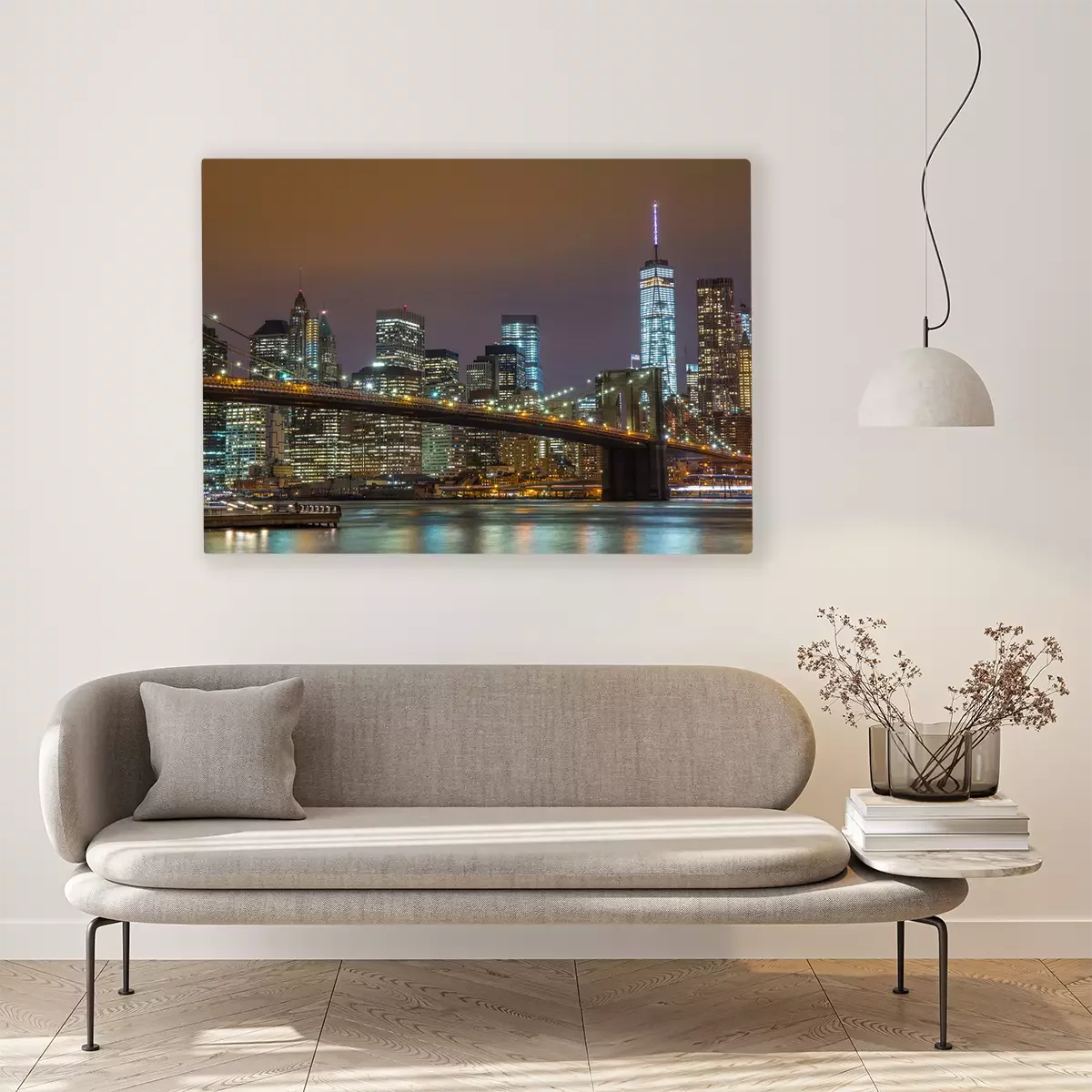 Tableau  New York City Manhattan Pont de Brooklyn la nuit horizon