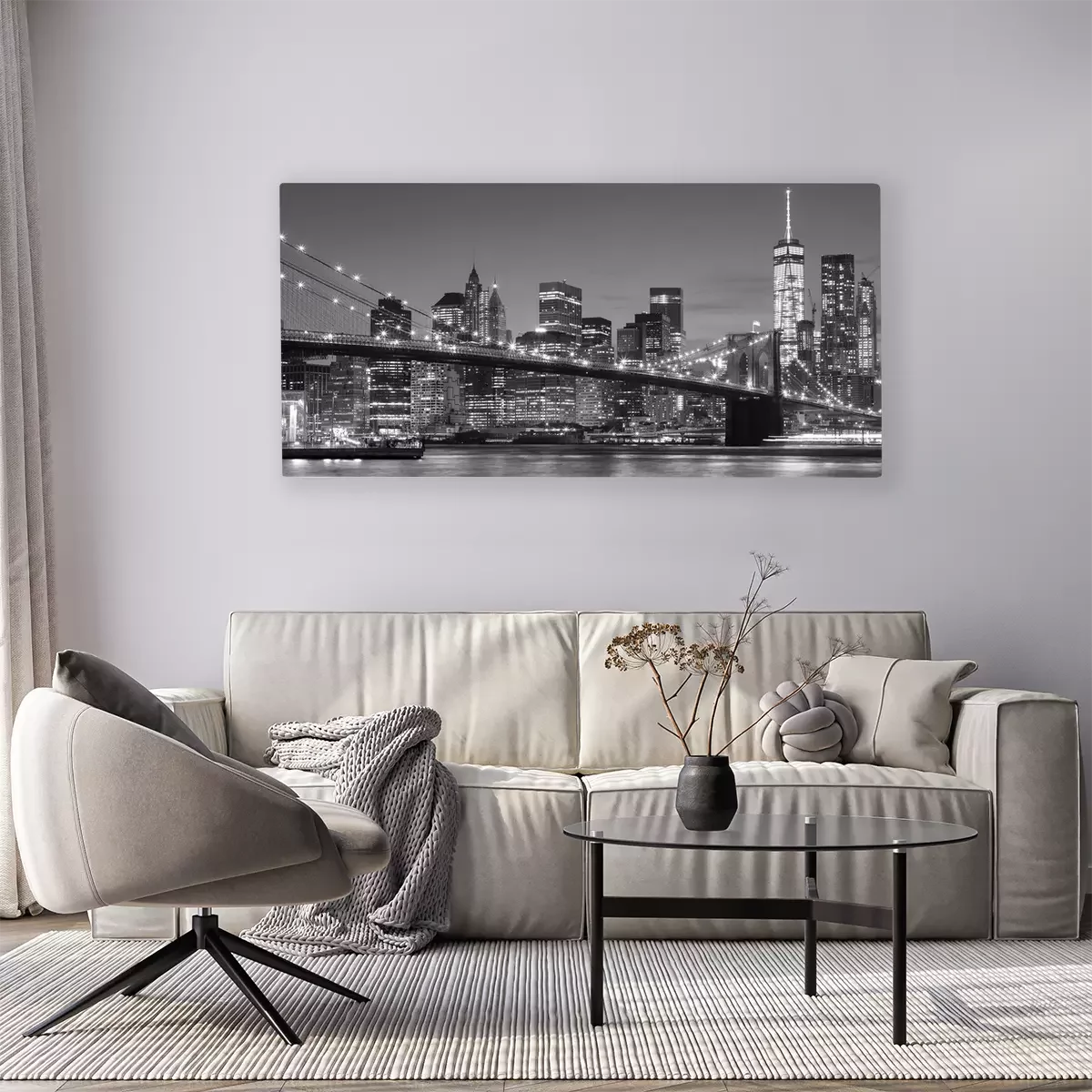 Tableau  Noir, blanc, Manhattan, waterfront, nuit, NYC