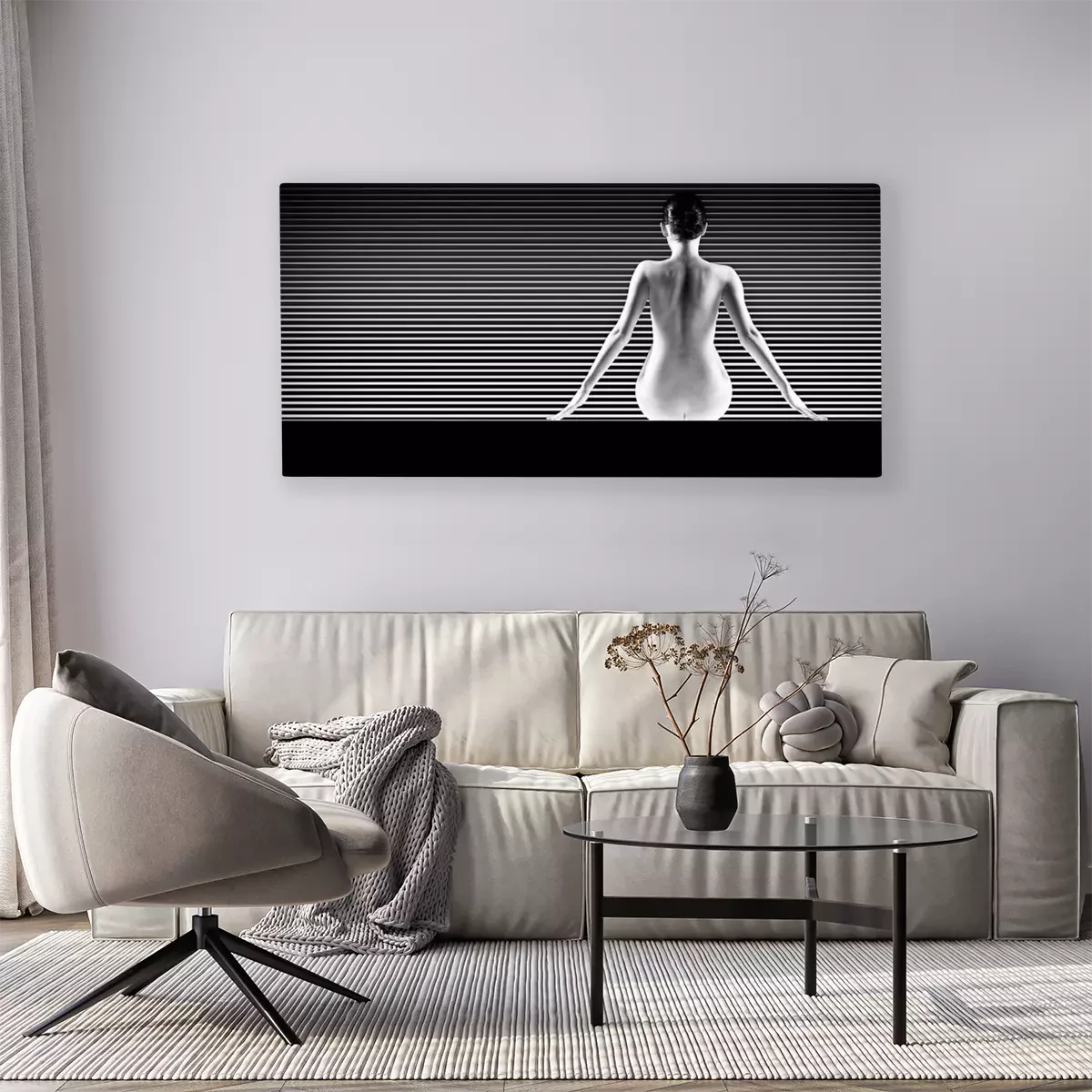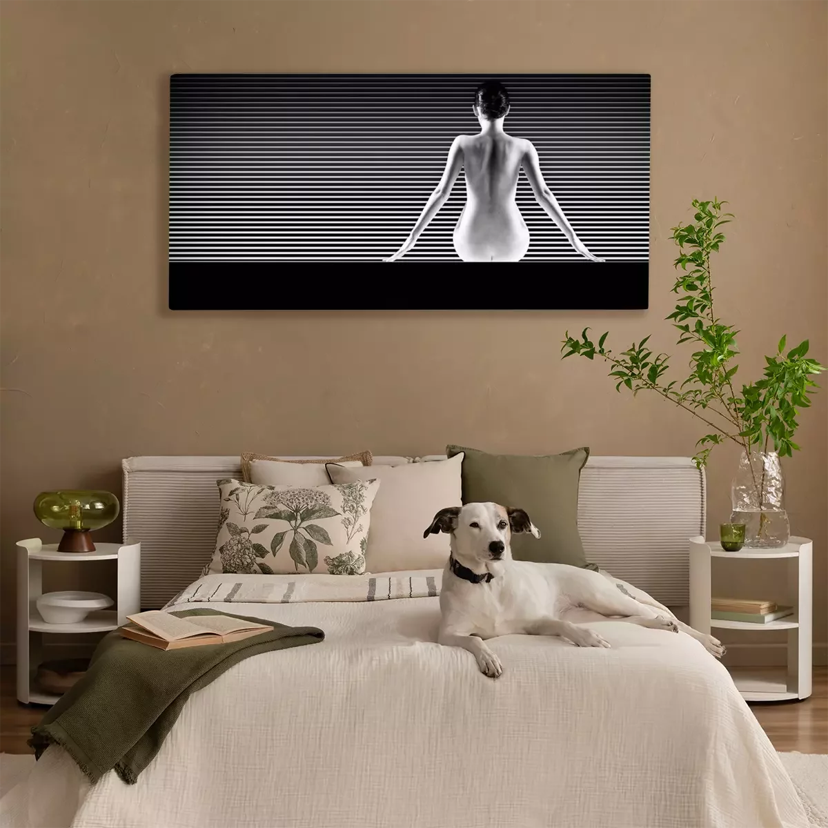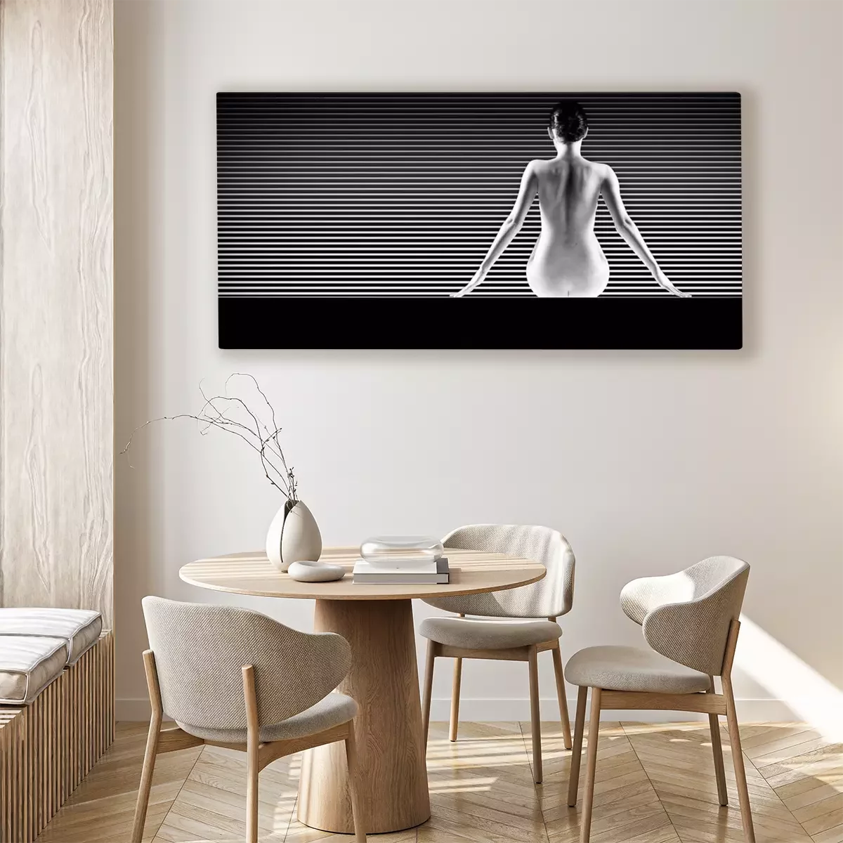 Tableau : noir et blanc nu artistique, un tir sur silhouette dos rayé