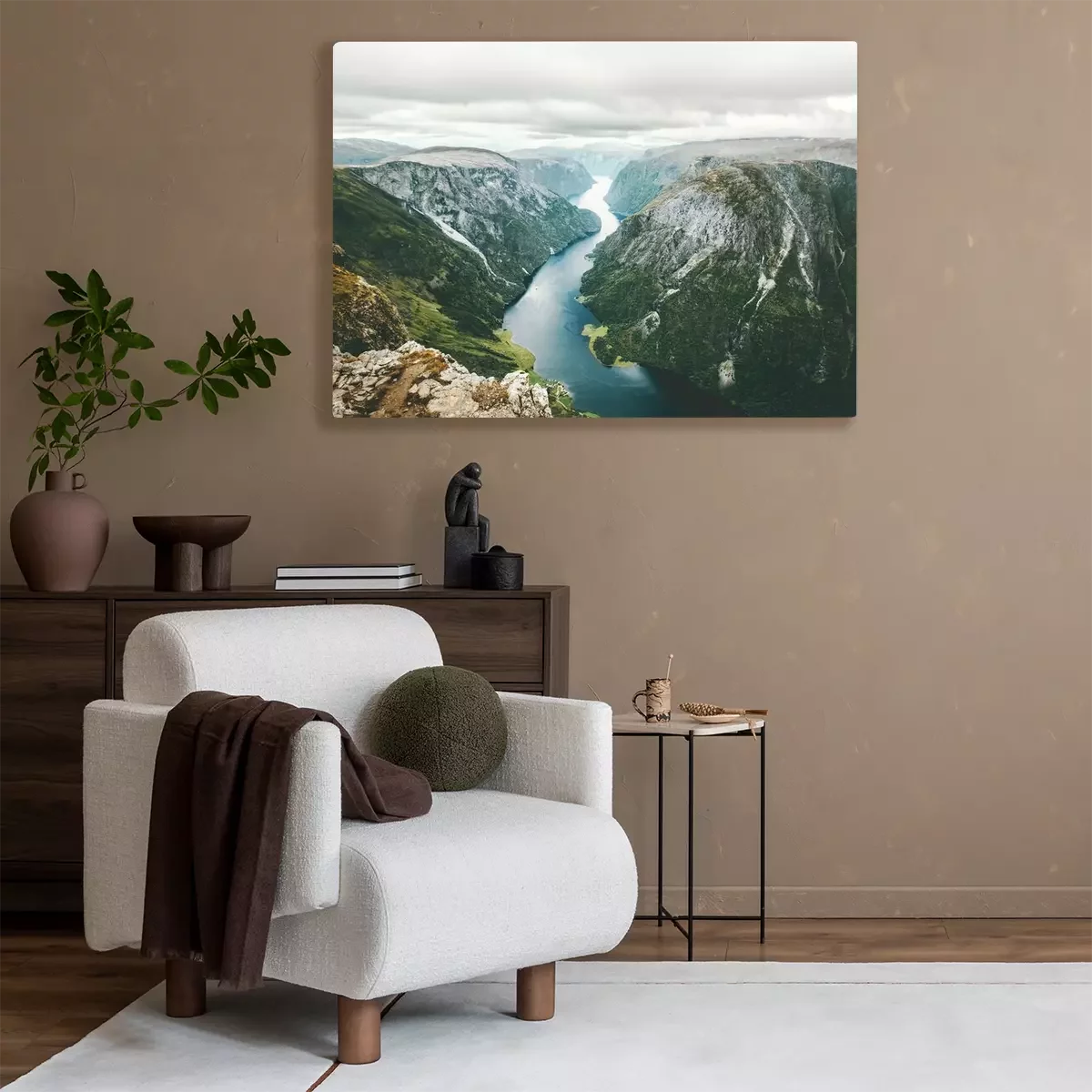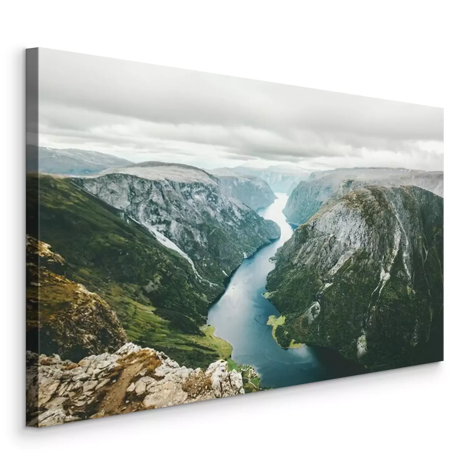 Tableau  Norvège paysage fjord et montagnes vue aérienne Naeroyfjord beaux paysages sites naturels scandinaves