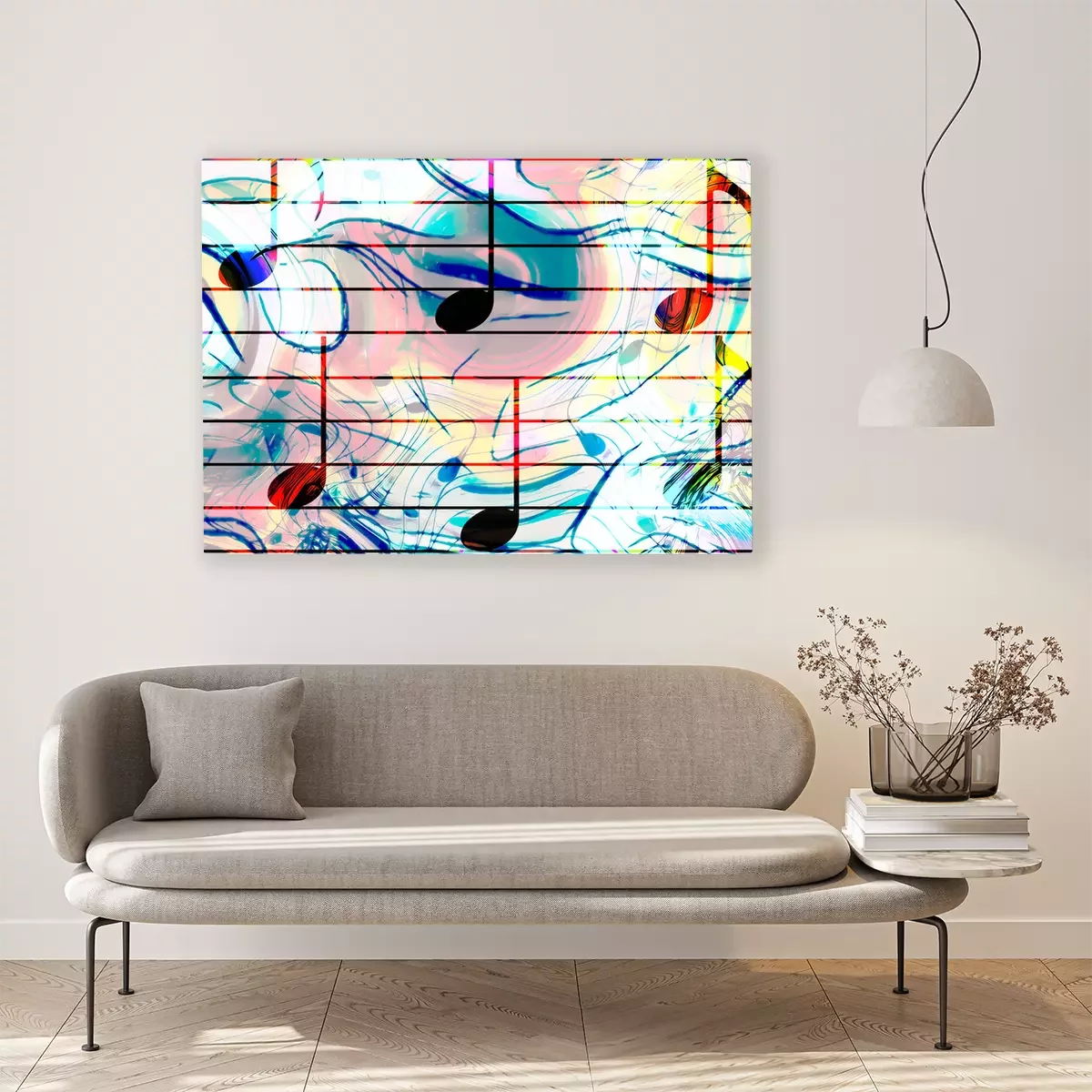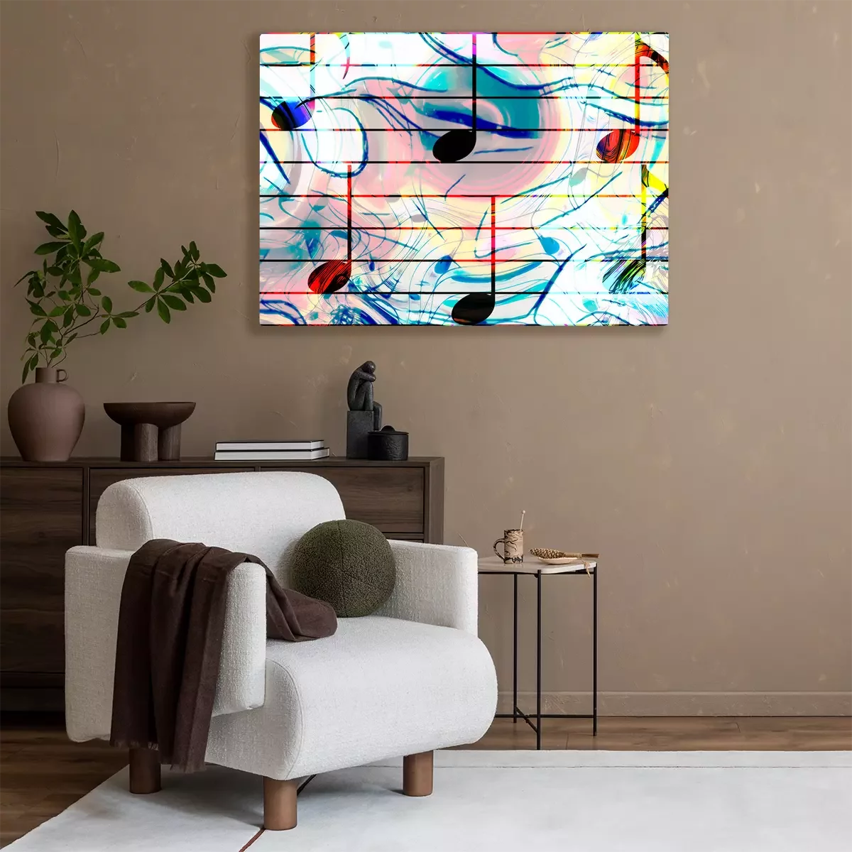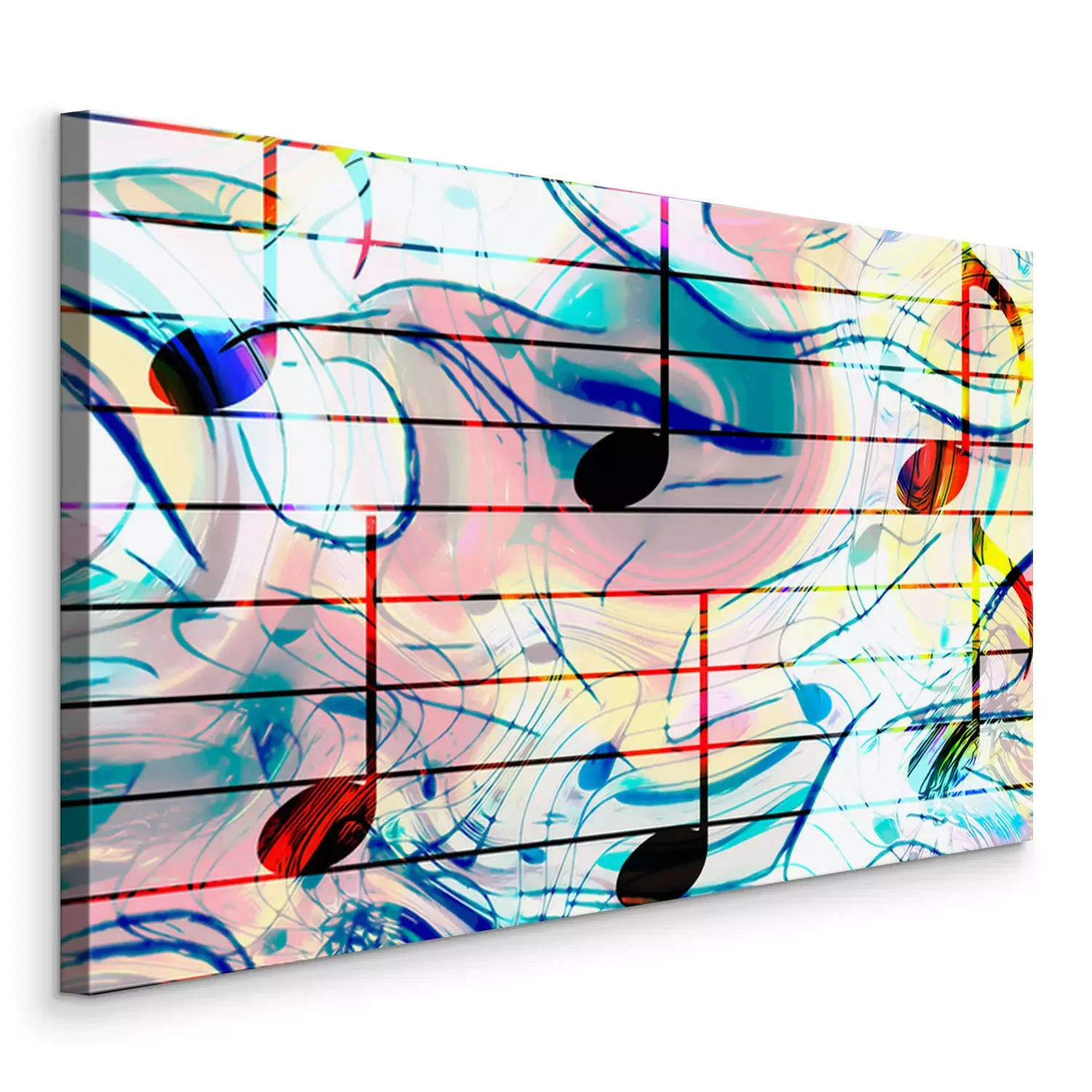 Tableau : Notes de musique de couleur et fond de couleur. Concept de musique.