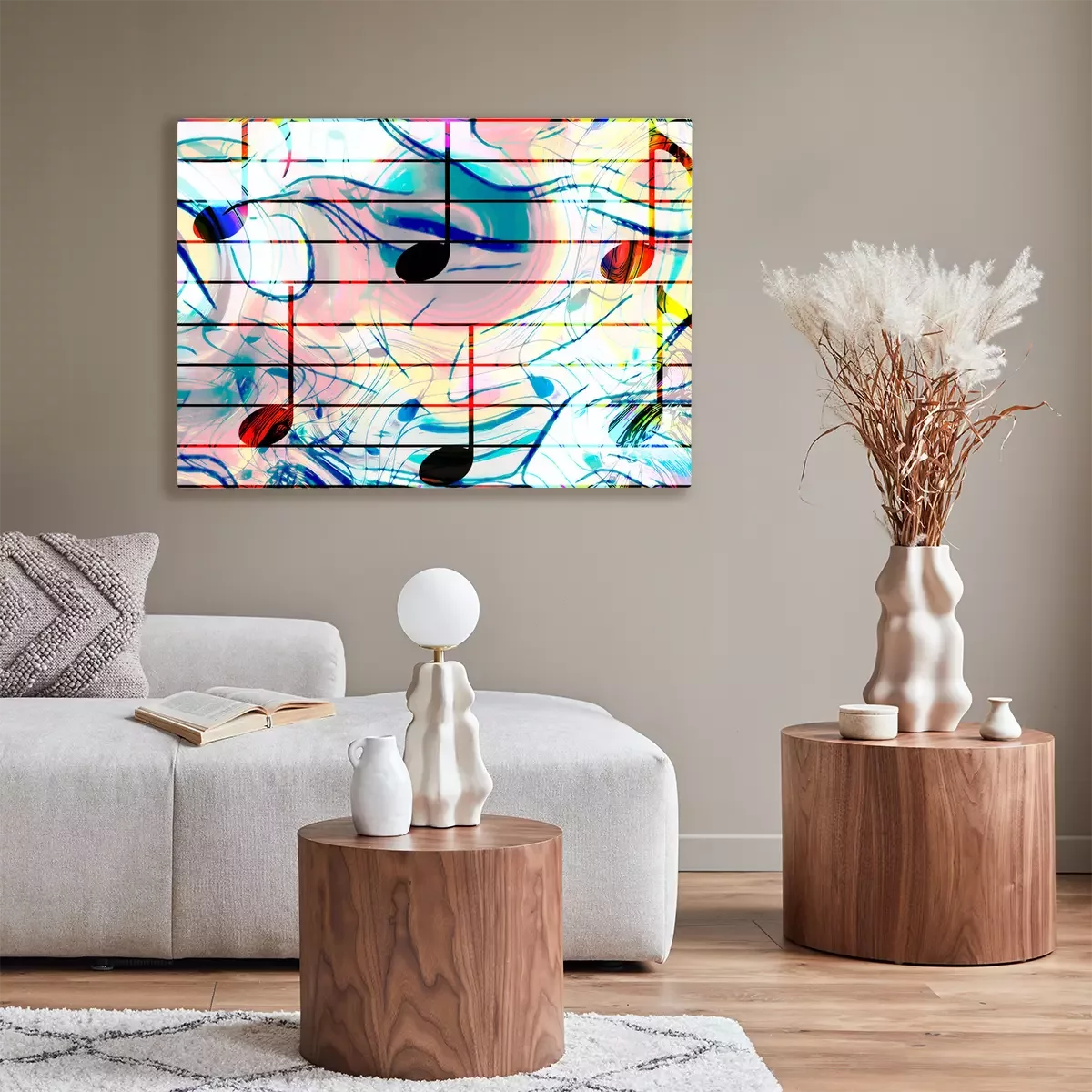 Tableau  Notes de musique de couleur et fond de couleur. Concept de musique.