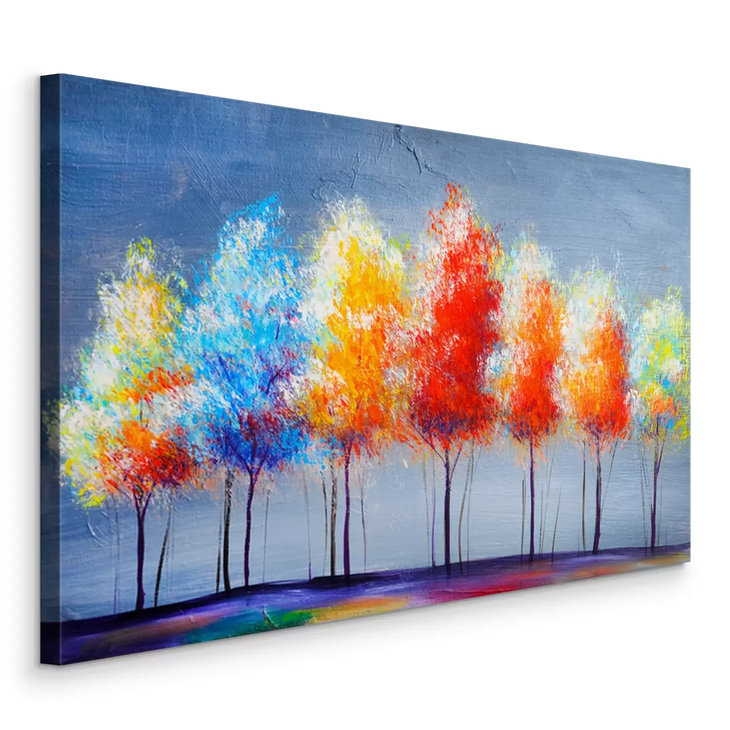 Tableau : Oil painting landscape, abstract colorful gold trees