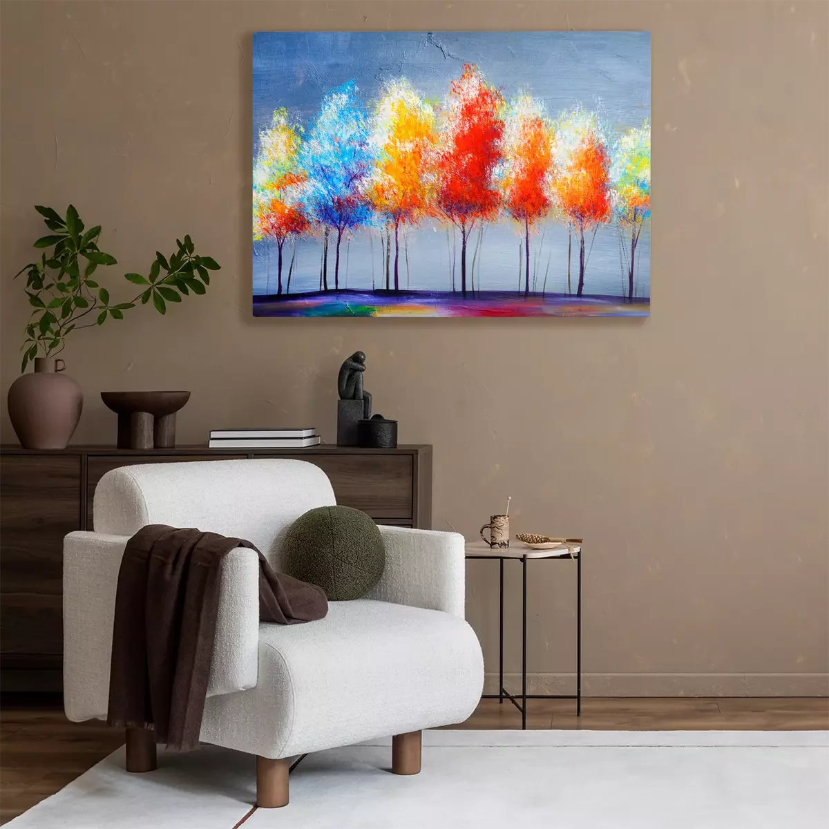 Tableau  Oil painting landscape, abstract colorful gold trees