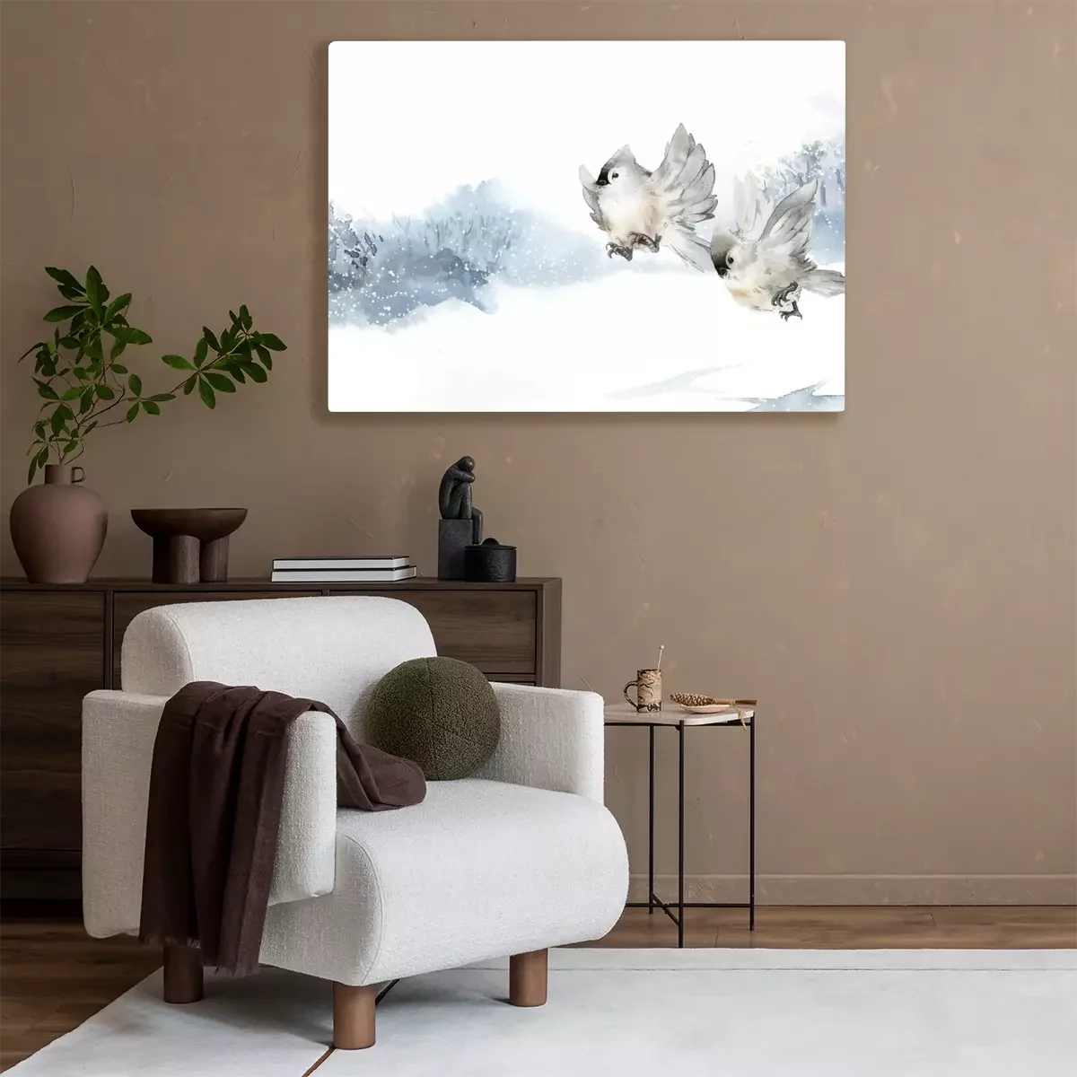 Tableau : Oiseau d'hiver à l'aquarelle