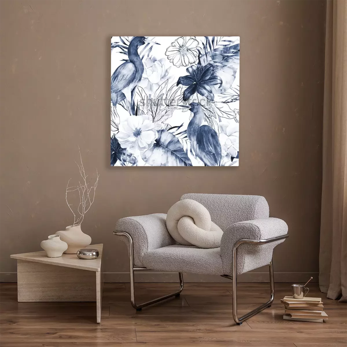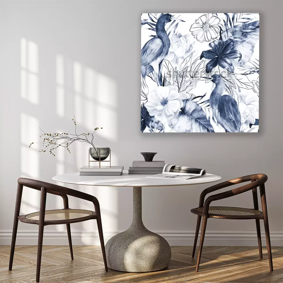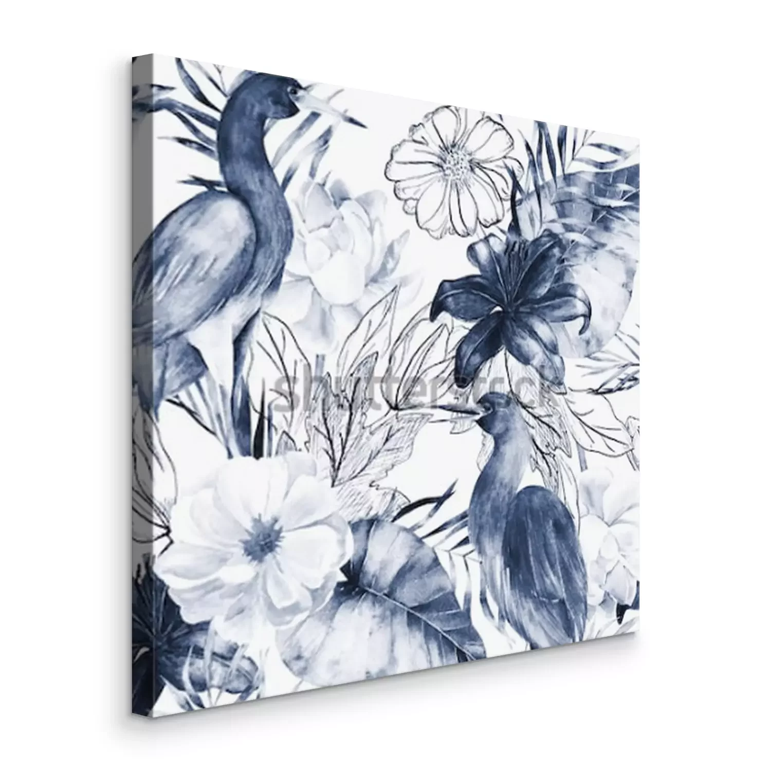 Tableau  Oiseau grue et fleurs