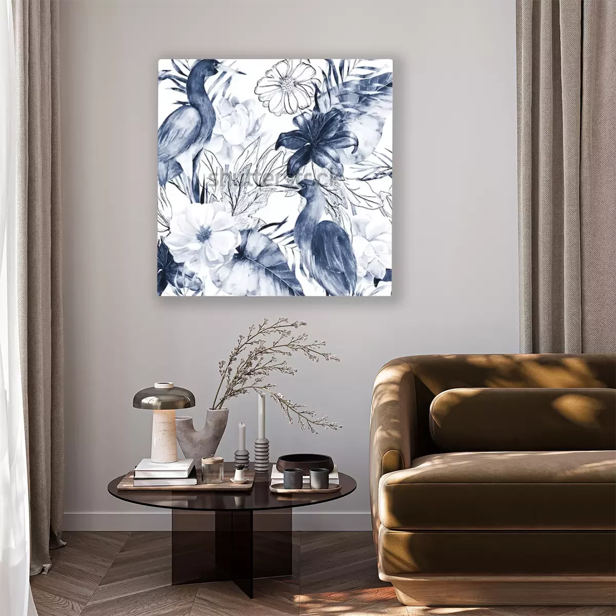 Tableau : Oiseau grue et fleurs