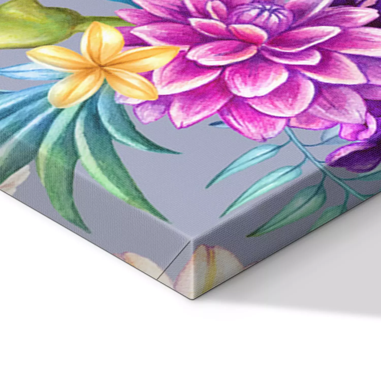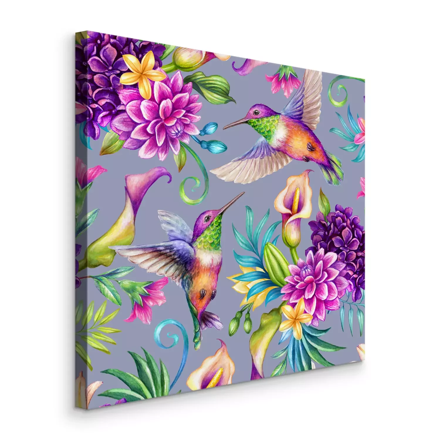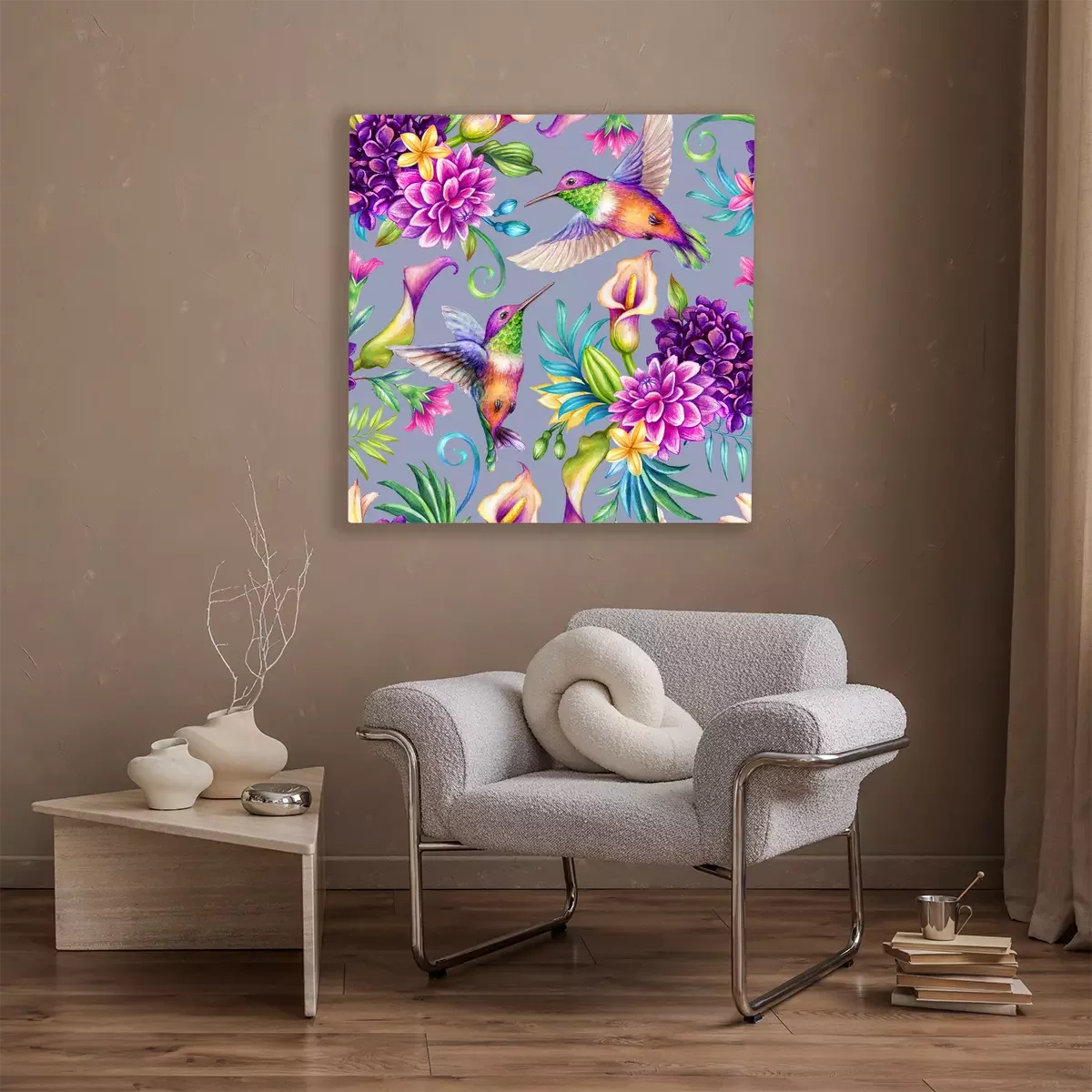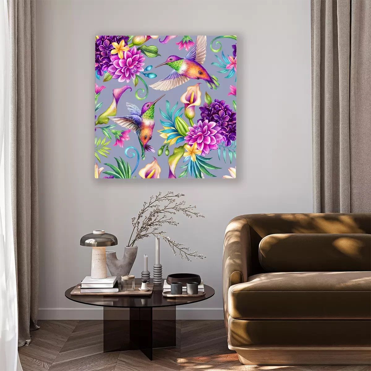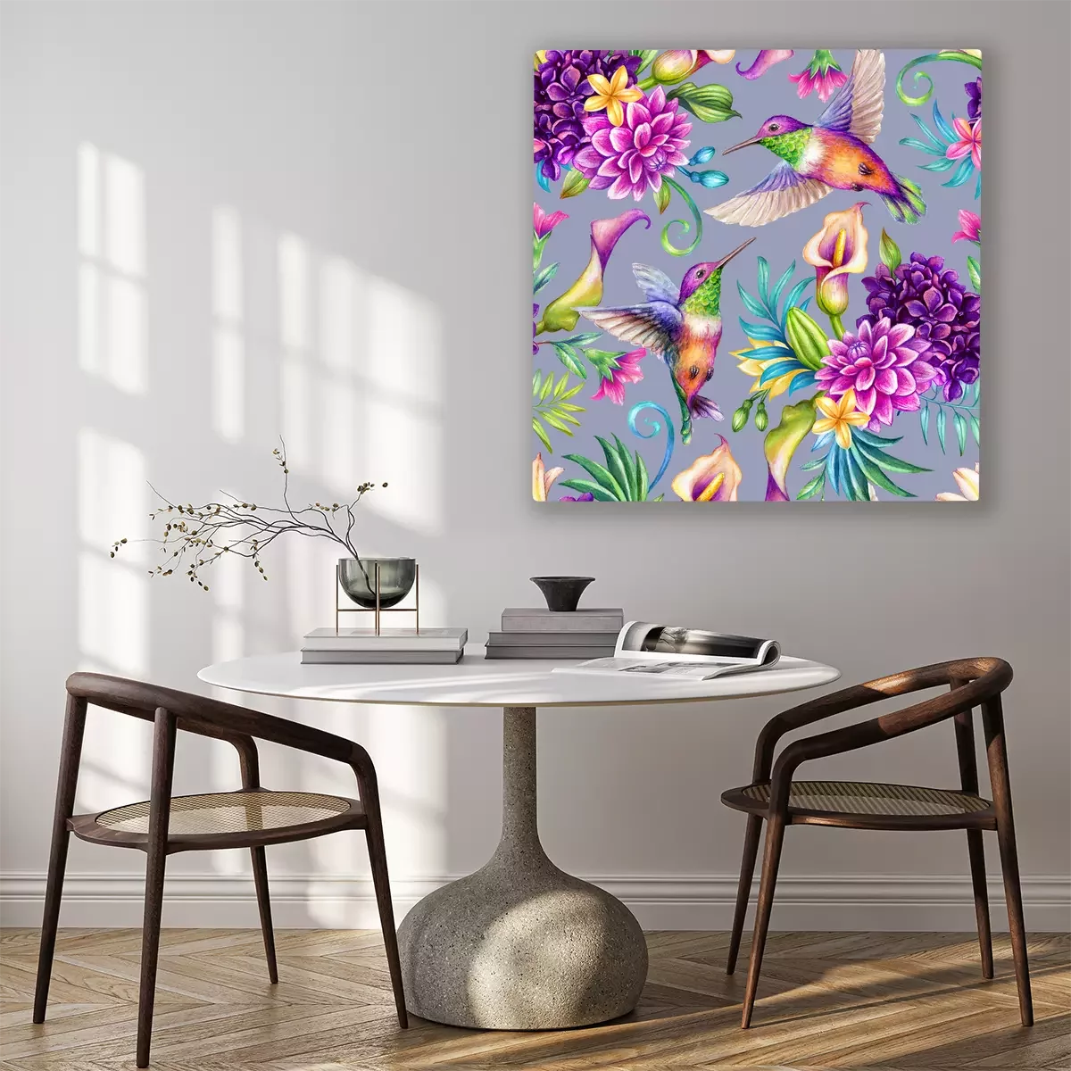 Tableau  Oiseaux arc-en-ciel et fleurs colorées