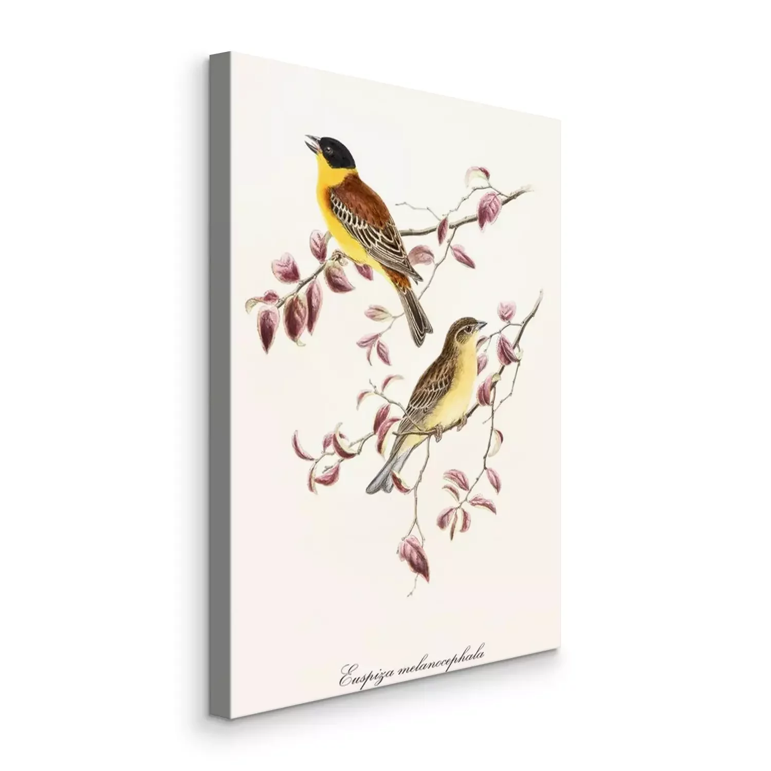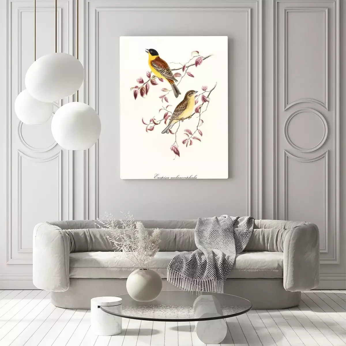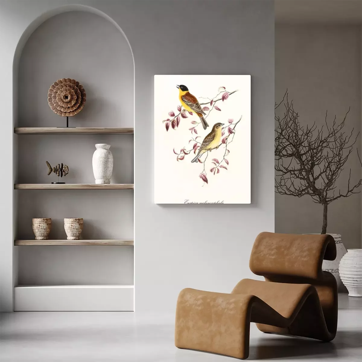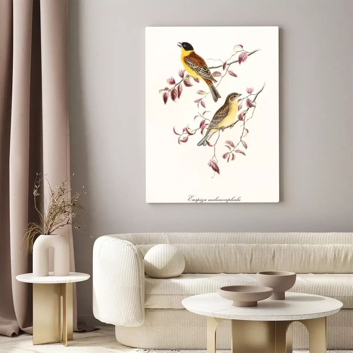 Dessin avec des oiseaux posés sur des branches couvertes de fleurs