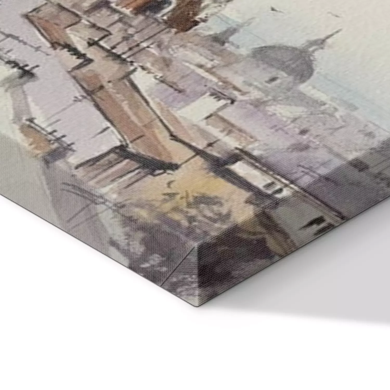 Tableau : Old town, Kracow, Poland with Miariacki Church in background.Picture created with watercolors.