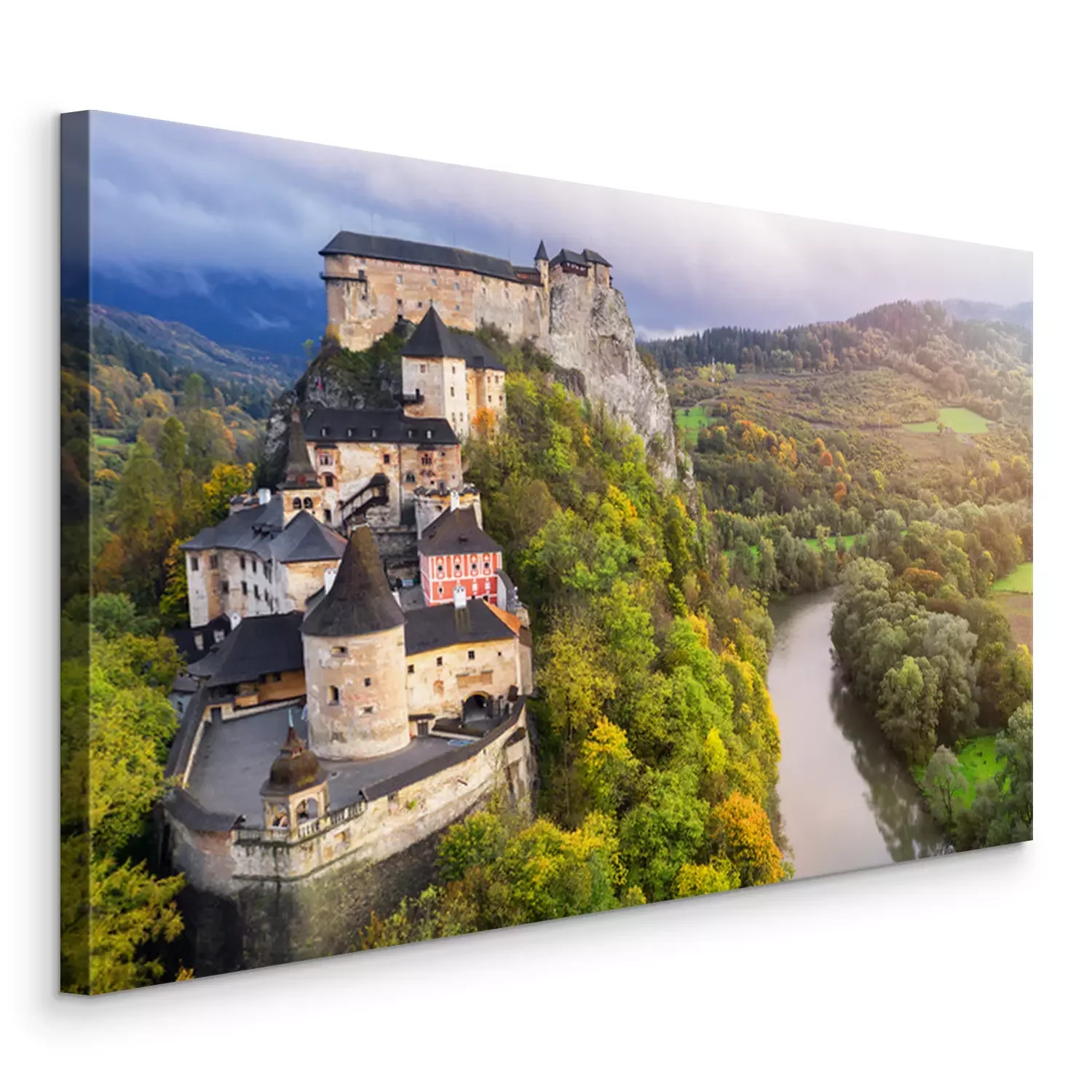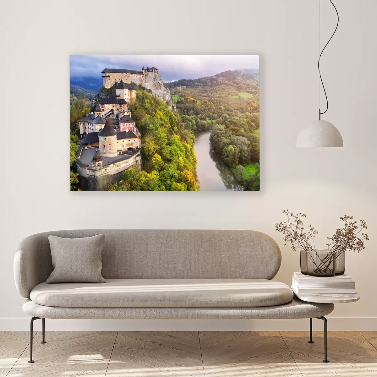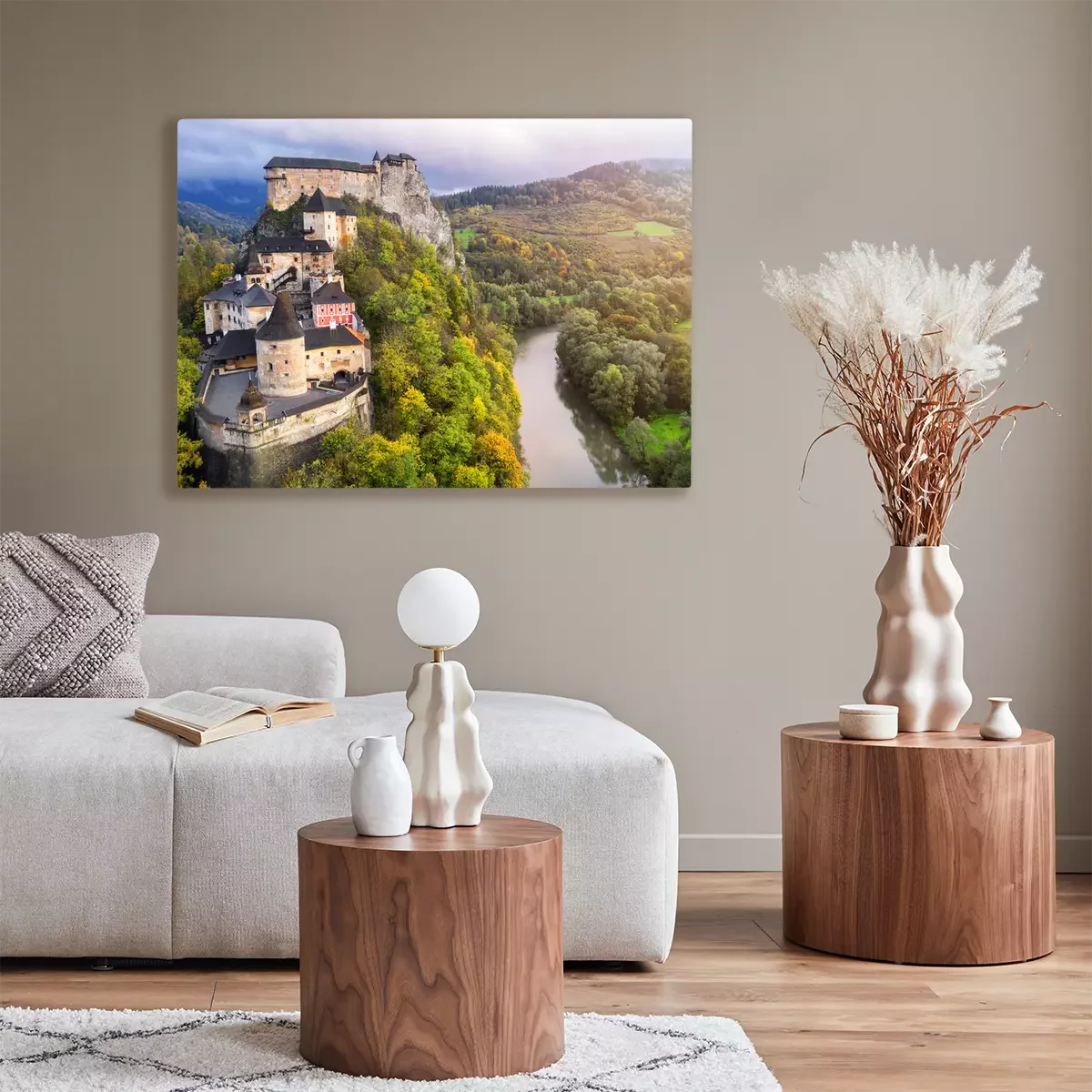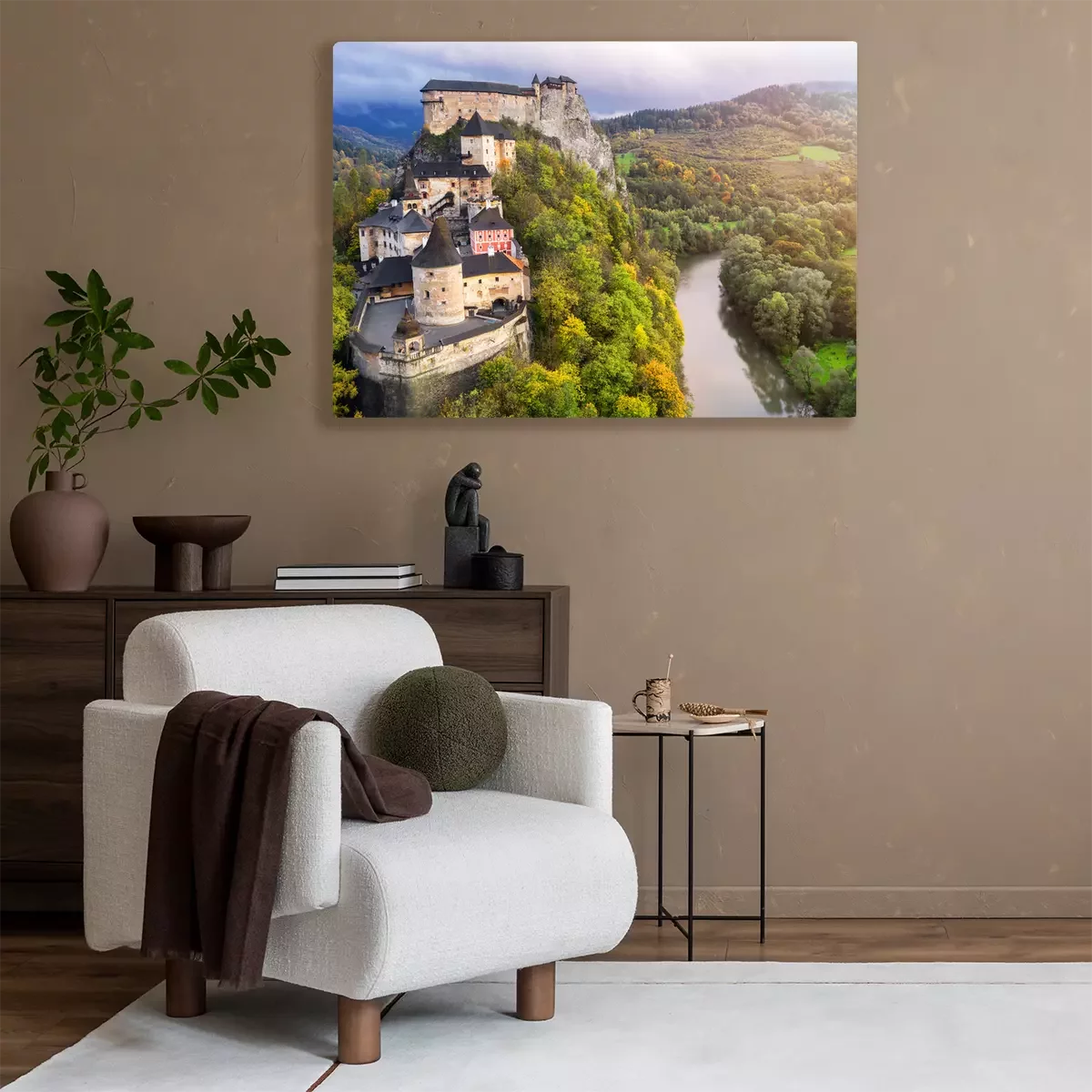 Tableau  Orava castle and Orava river, morning light, Slovakia, Europe