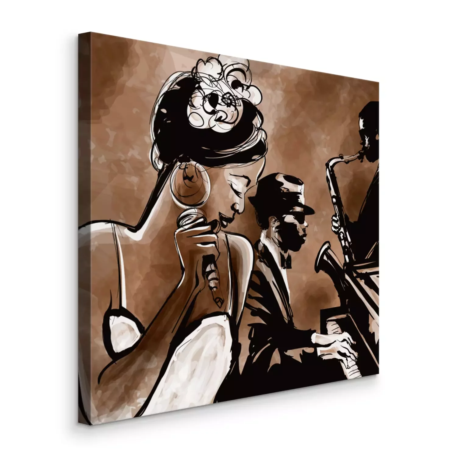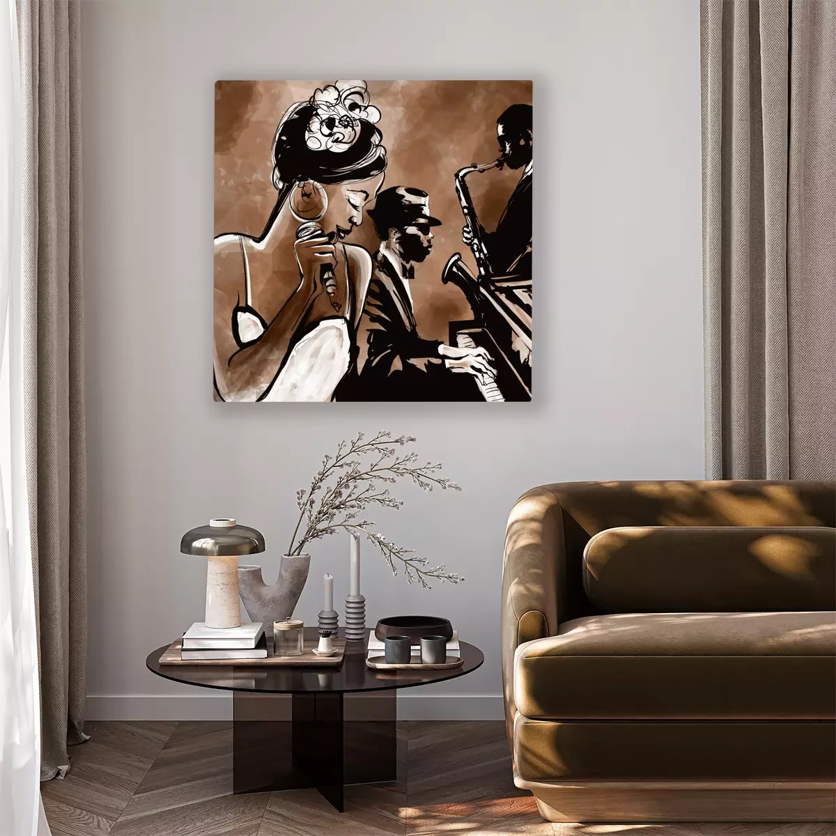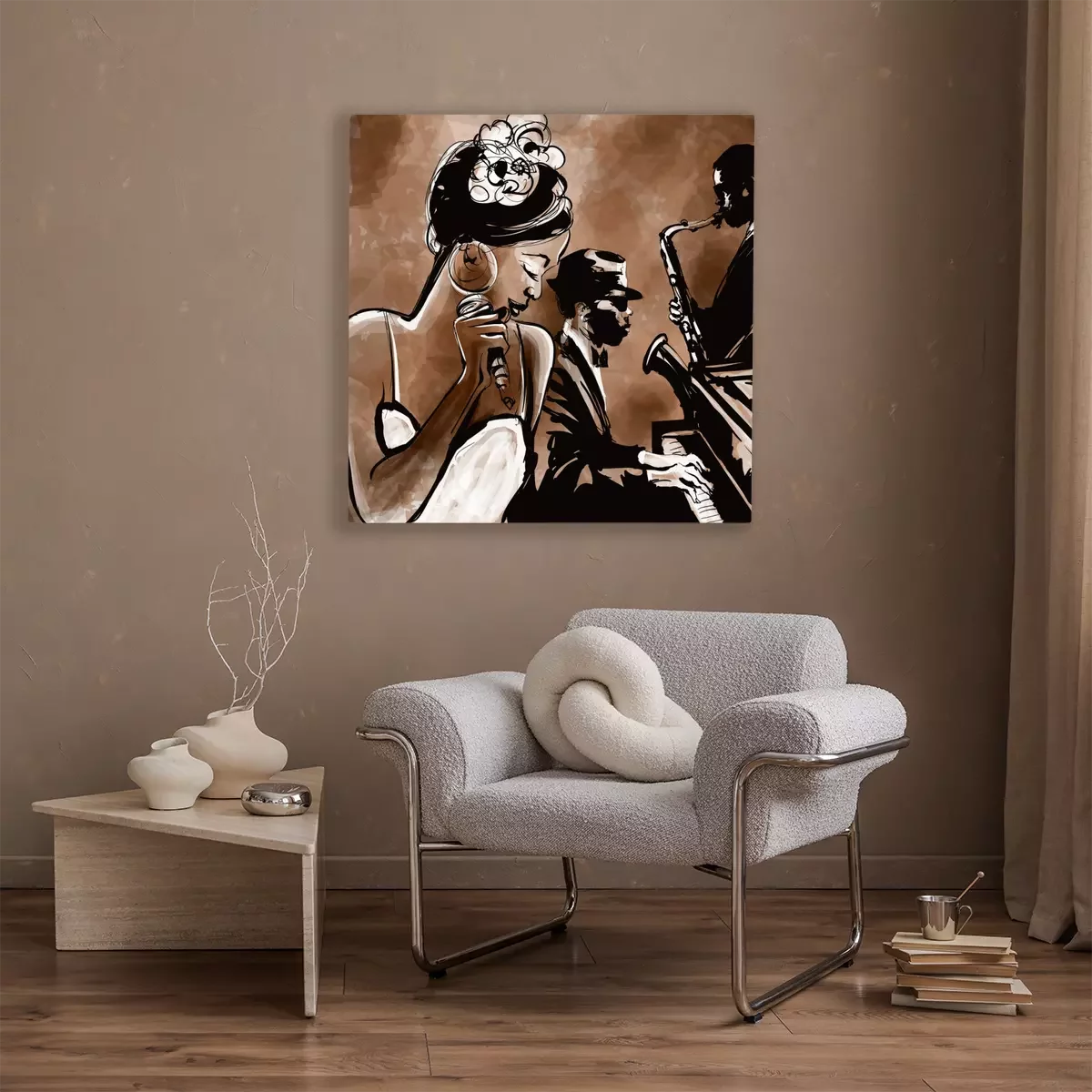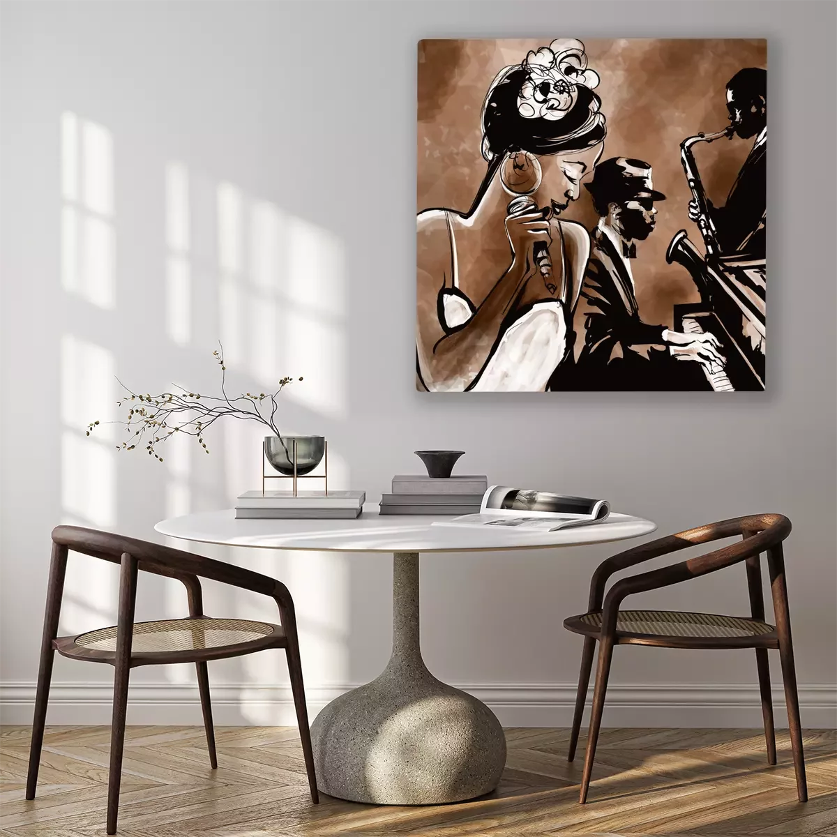 Tableau  Orchestre de jazz avec le chanteur, saxophone et piano - illustration
