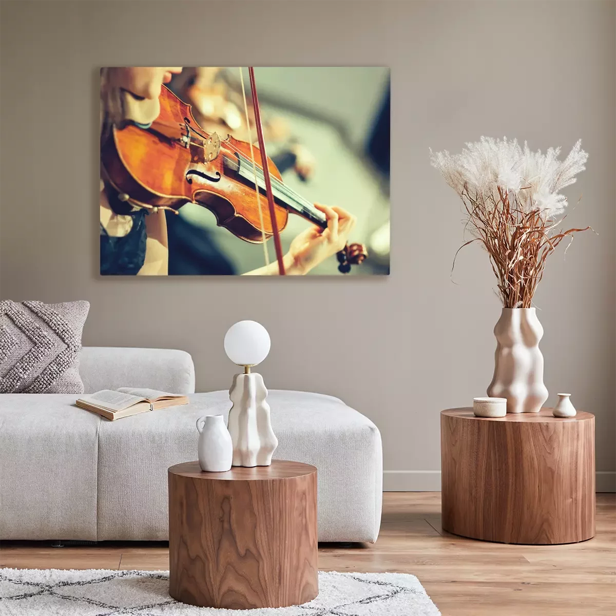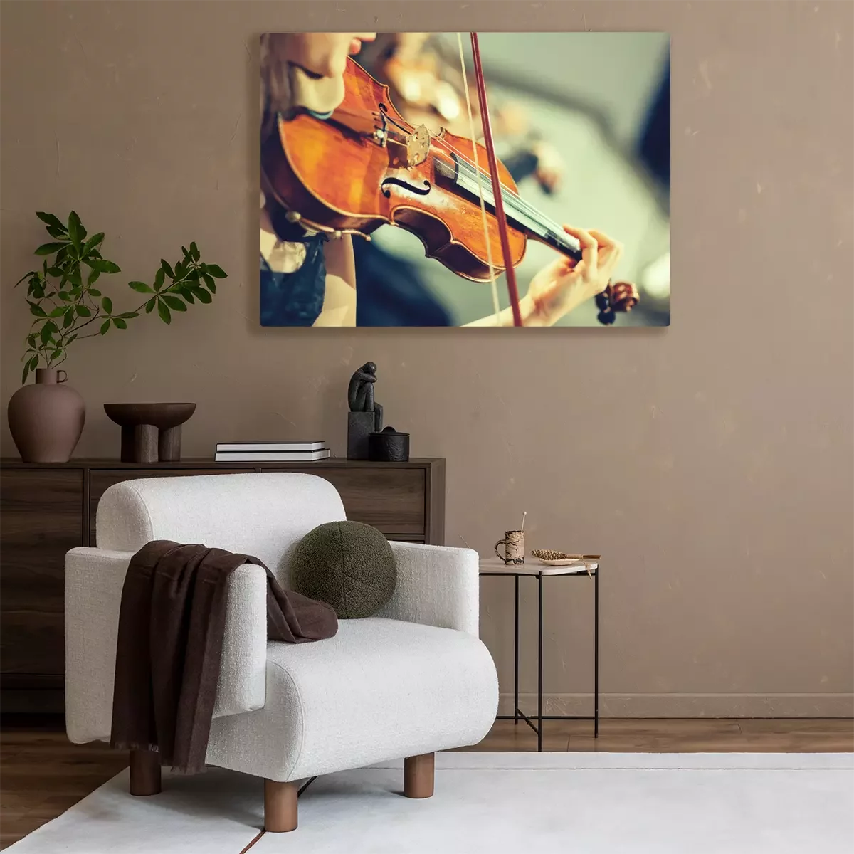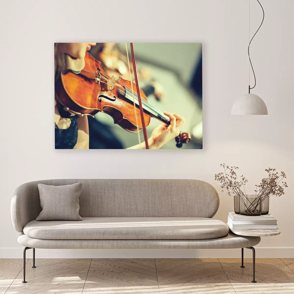 Tableau  Orchestre symphonique sur scène, mains jouant du violon