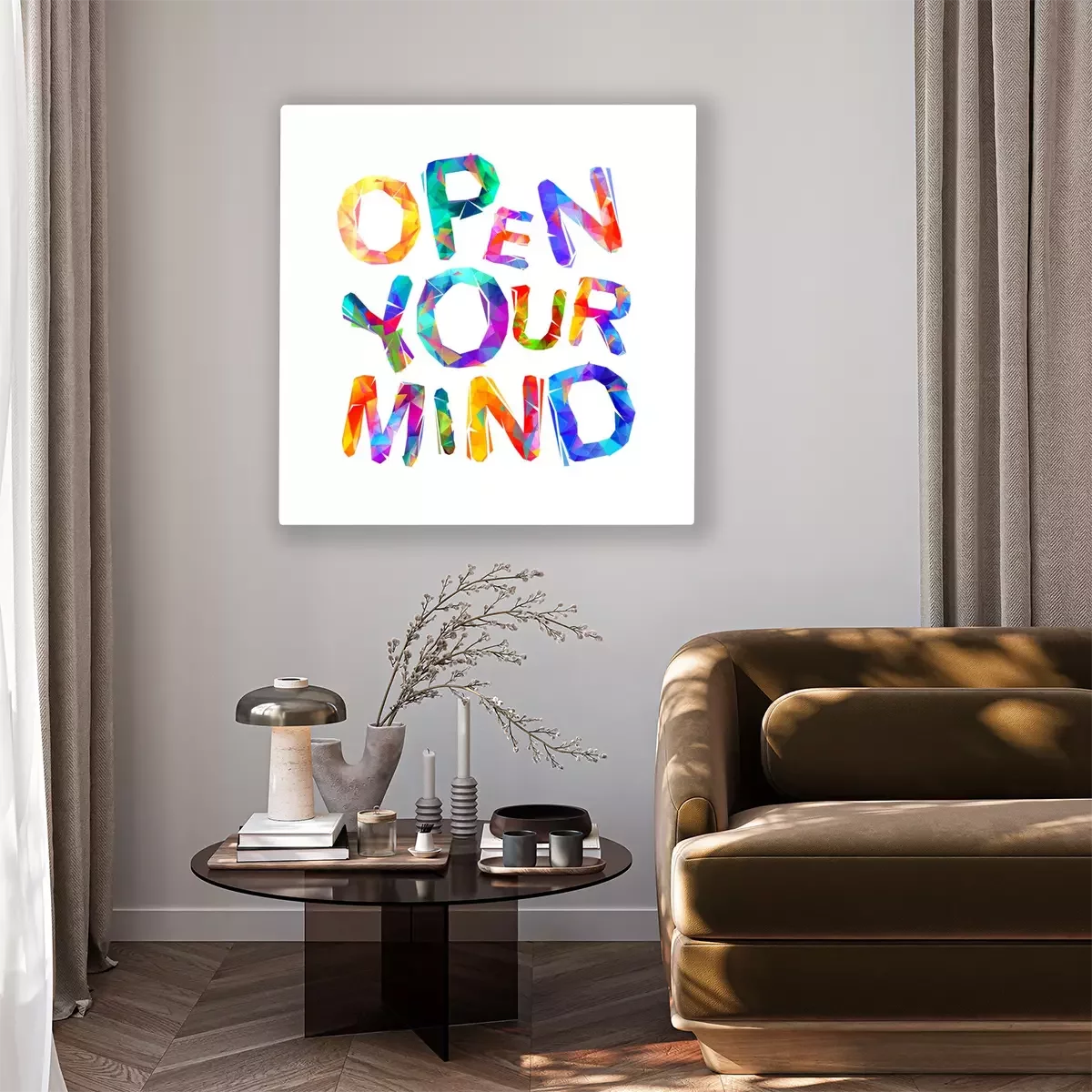 Tableau  Ouvrez votre esprit.Inscription de lettres triangulaires