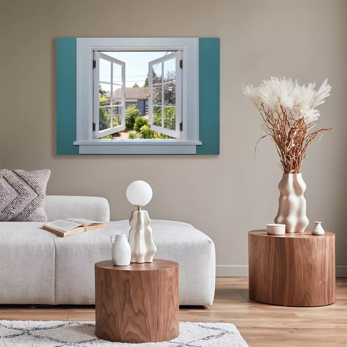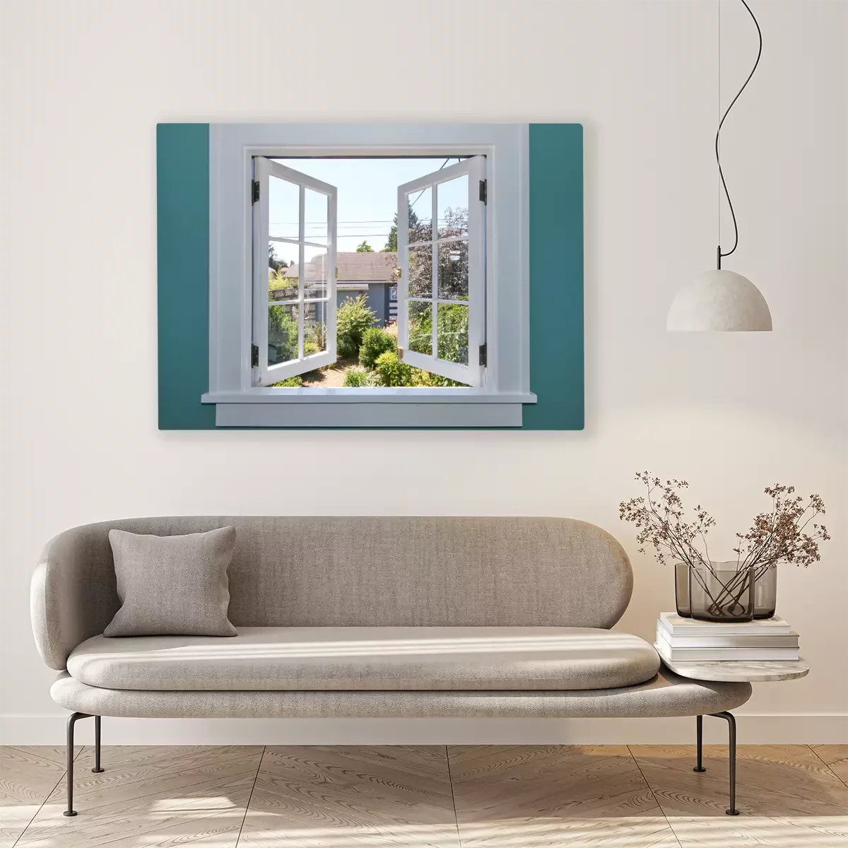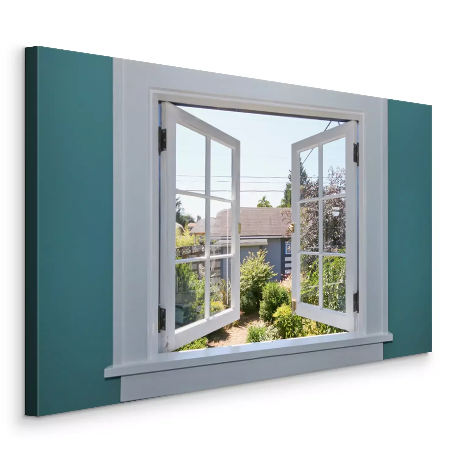 Tableau  Ouvrir la fenêtre à l'arrière-cour avec un petit hangar.