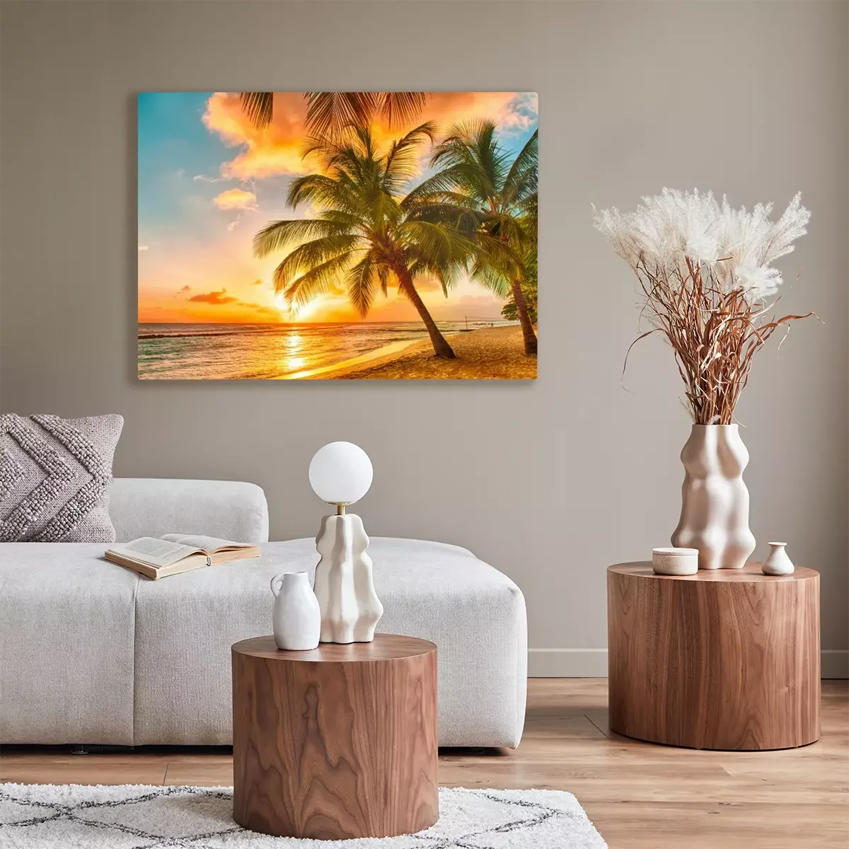 Tableau  Palmiers au coucher du soleil sur l'île de la Barbade paysage tropical