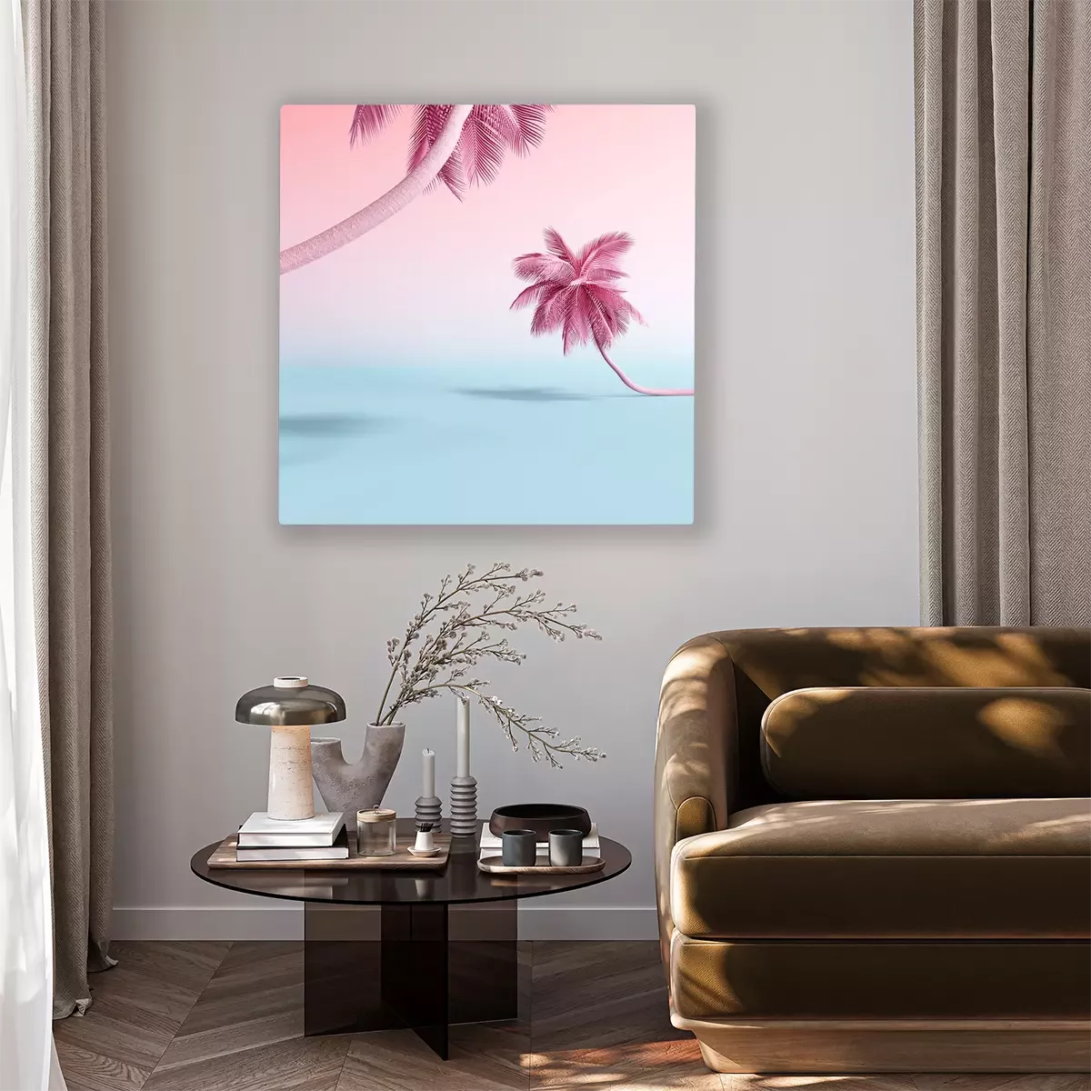 Tableau  Palmiers rose pastel