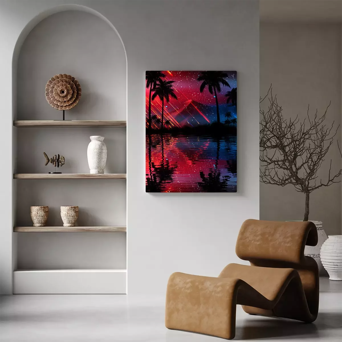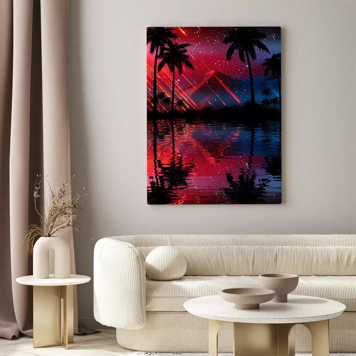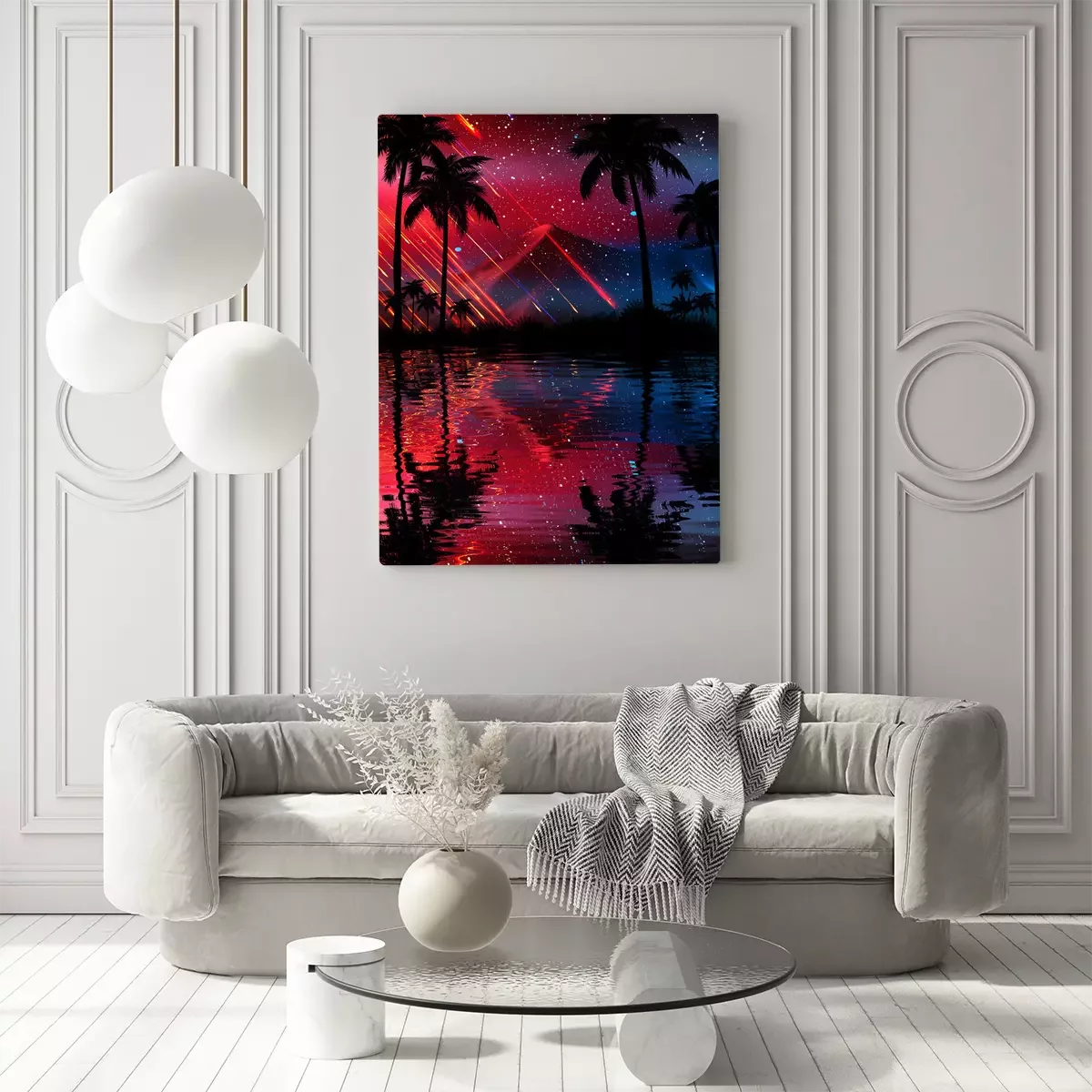 Tableau : Palmiers sur motif graphique