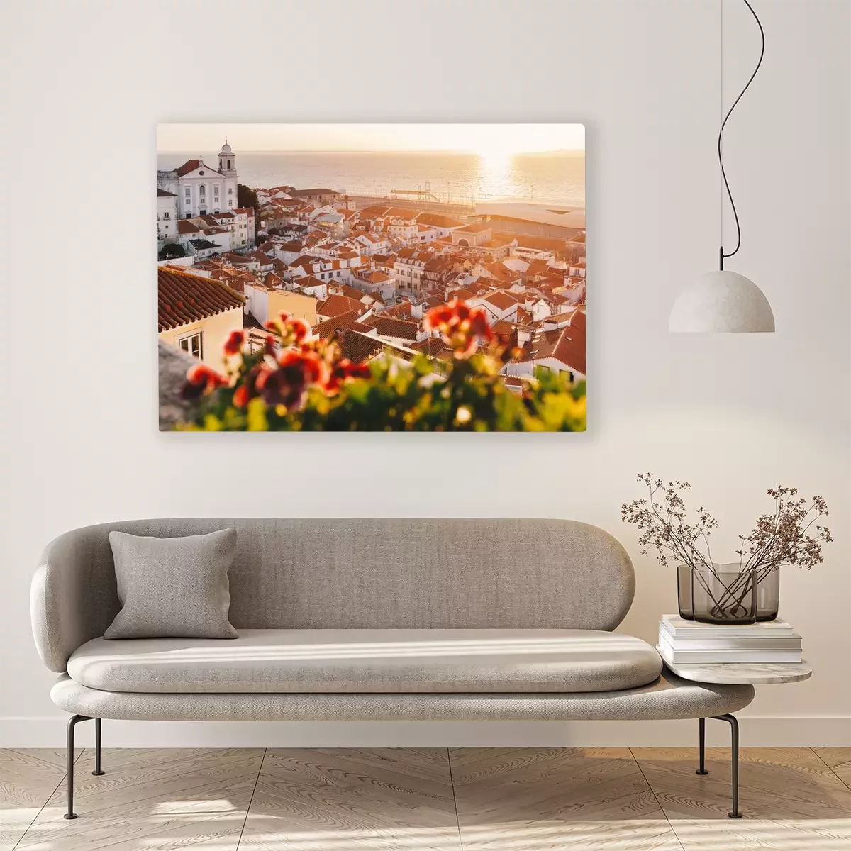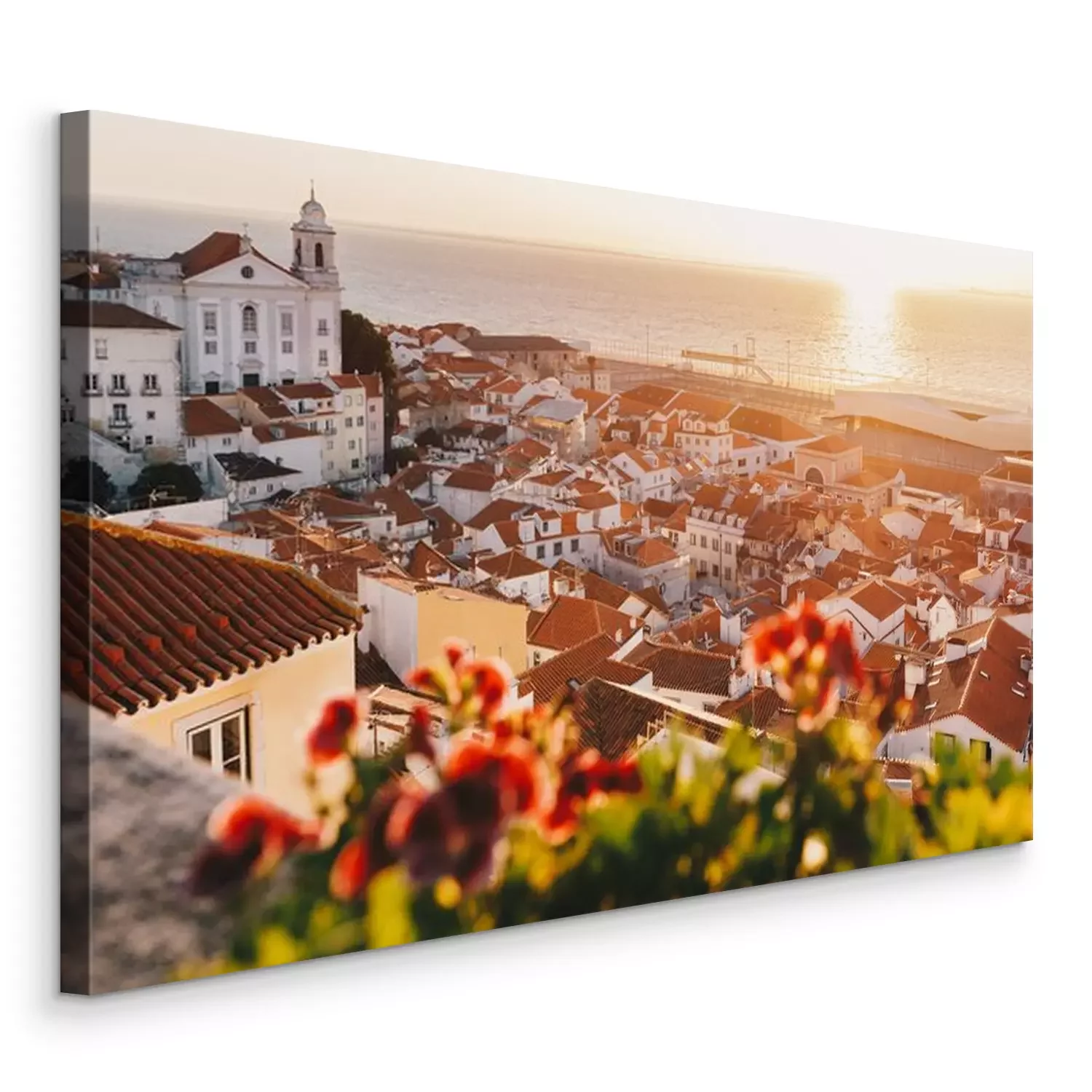 Tableau  Panorama avec coucher de soleil à Lisbonne