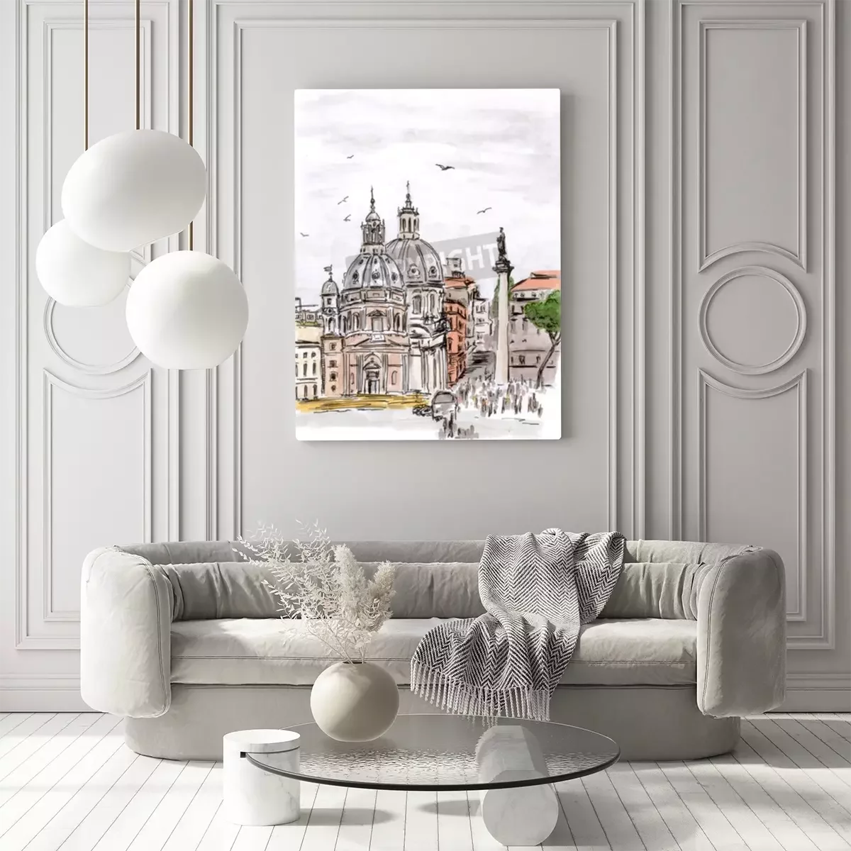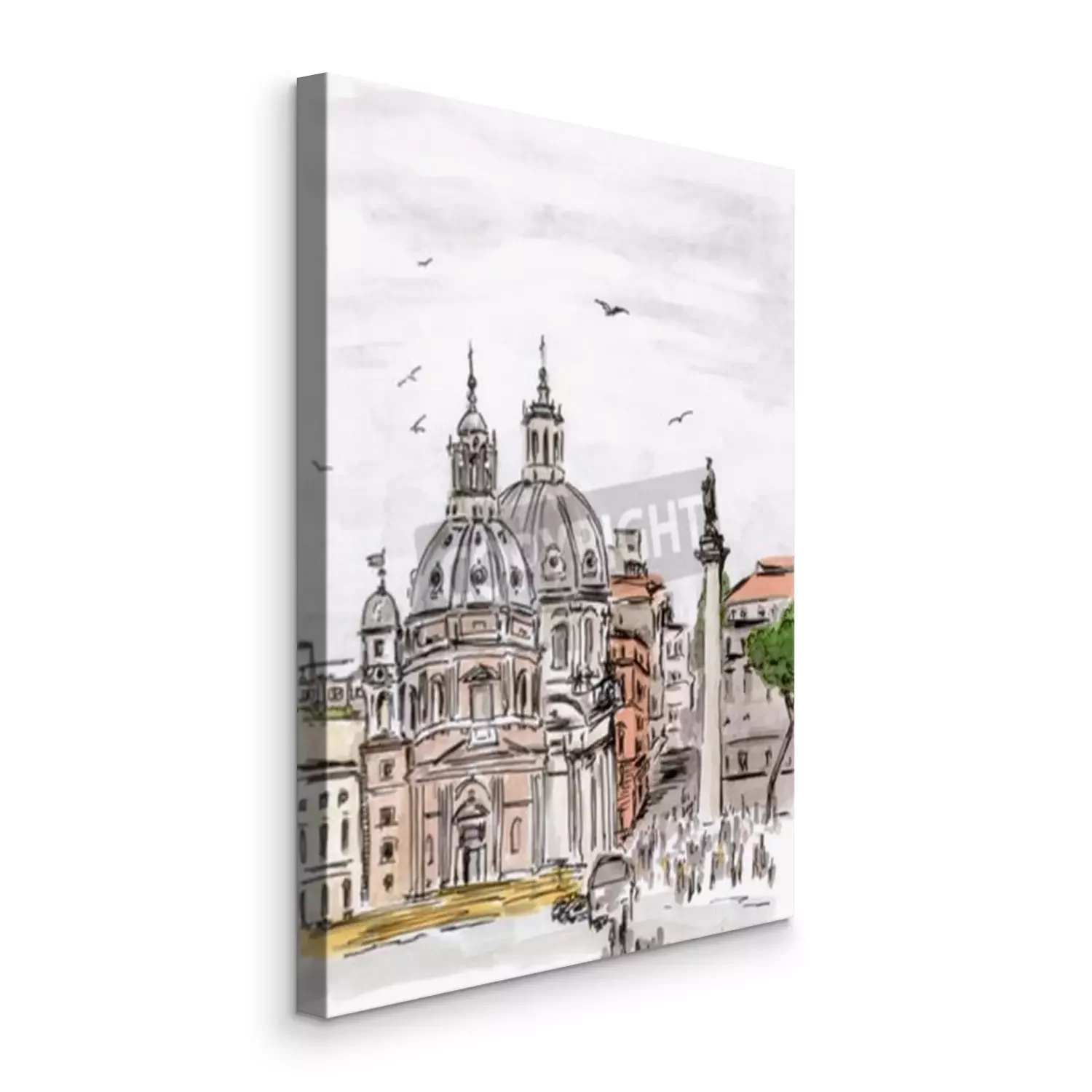 Tableau  Panorama de Rome à l'aquarelle