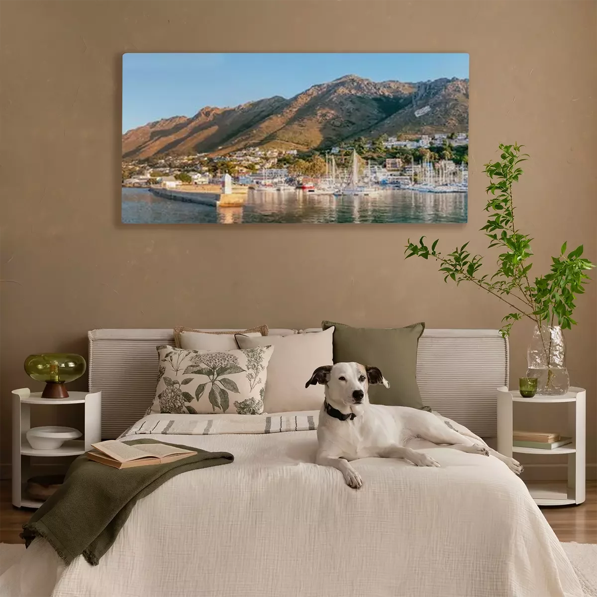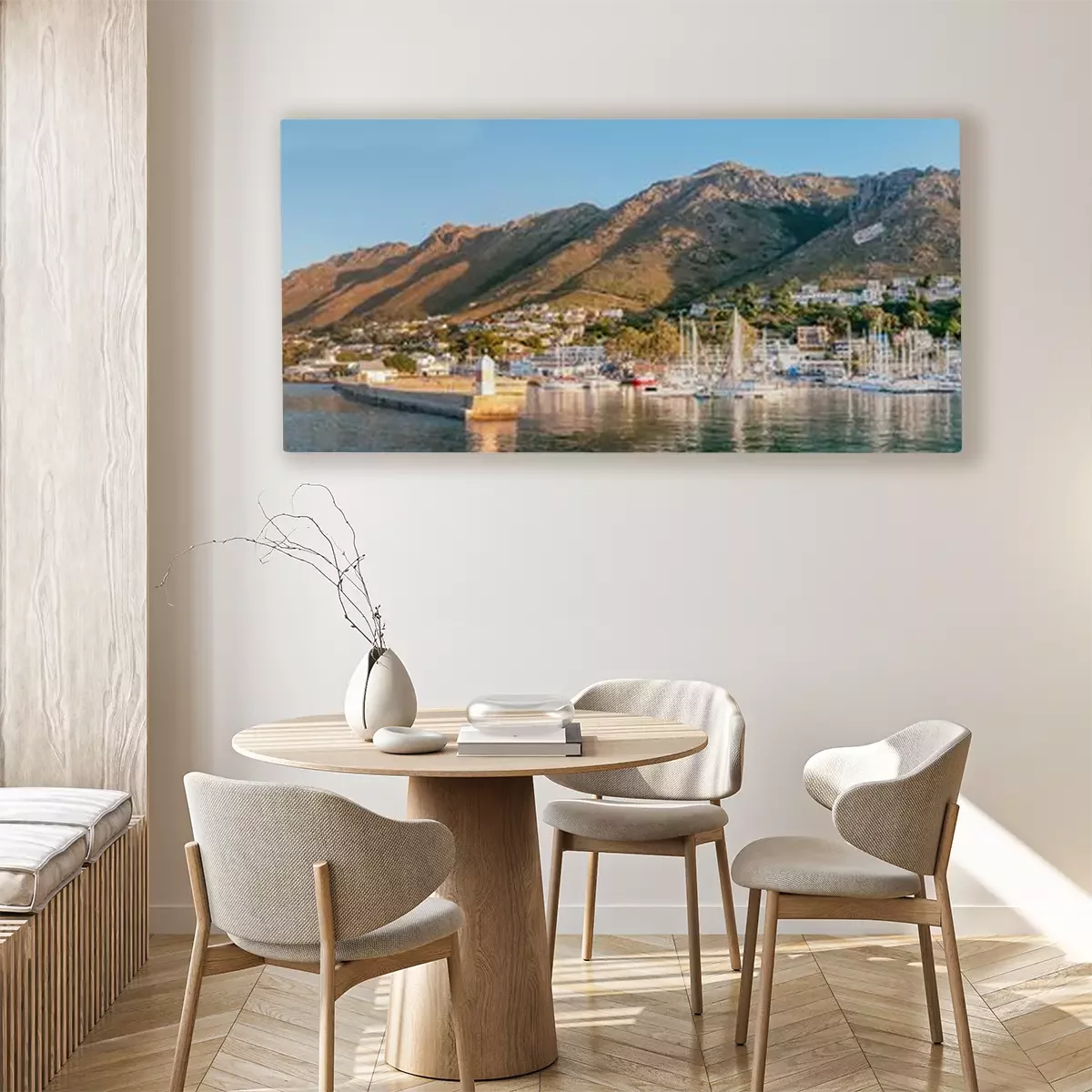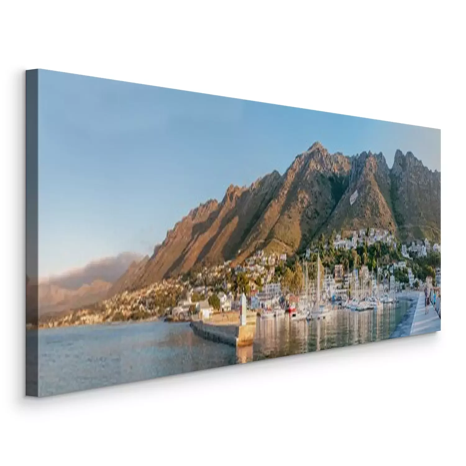 Tableau  Panorama of Gordons Bay harbor and Hottentots-Holland Mountains