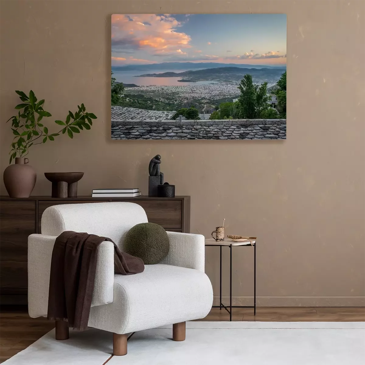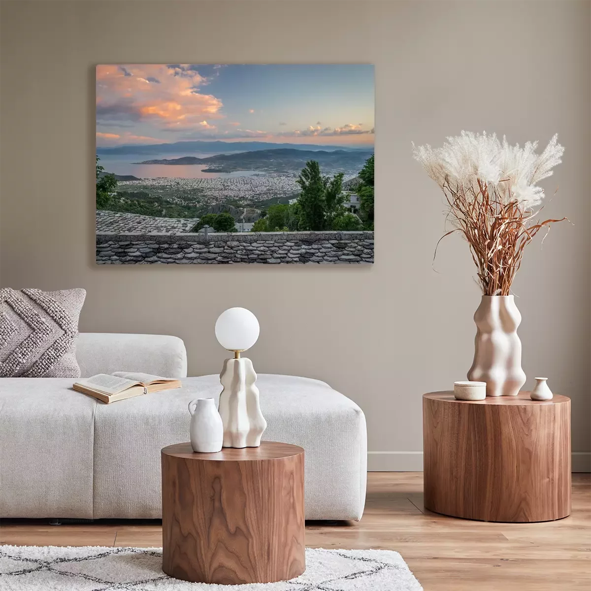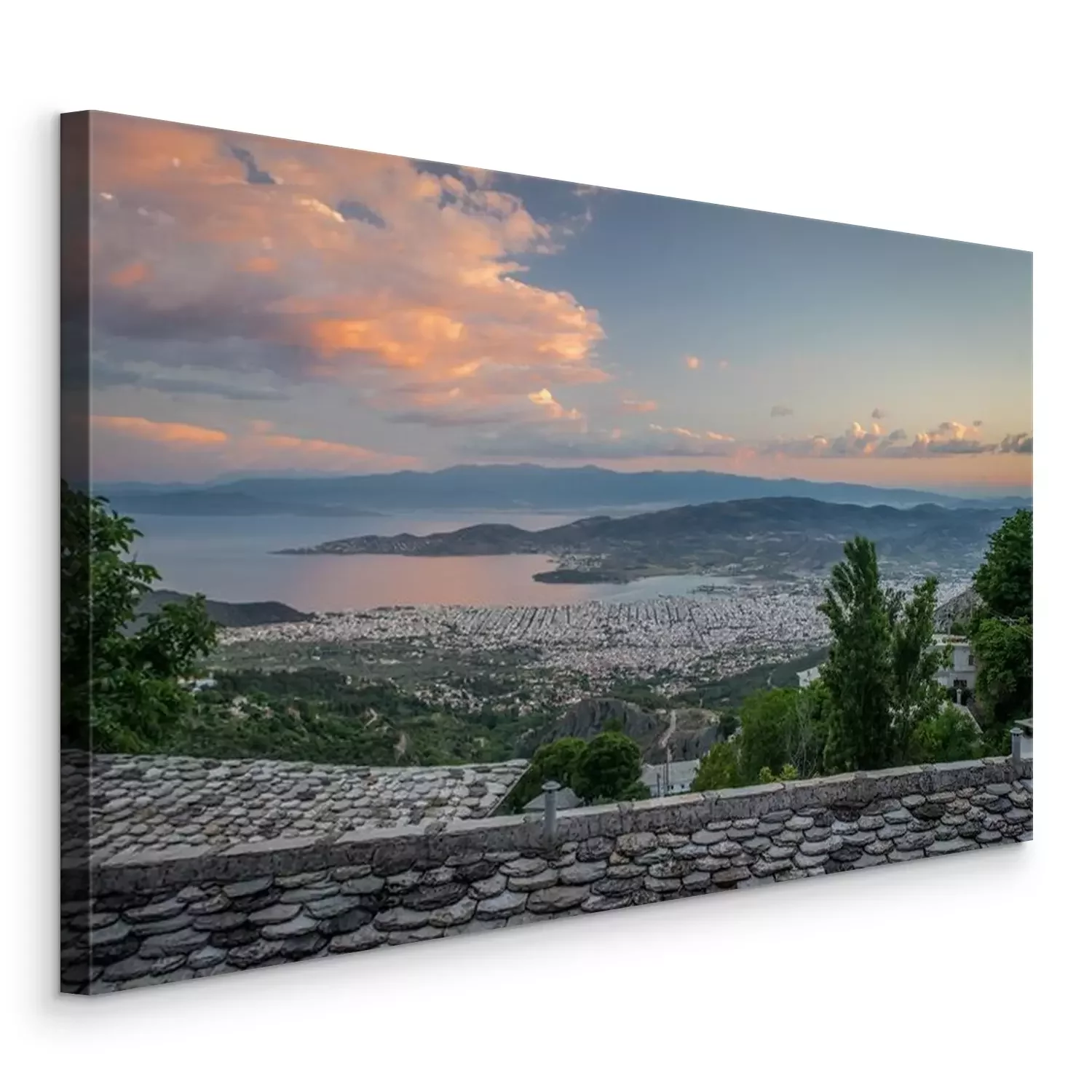 Tableau  Panoramic view on Volos during sunset from vilage Makrinitsa on Pelion Mountain