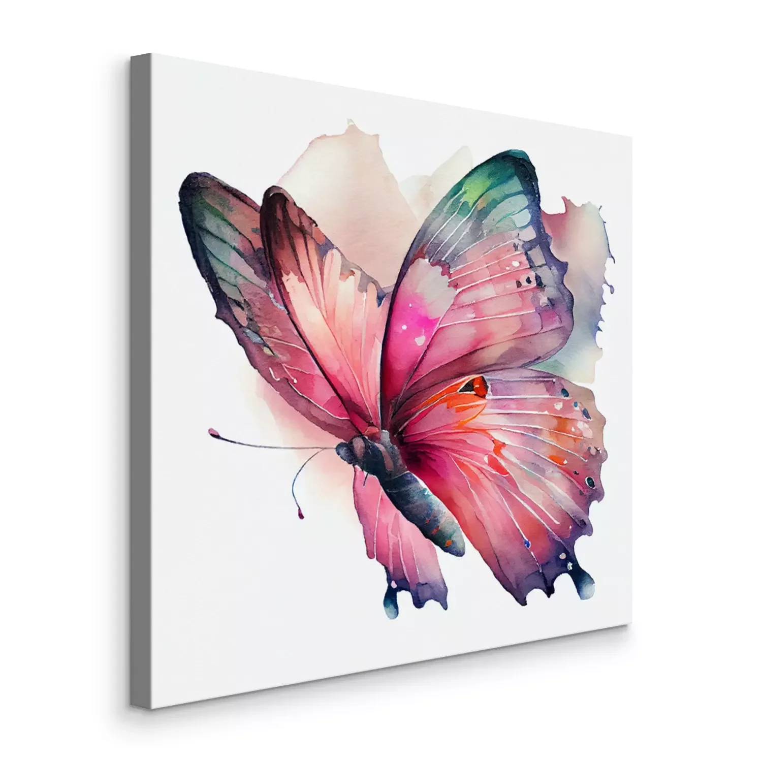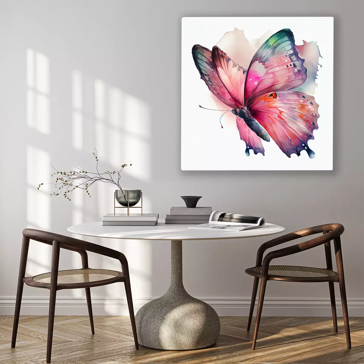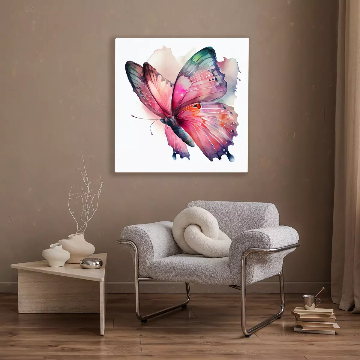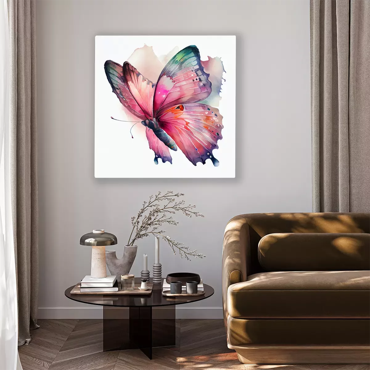 Tableau : Papillon aquarelle aux couleurs rose et vert