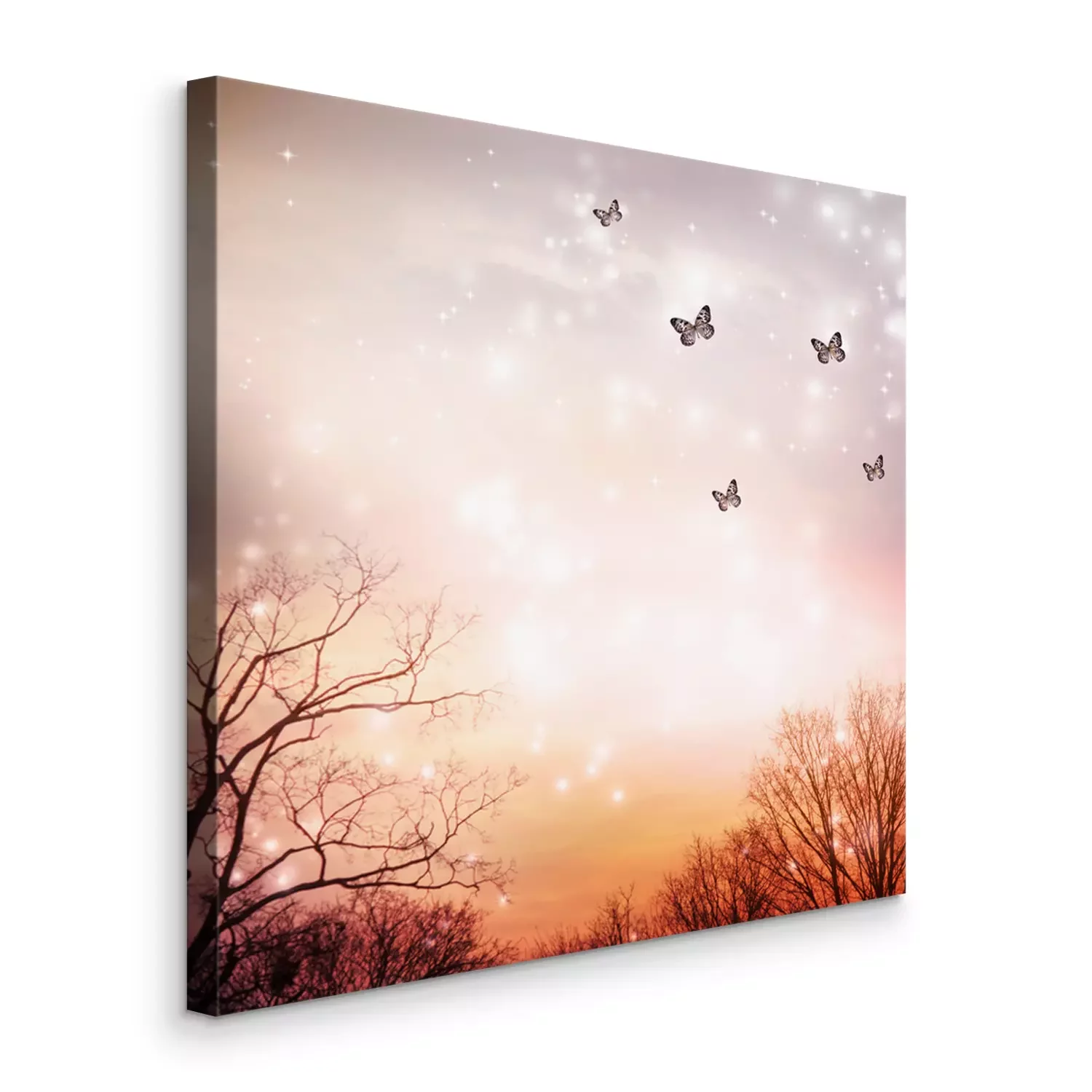 Tableau  Papillons sur des arbres sur fond rouge