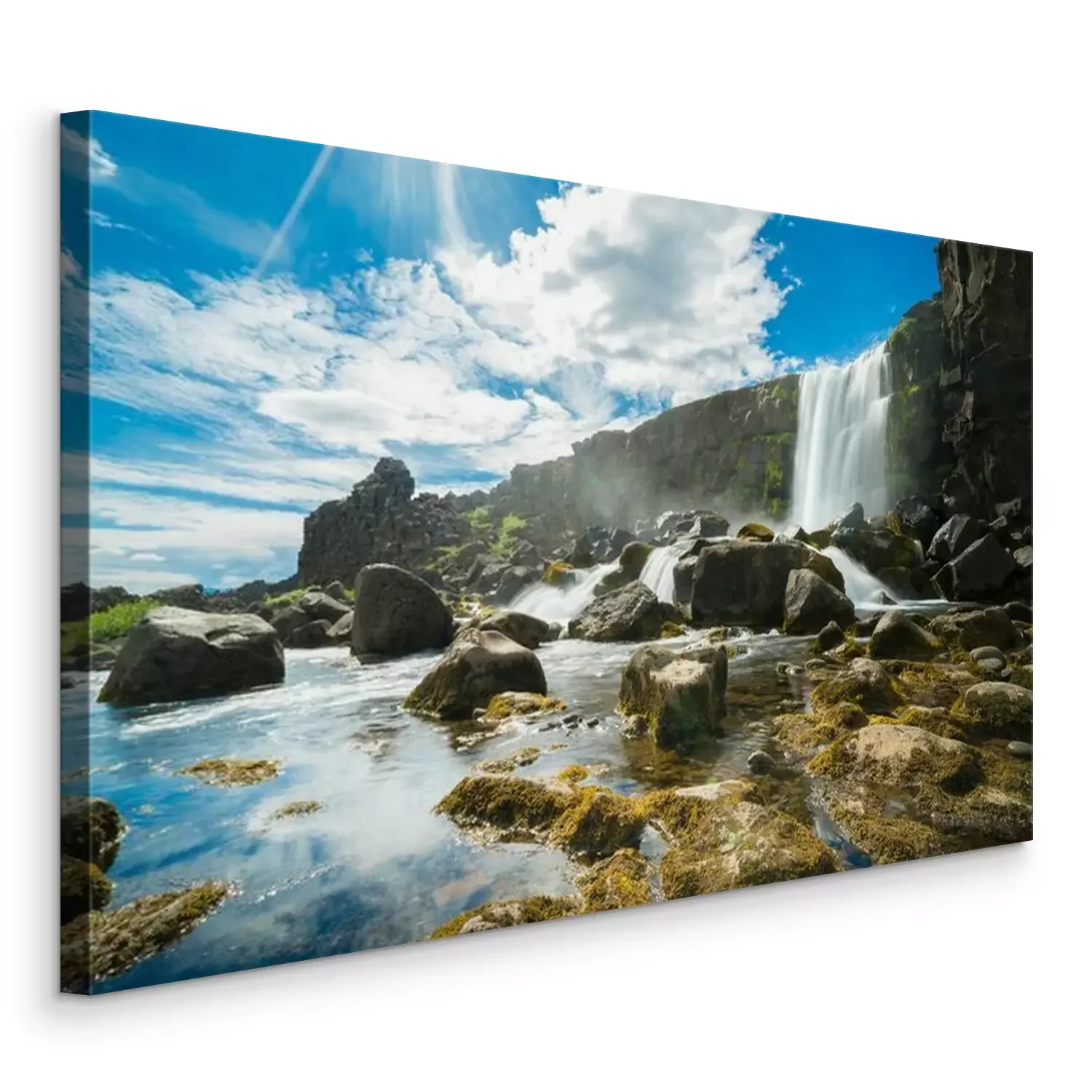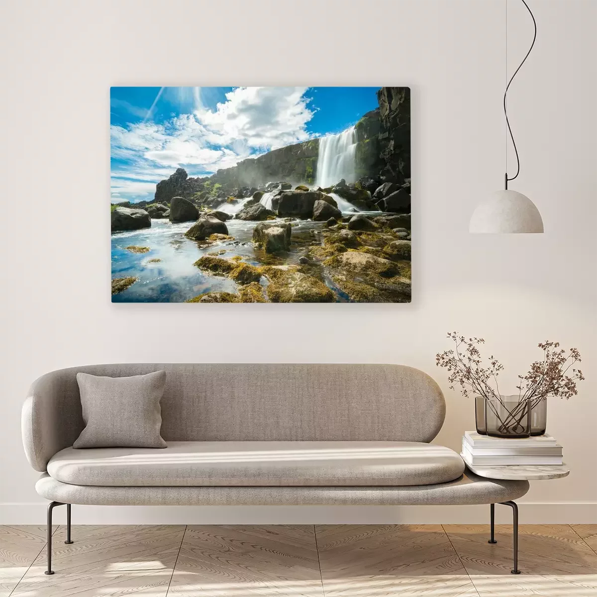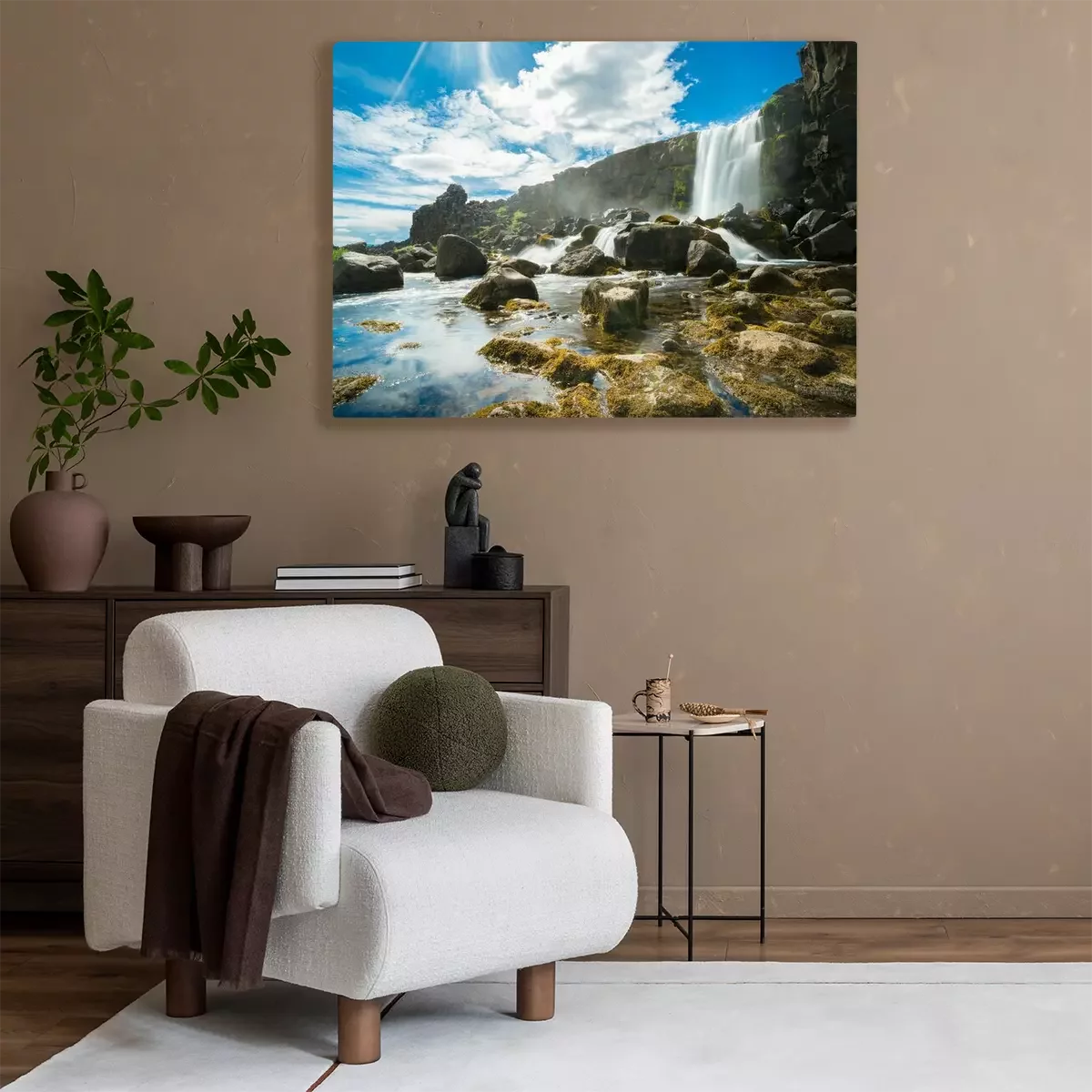 Tableau  Parc national de Thingvellir, vallée du rift, cascade dans le Rift atlantique moyen, Pingvellir, Islande