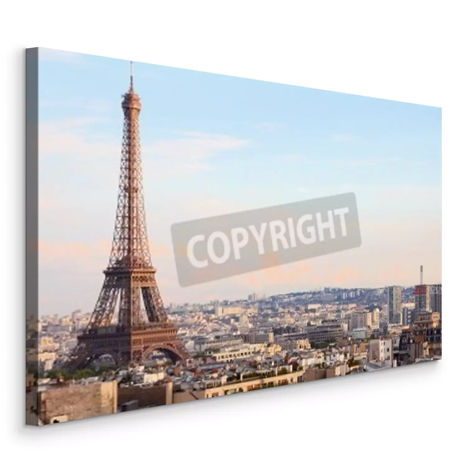 Tableau  Paris, France - paysage urbain avec la tour Eiffel à la lumière du soleil couchant.