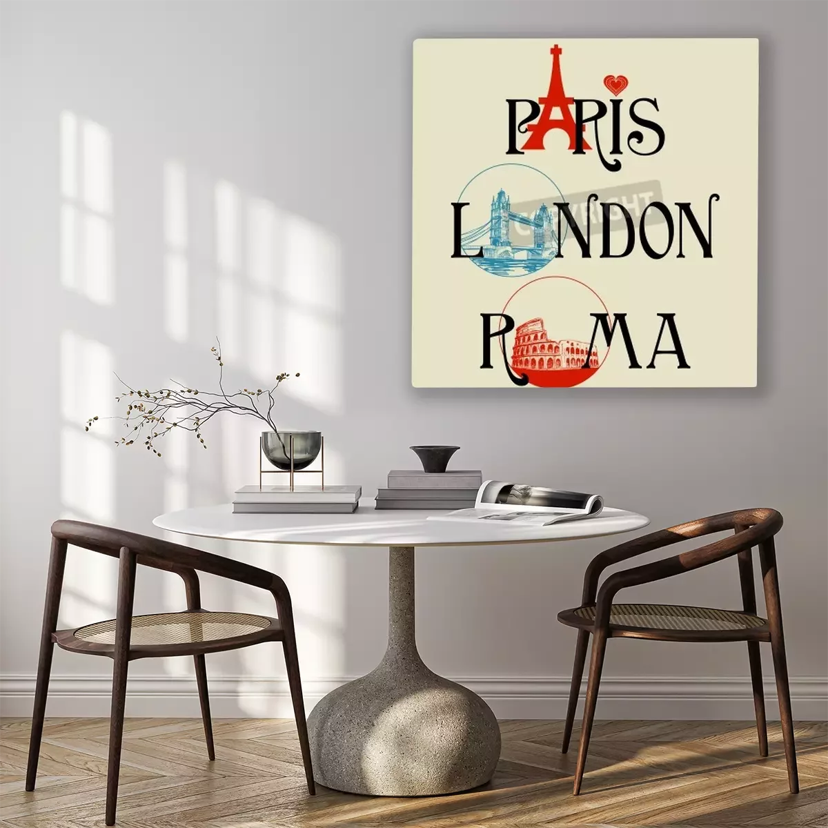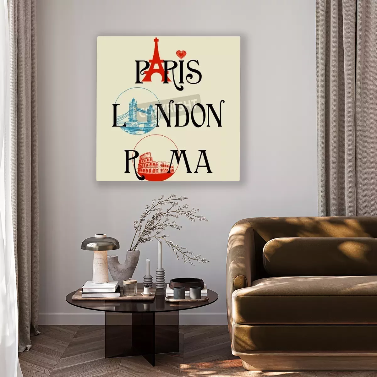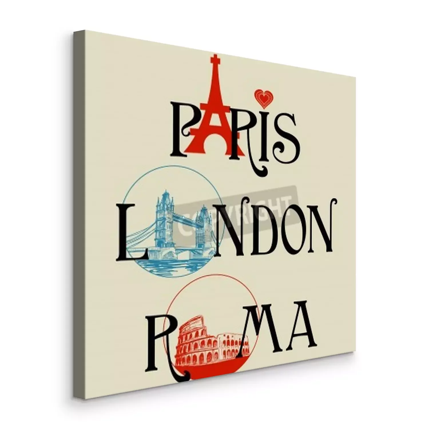 Tableau  Paris, Londres, Rome lettrage