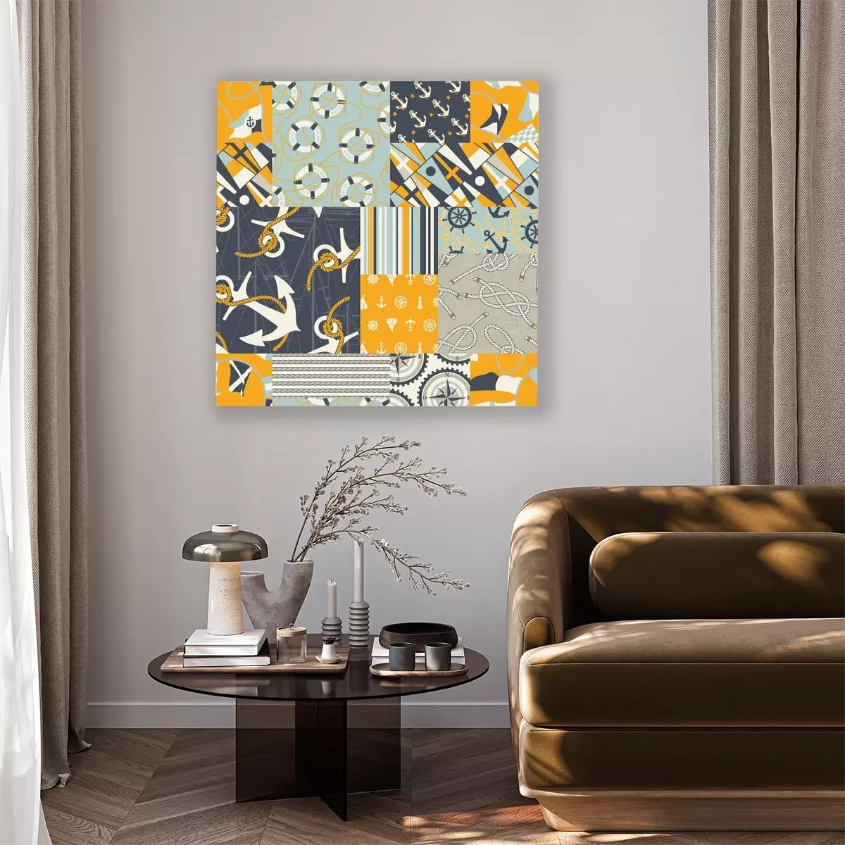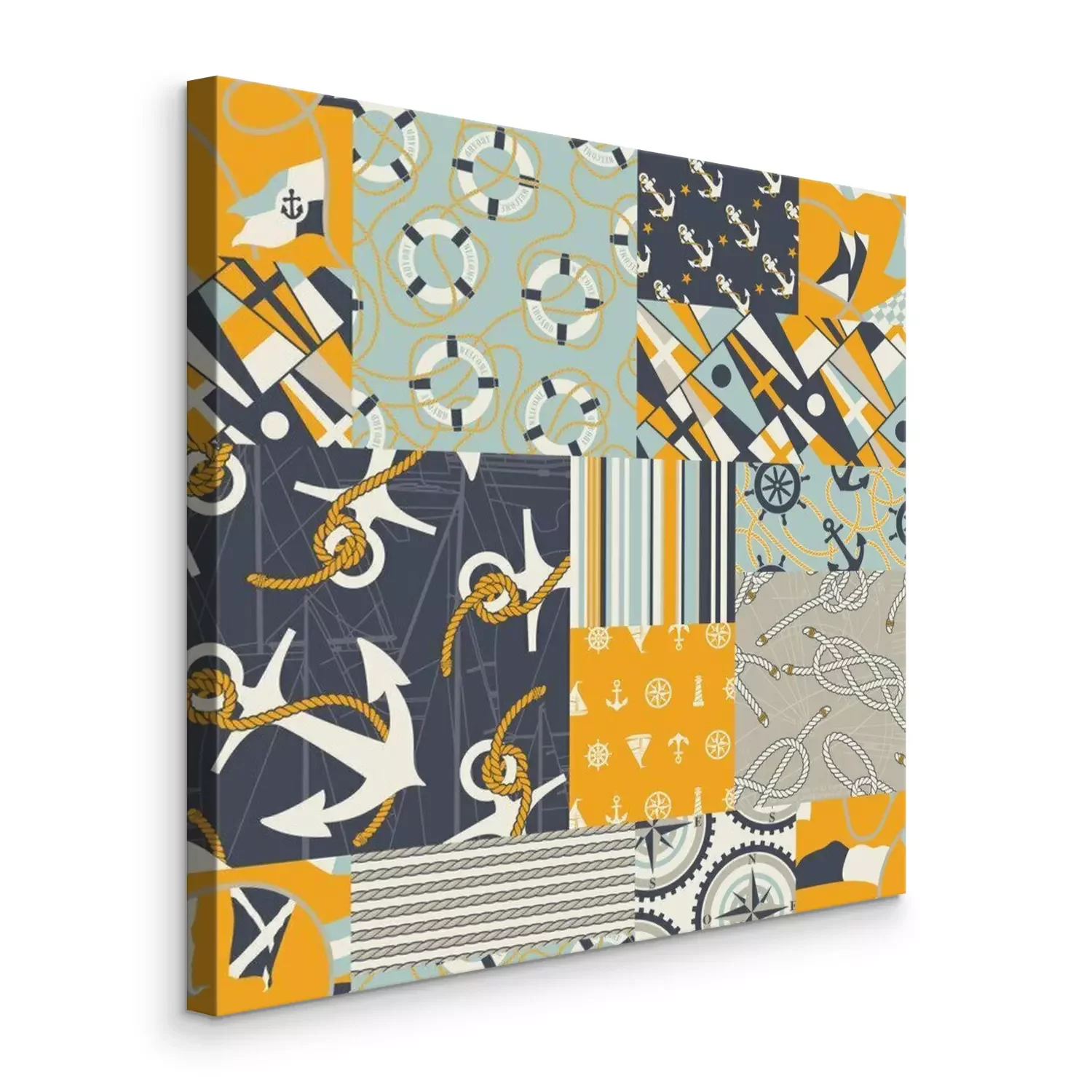 Nautical and sailing elements patchwork vector seamless pattern wallpaper