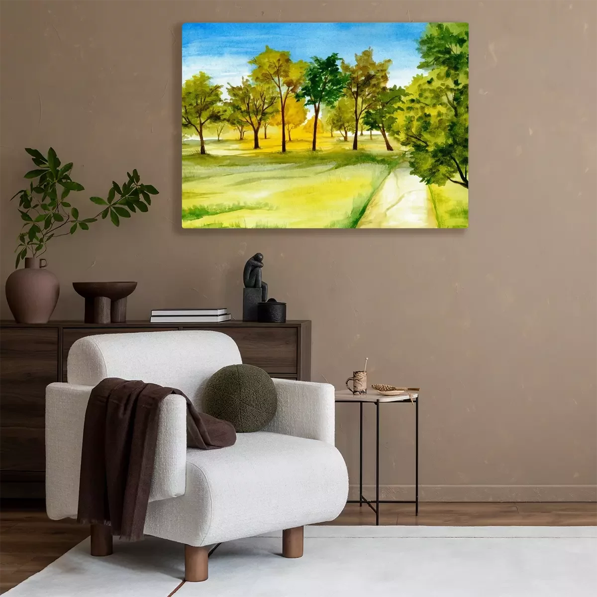 Tableau  Paysage d'aquarelle tiré par la main. Automne, arbre