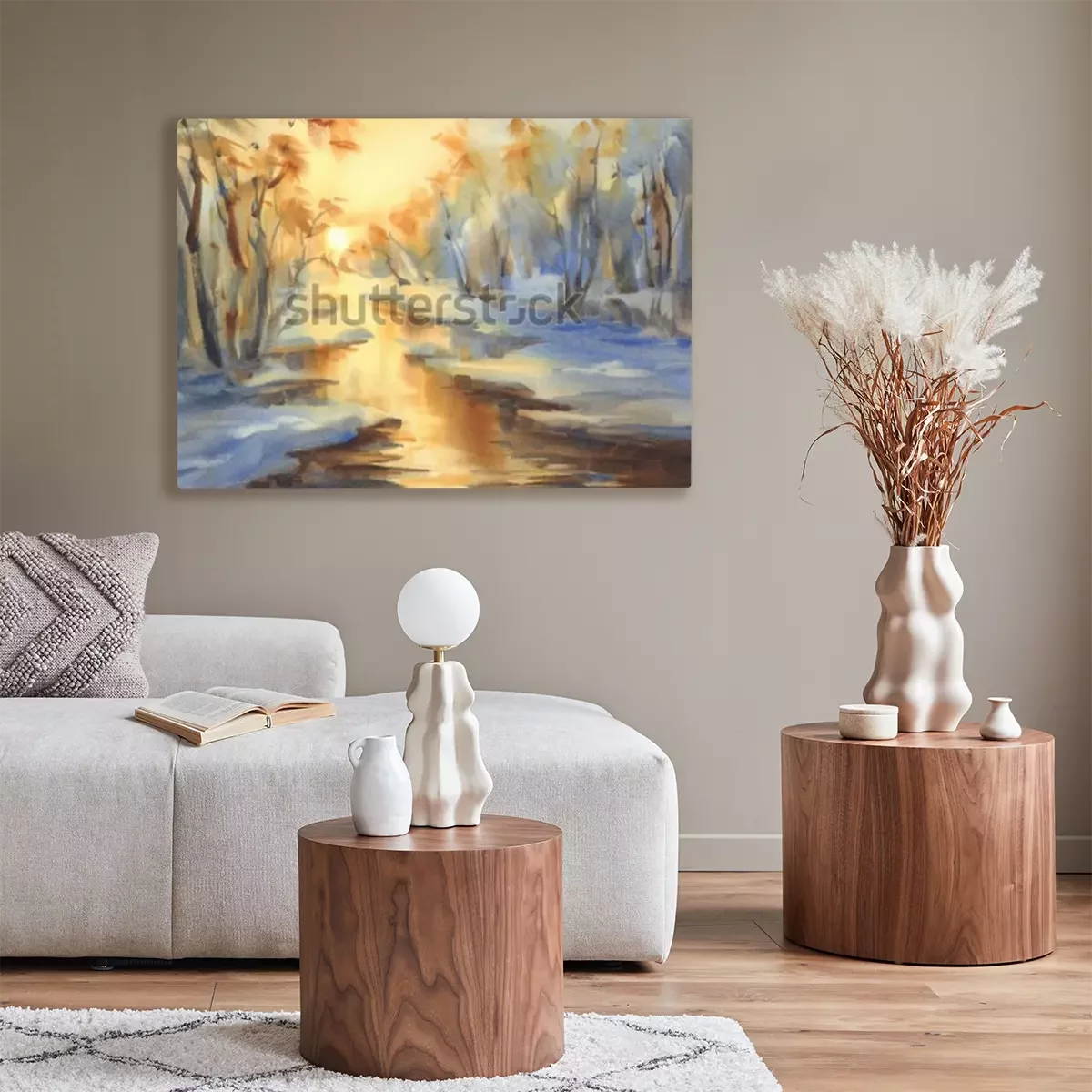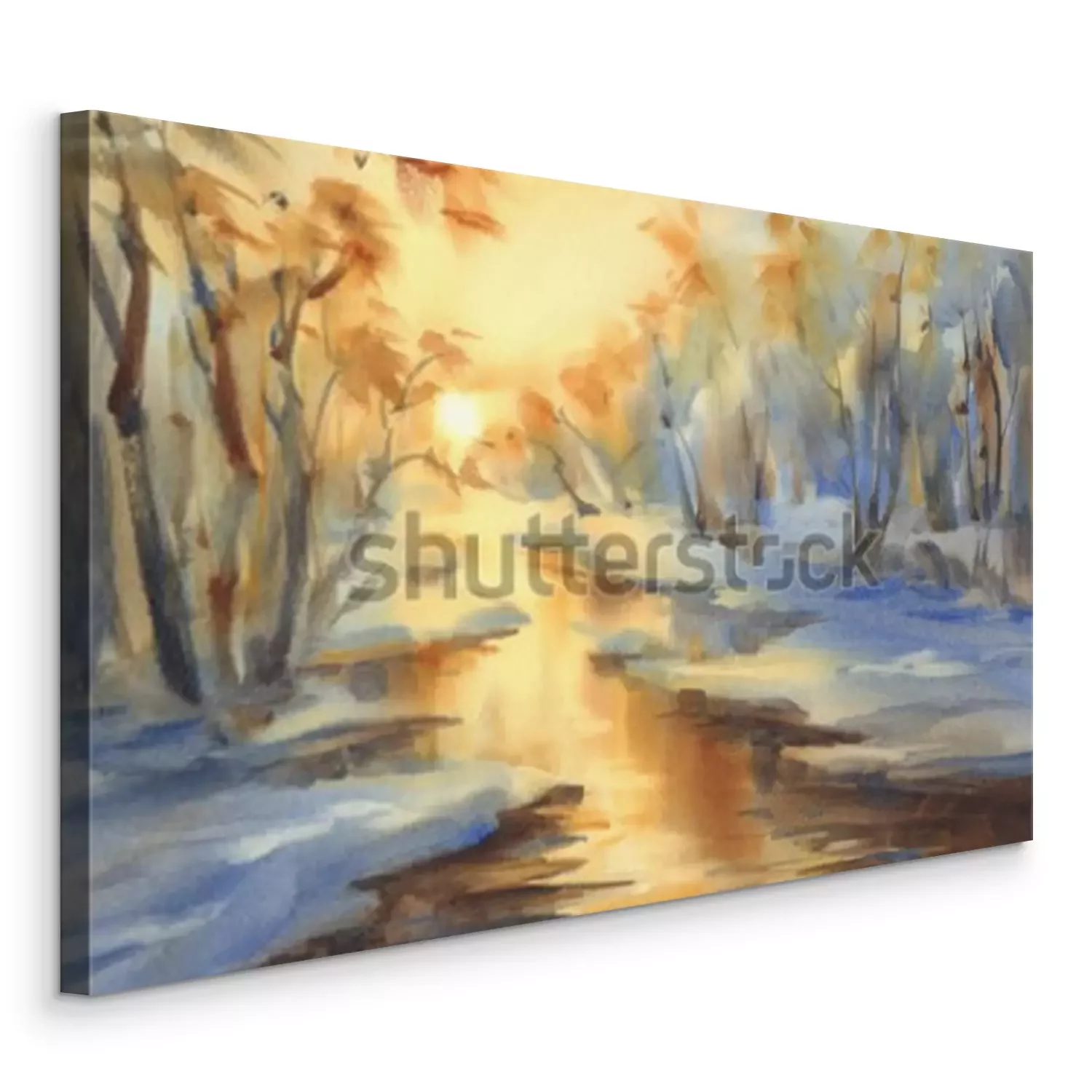Tableau  Paysage d'hiver aquarelle ensoleillé