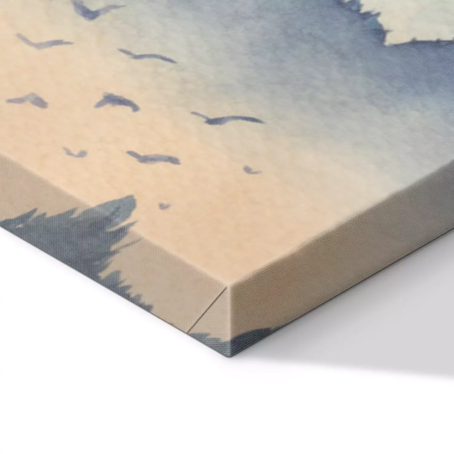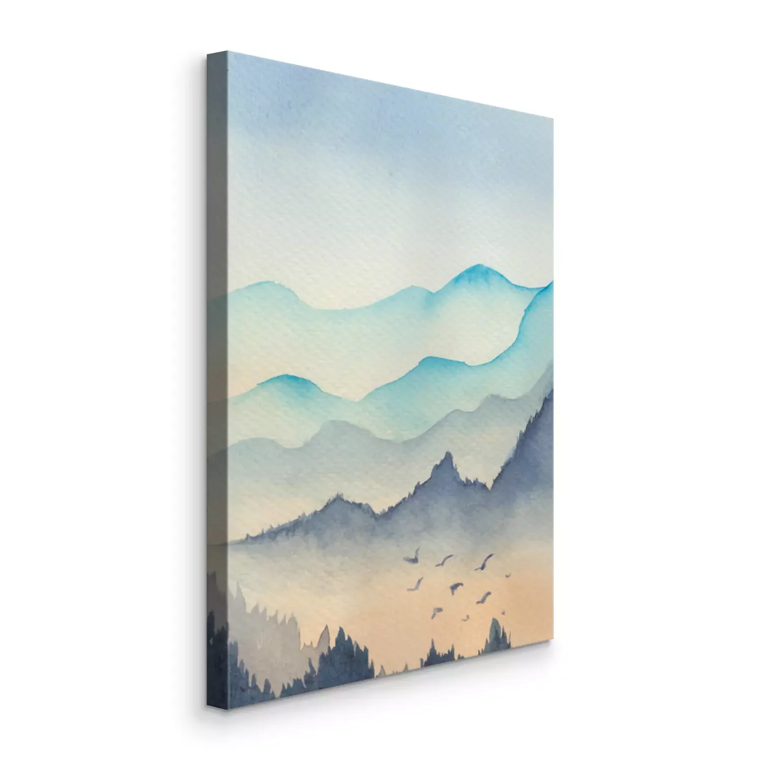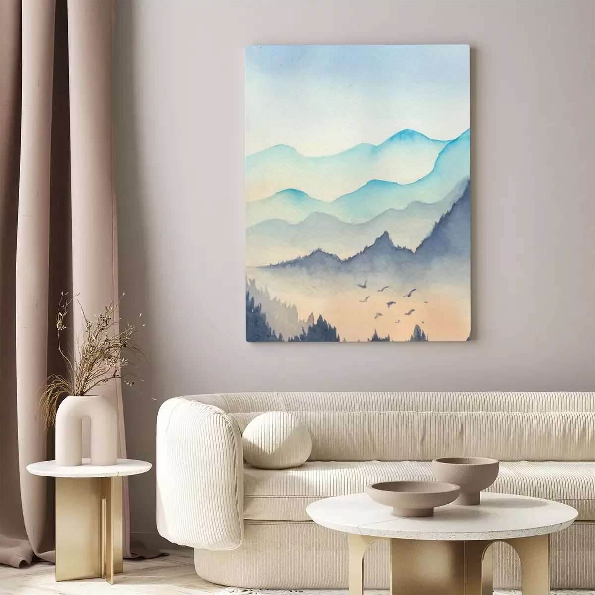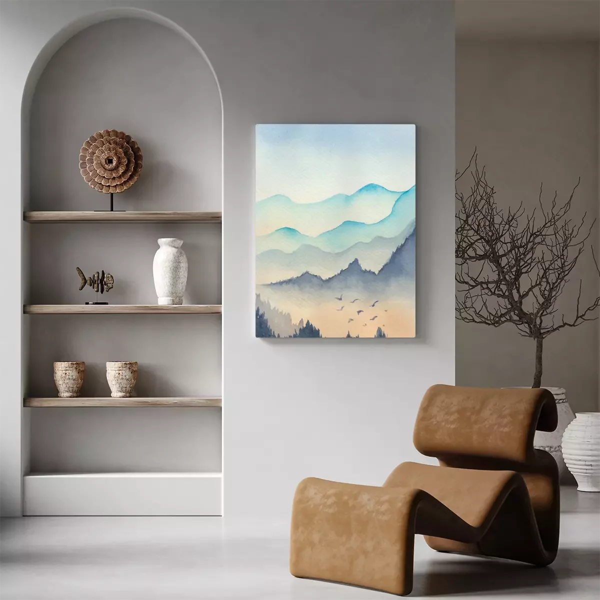 Tableau  Paysage de montagnes bleues dans le brouillard avec oiseau