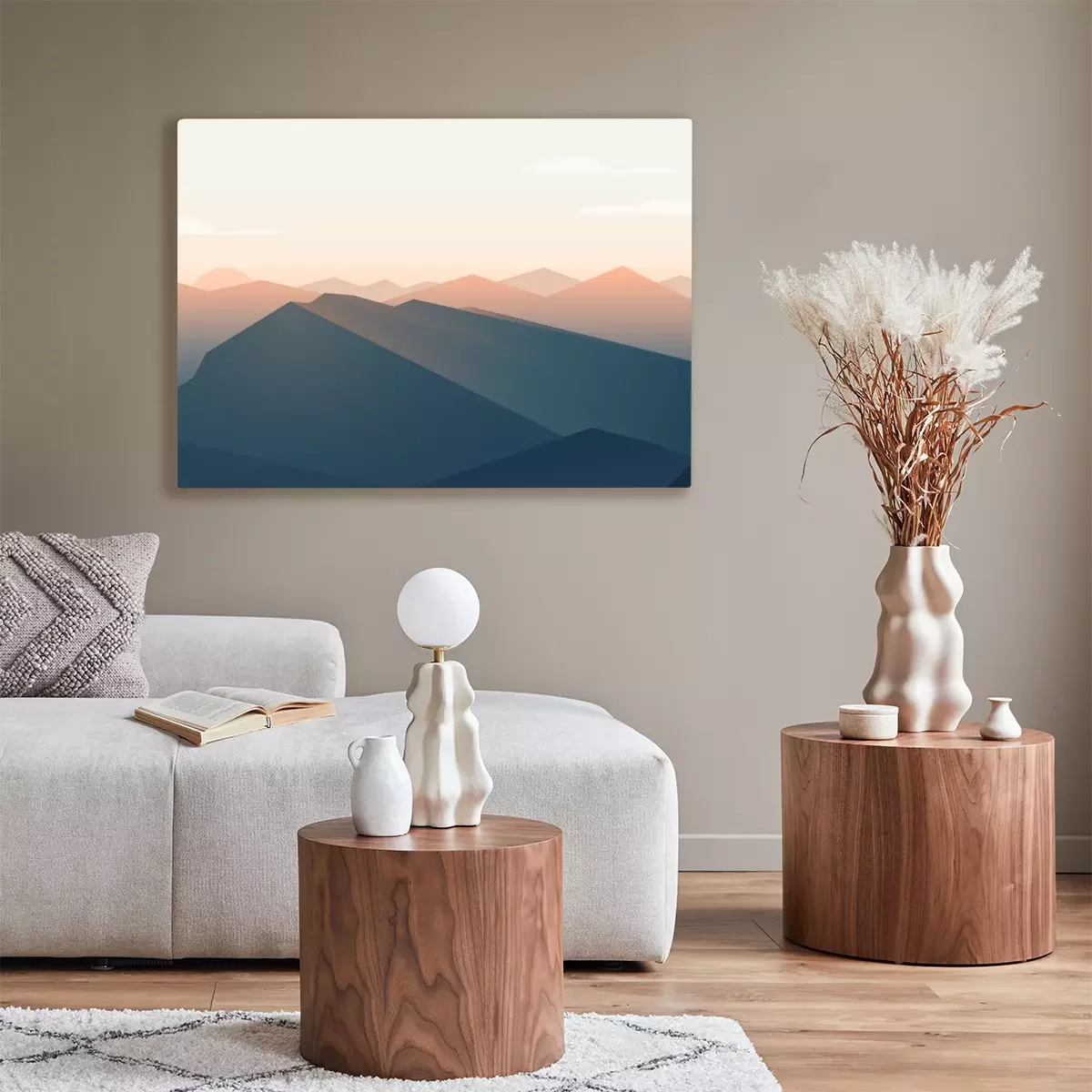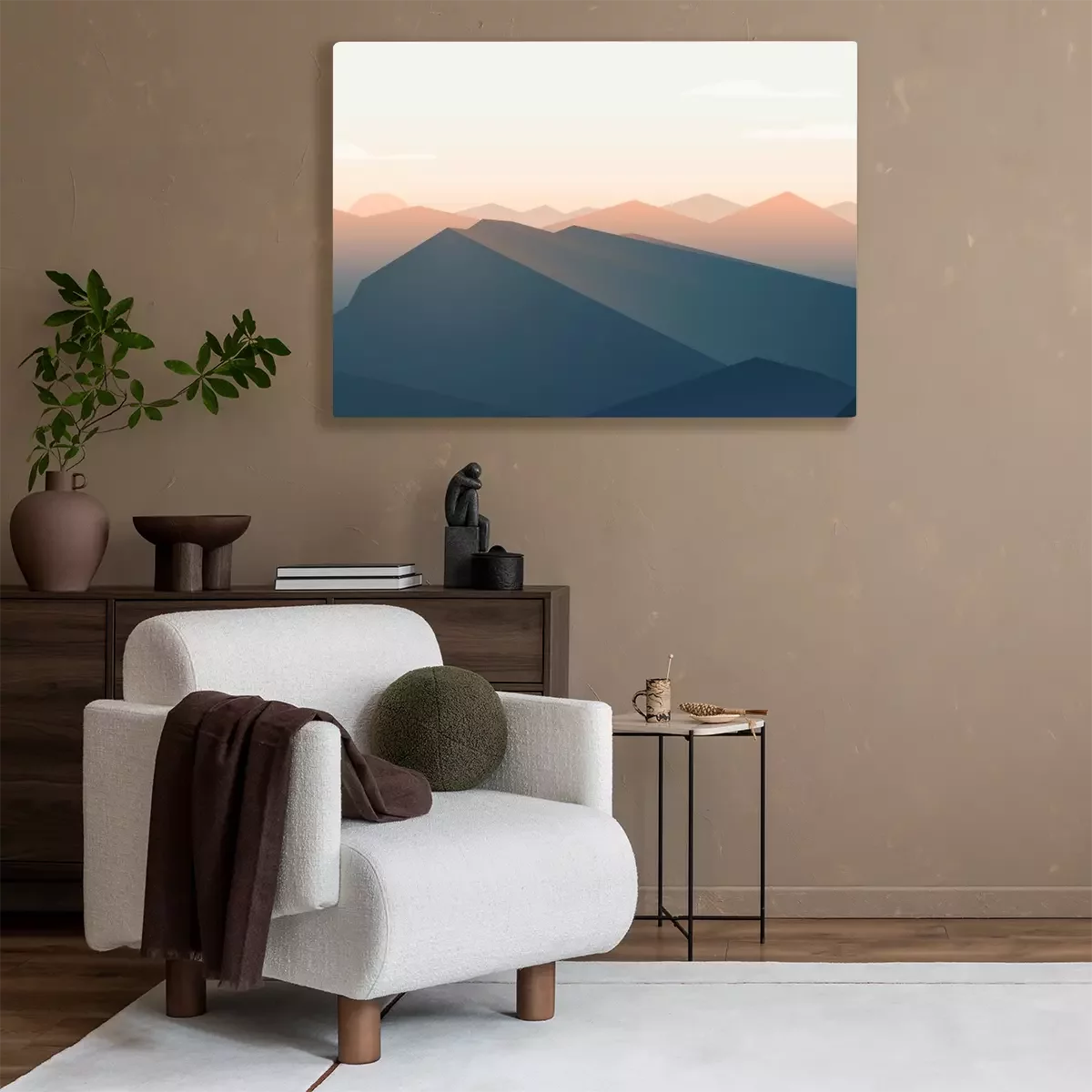 Tableau  Paysage de montagnes. Le coucher du soleil