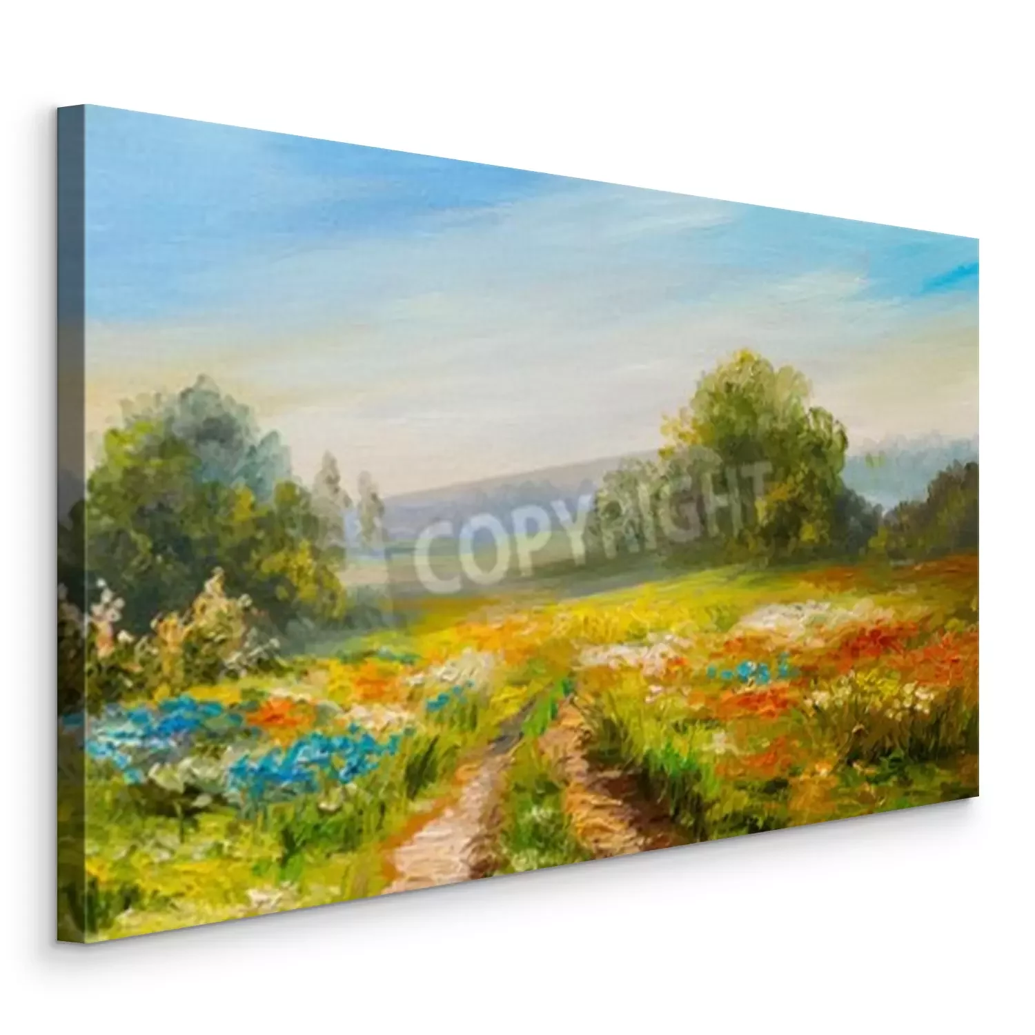 Tableau  Paysage de peinture à l'huile, champ coloré de fleurs, impressionisme abstrait