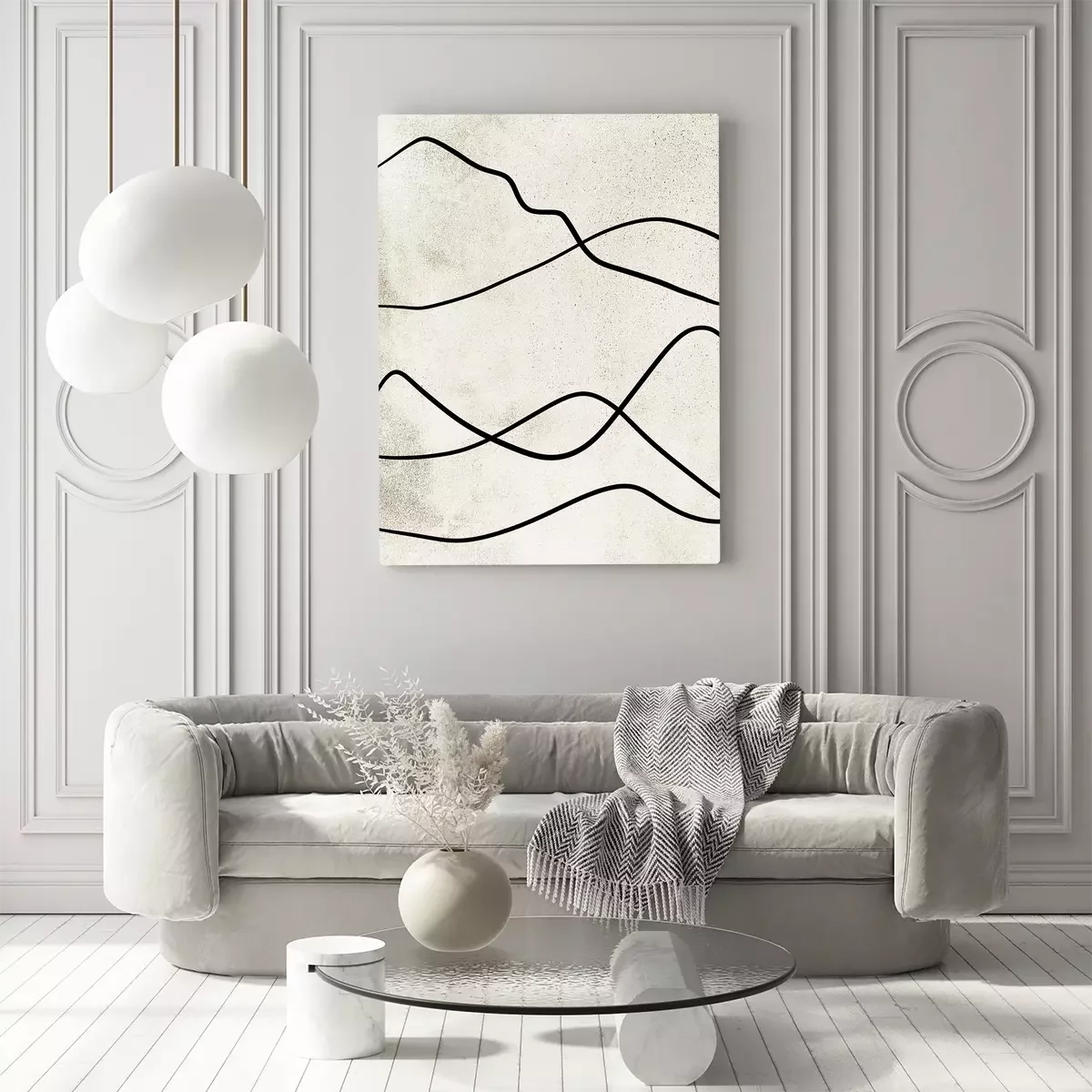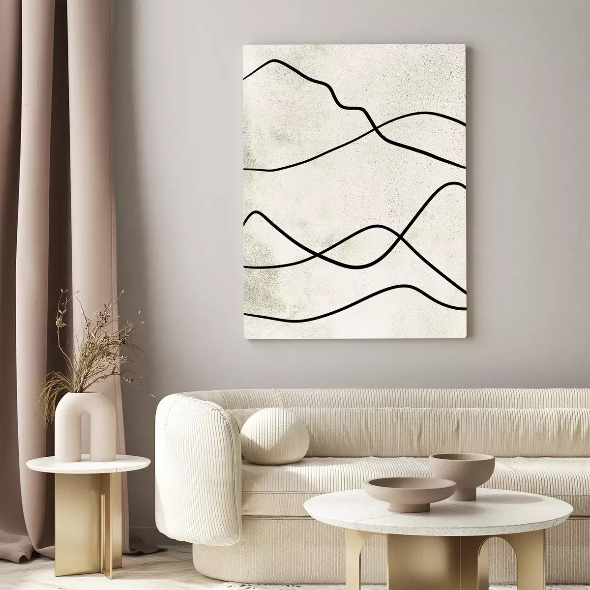 Tableau : Paysage désertique abstrait avec des lignes noires