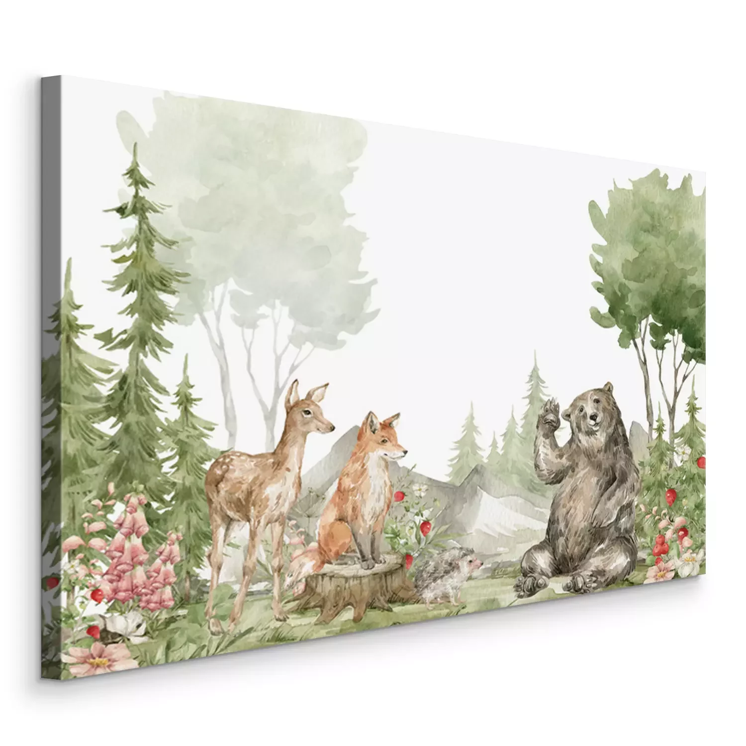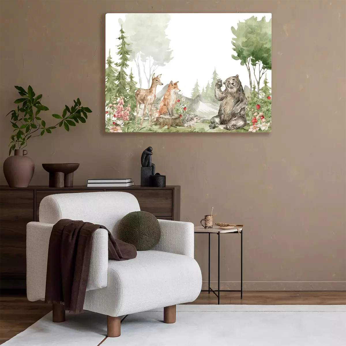 Tableau  Paysage en aquarelle avec des animaux de la forêt dans la nature