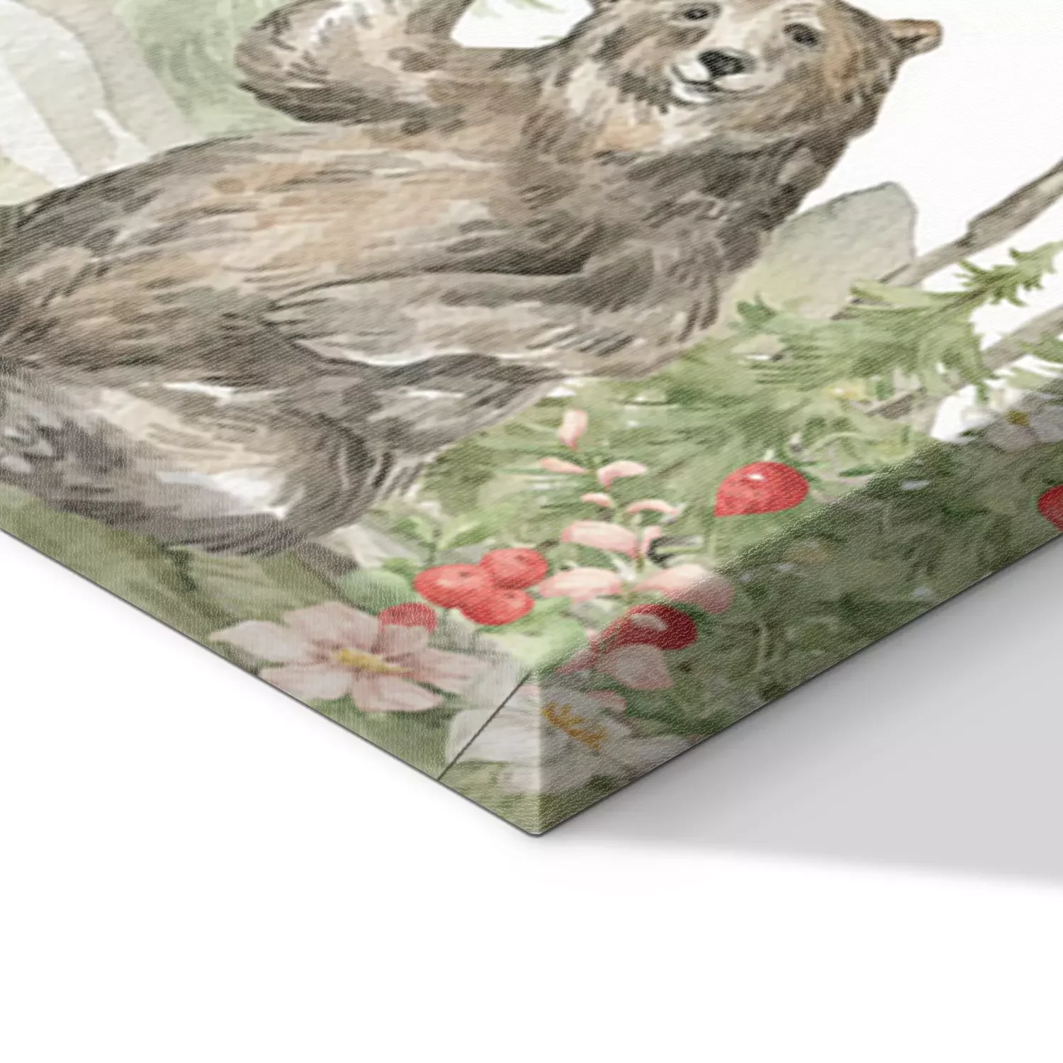 Tableau : Paysage en aquarelle avec des animaux de la forêt dans la nature