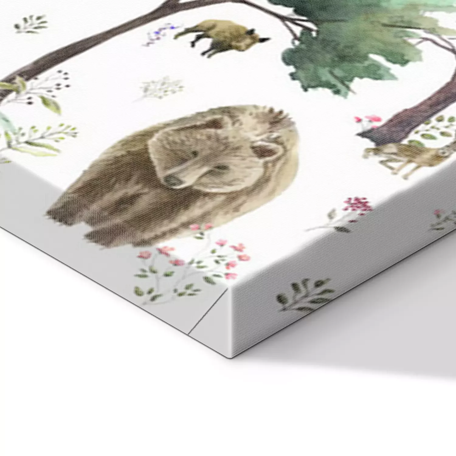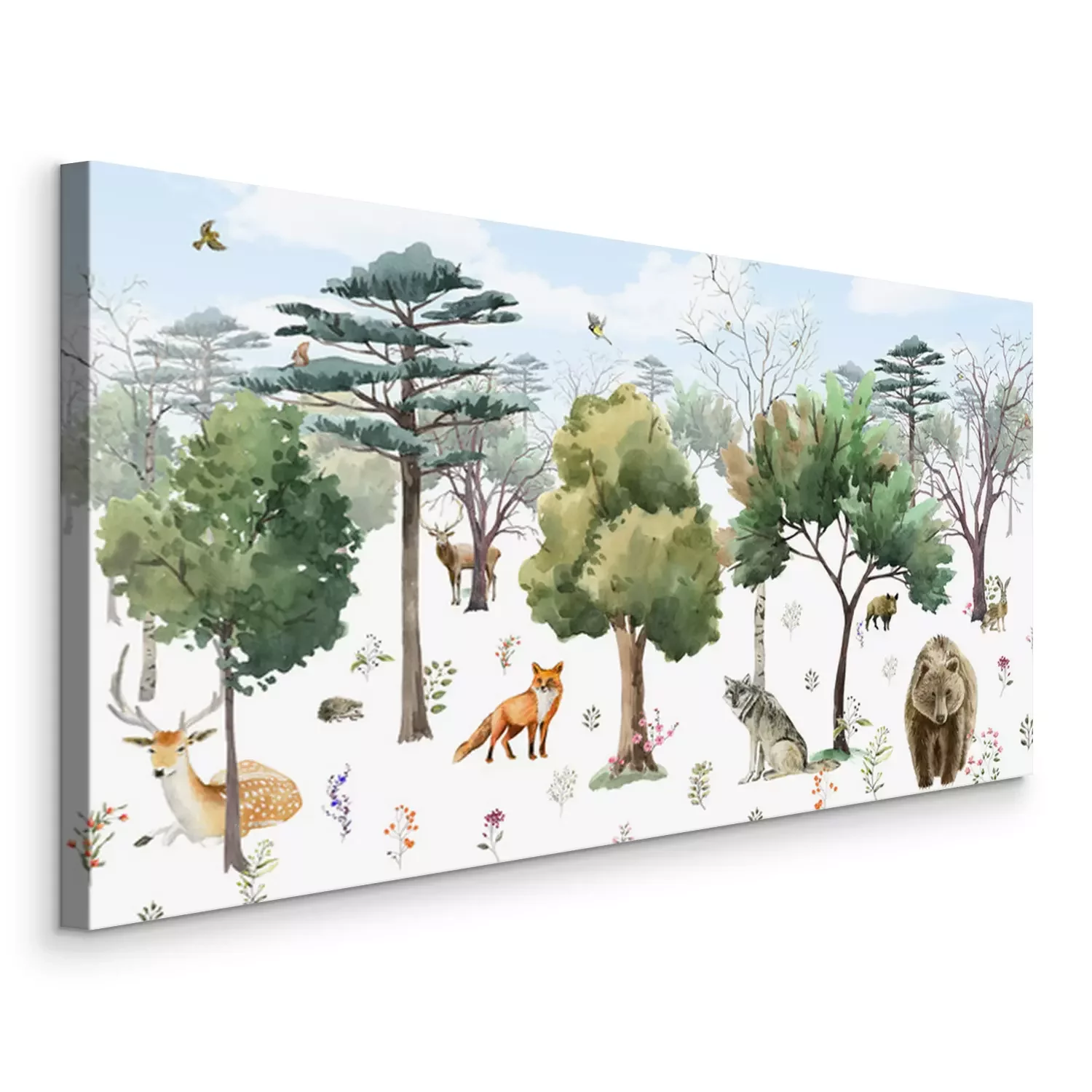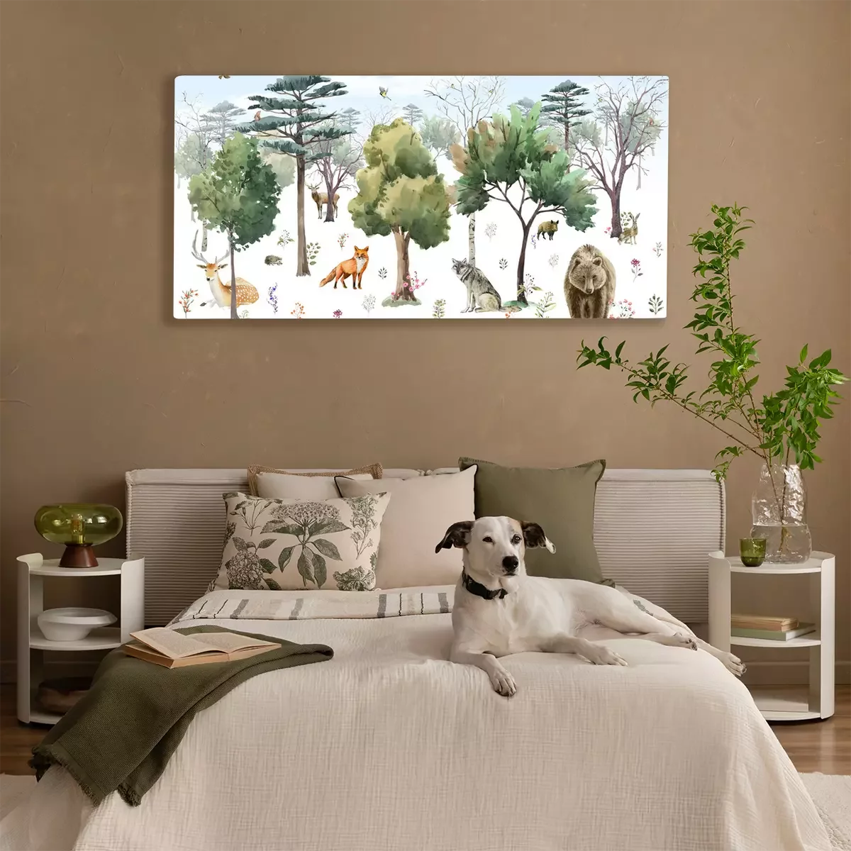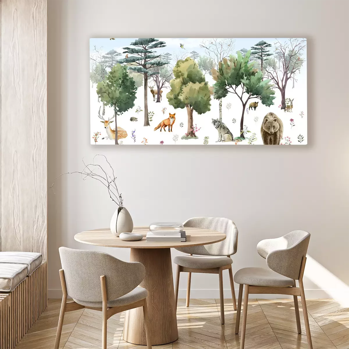 Tableau  Paysage forestier avec des petits animaux en style aquarelle