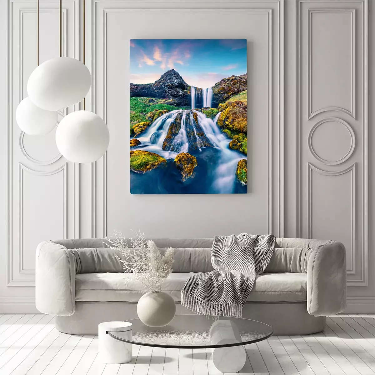 Tableau : Paysage islandais avec une cascade