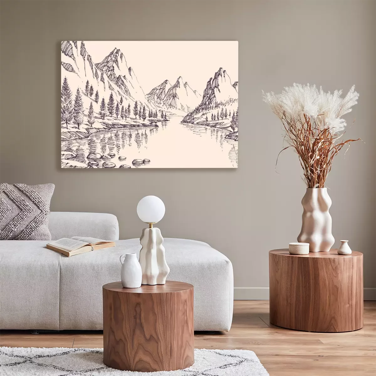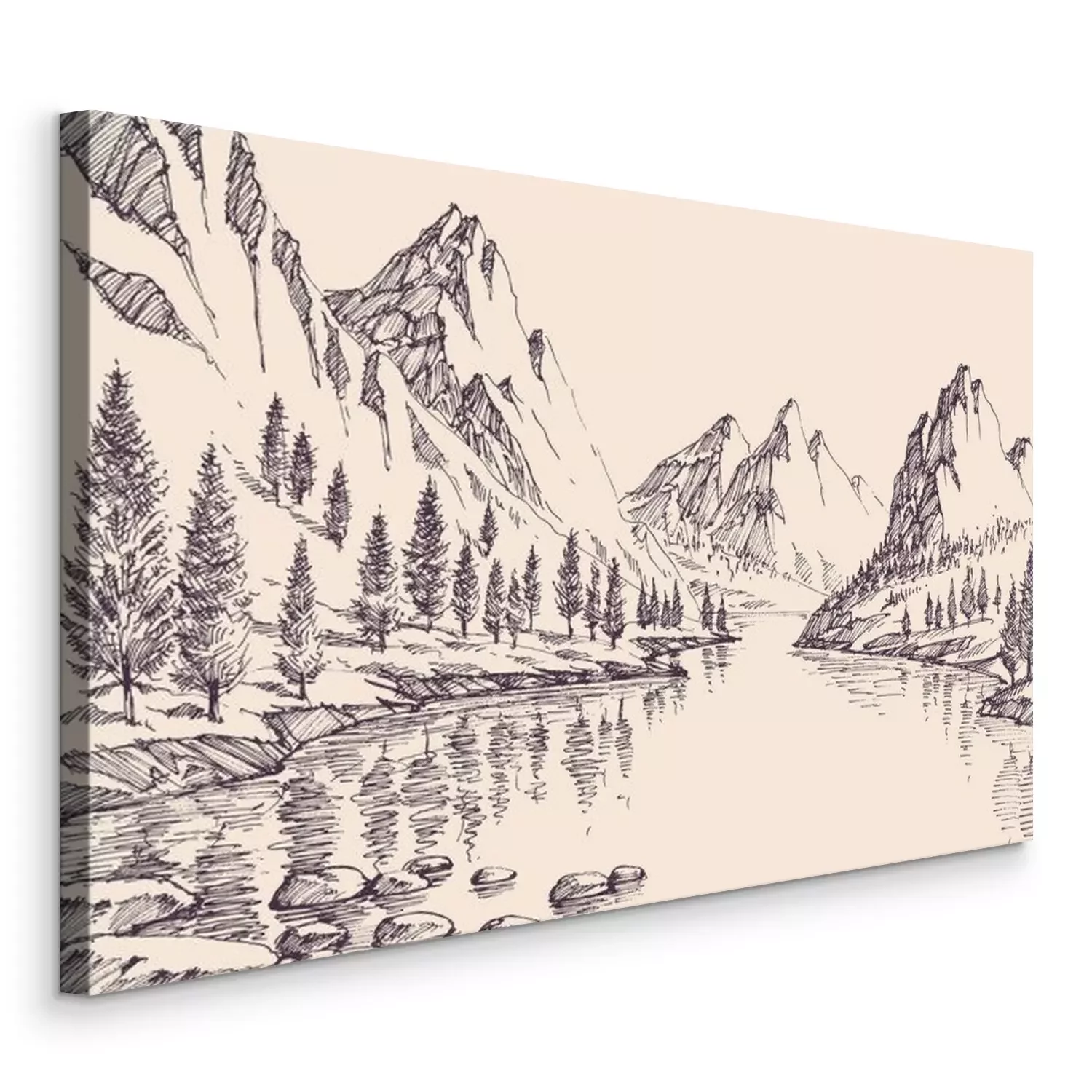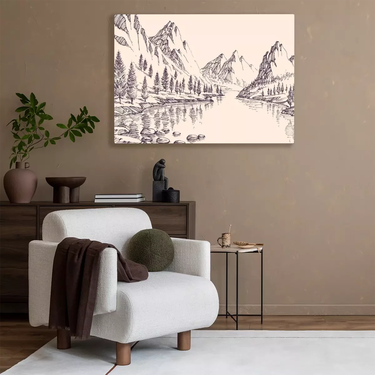 Tableau : Paysage pittoresque rivière et forêt de pins