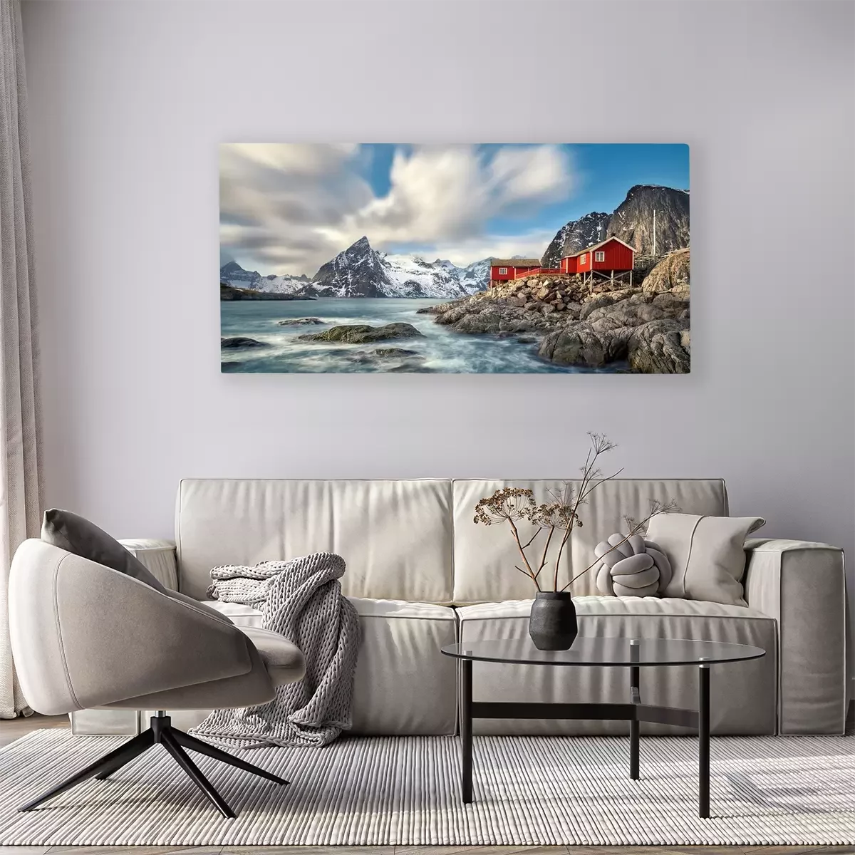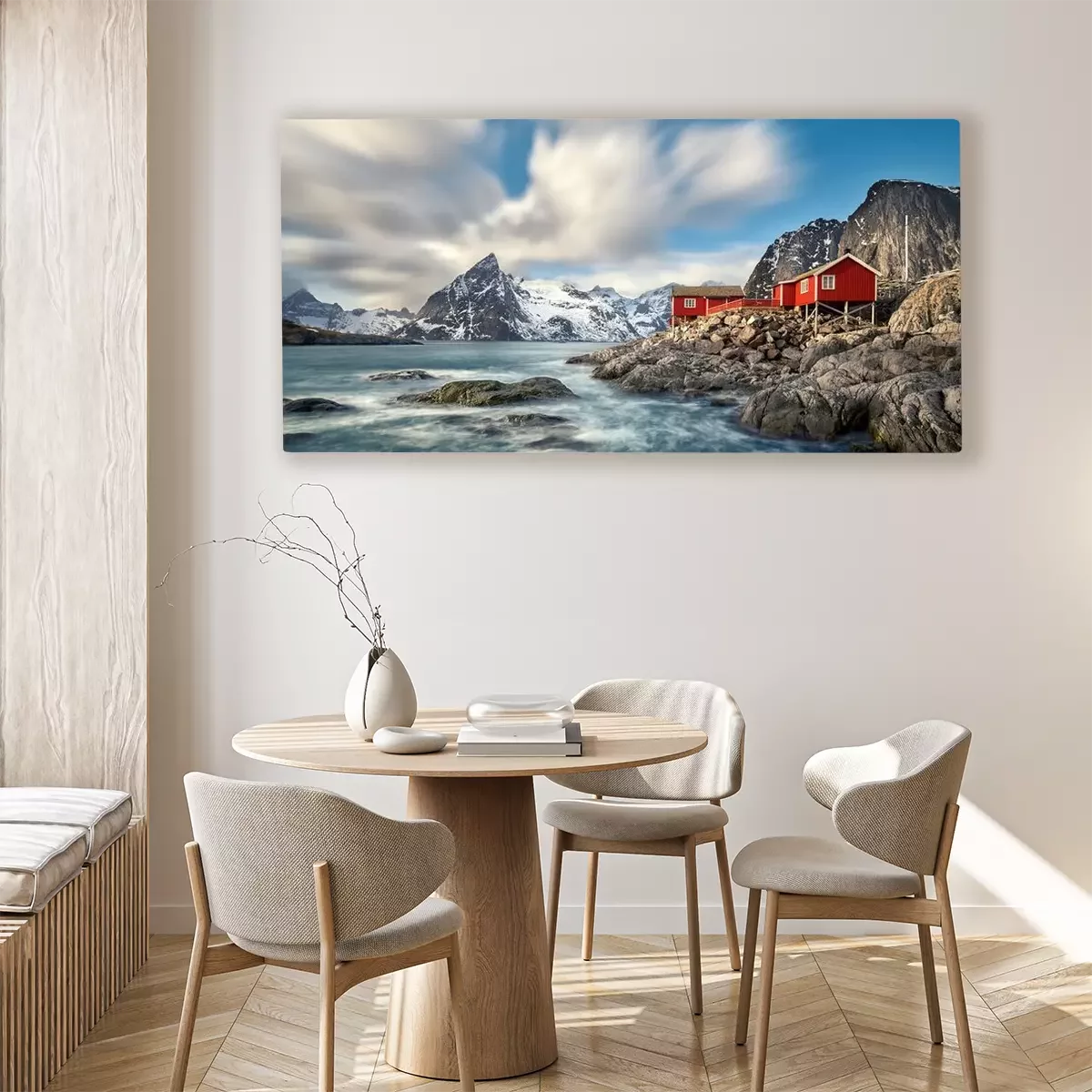 Tableau  Paysage scandinave avec des chalets en bord de mer