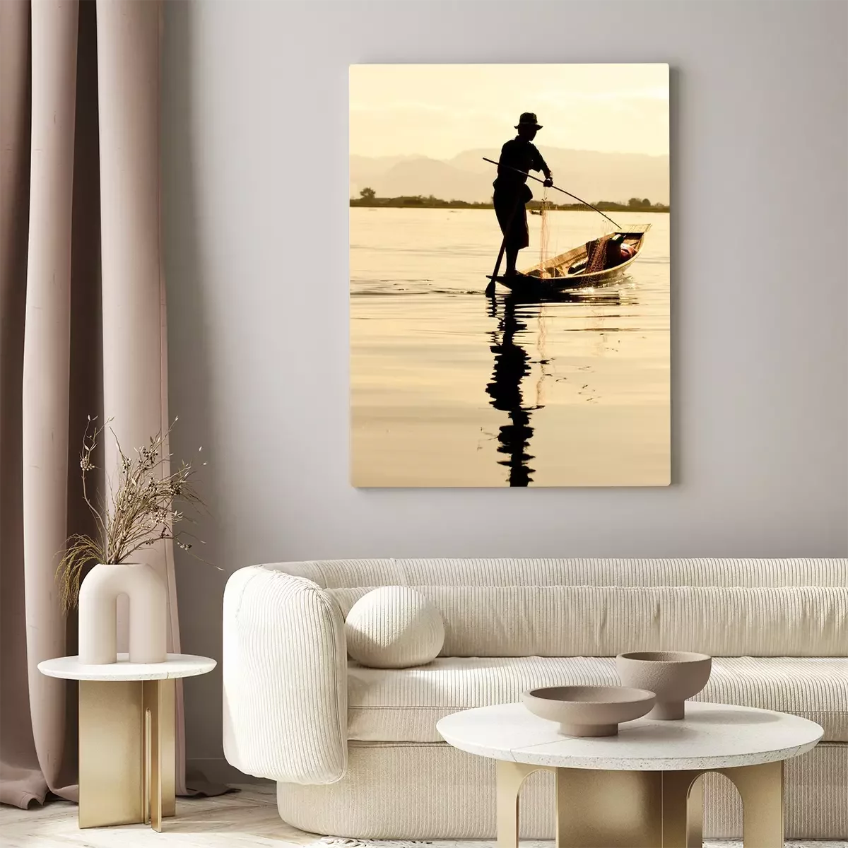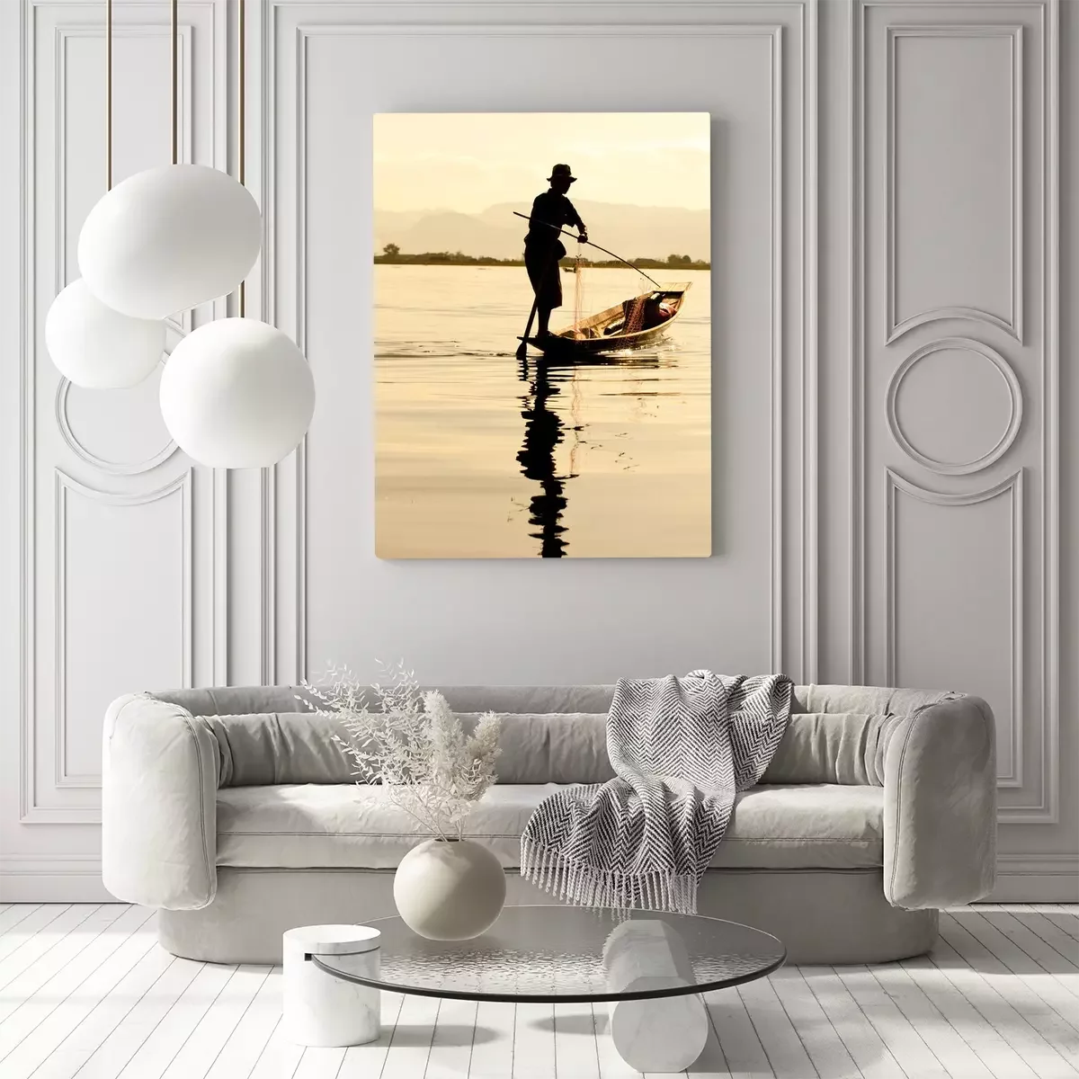 Tableau  Pêcheur dans le lac Inle, Myanmar.