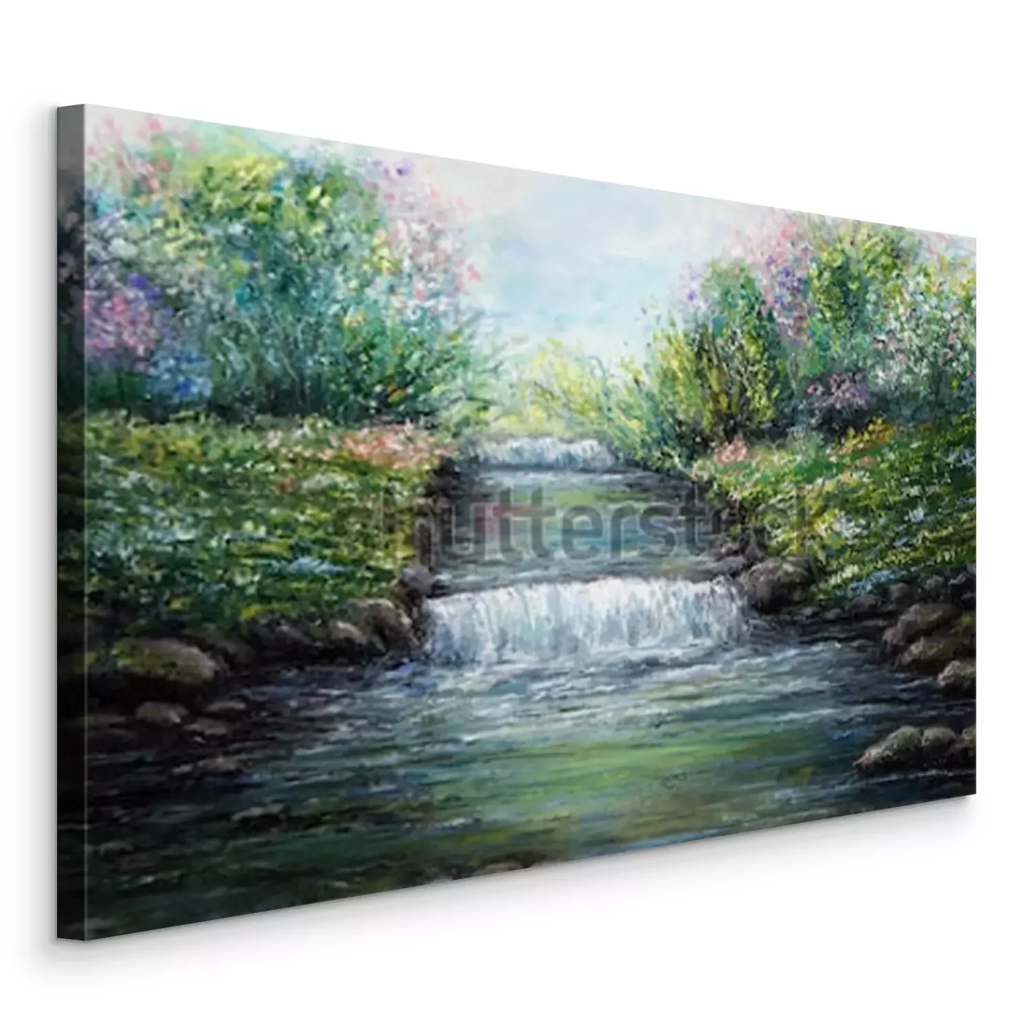Tableau  Peinture à l'huile originale montrant la rivière de printemps et les fleurs sur la toile. Impressionnisme moderne, modernisme, marinisme