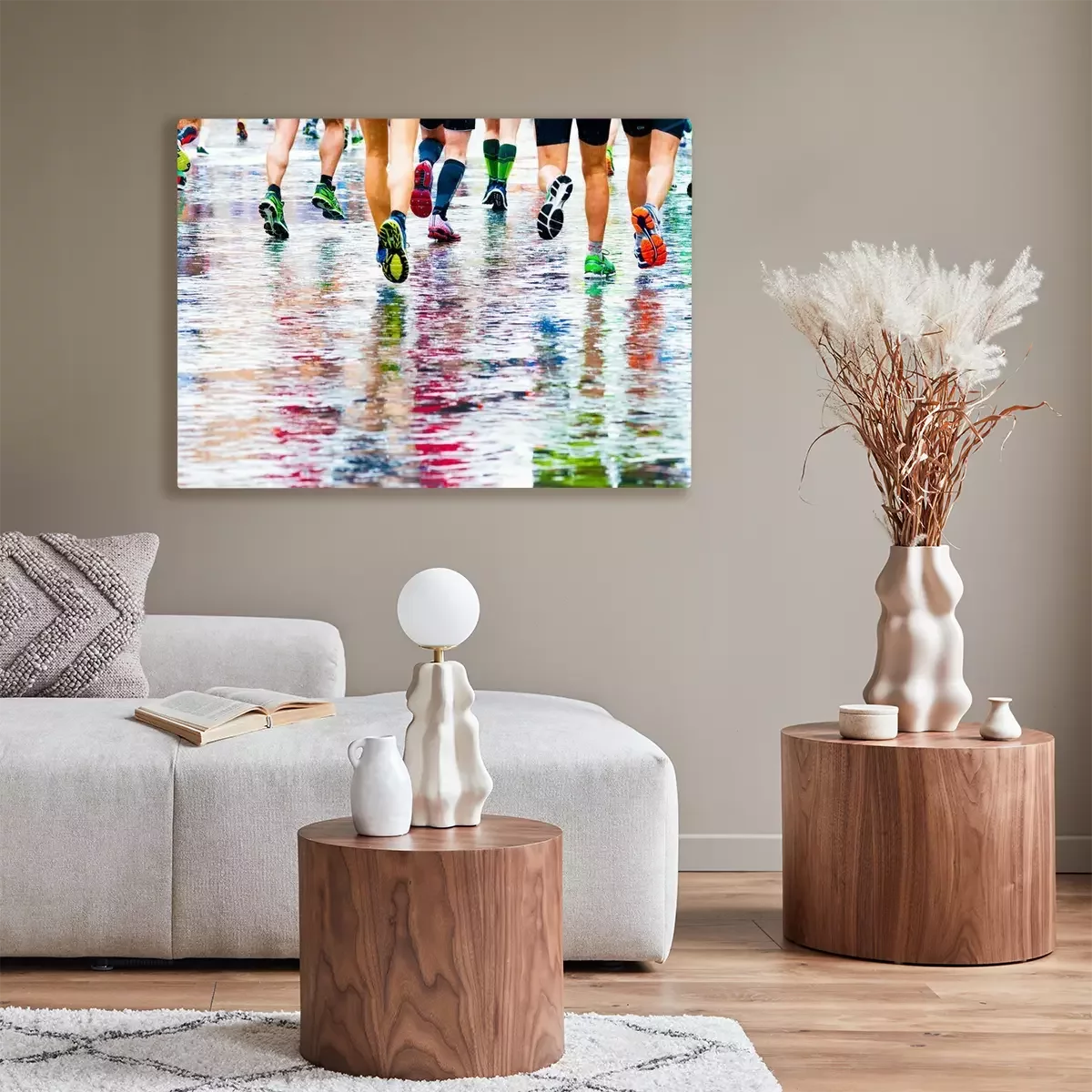 Tableau  People running in a marathon on a wetted surface