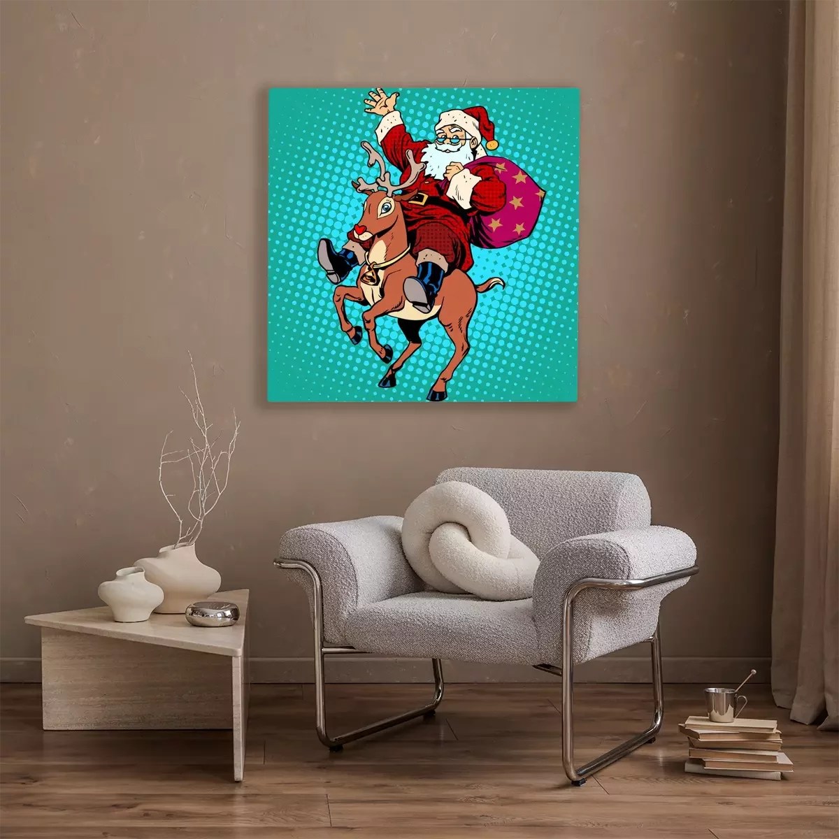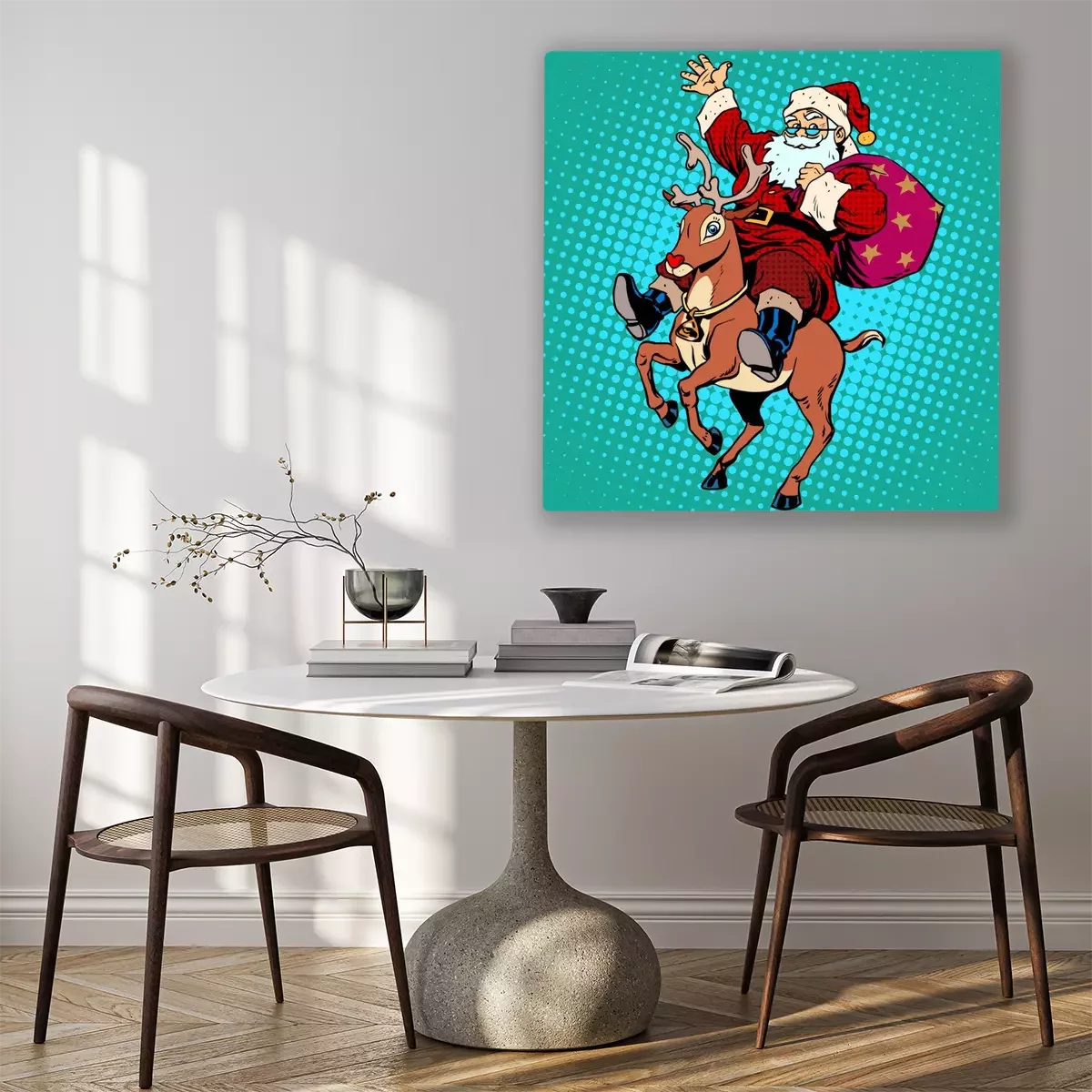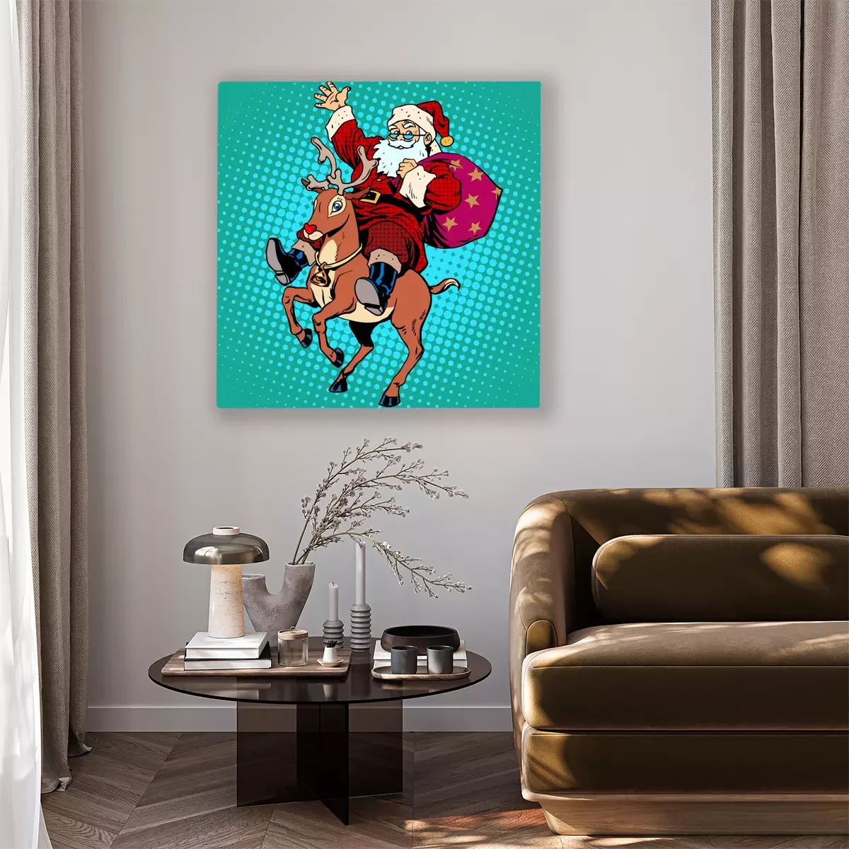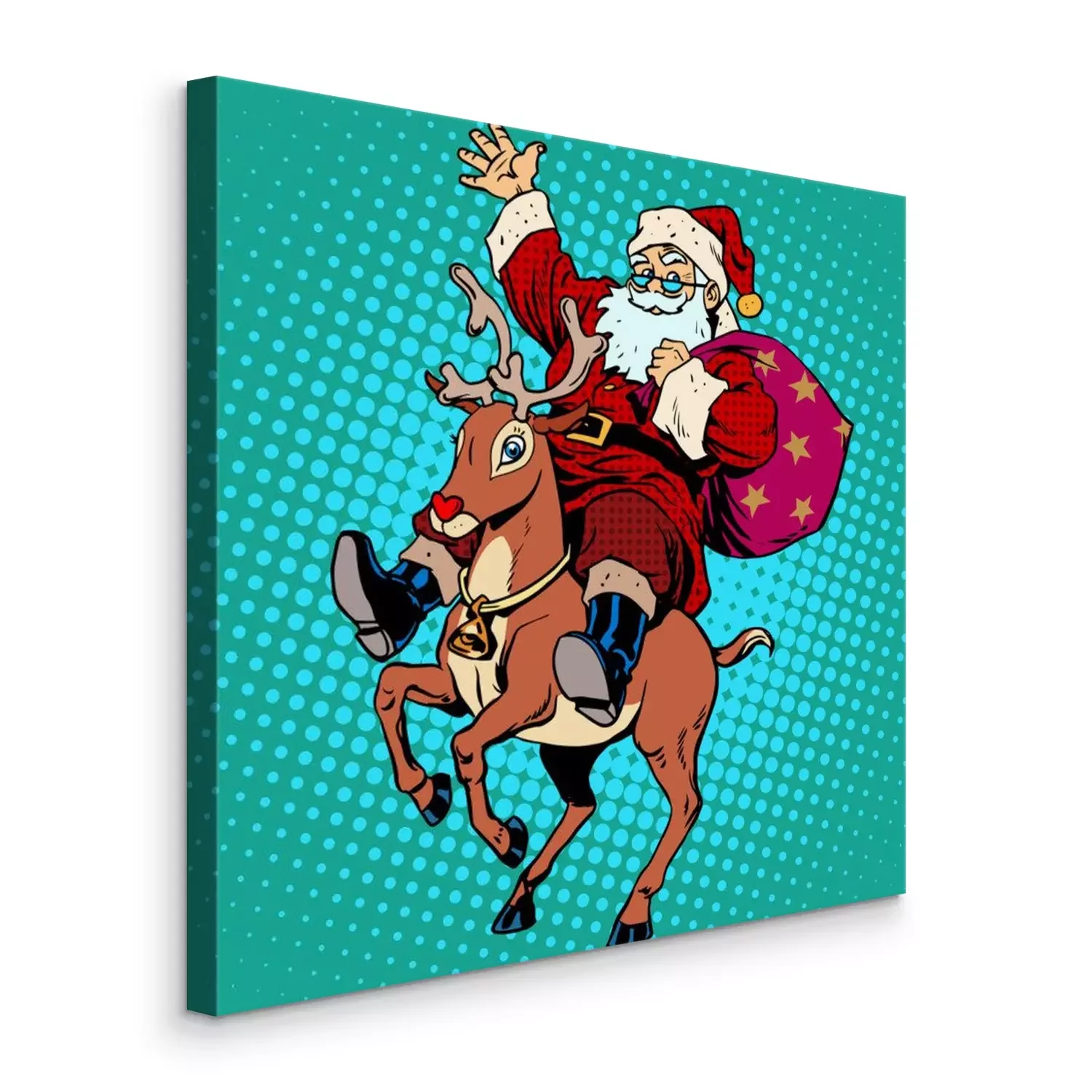 Tableau  Père Noël avec des cadeaux de Noël renne Rudolf